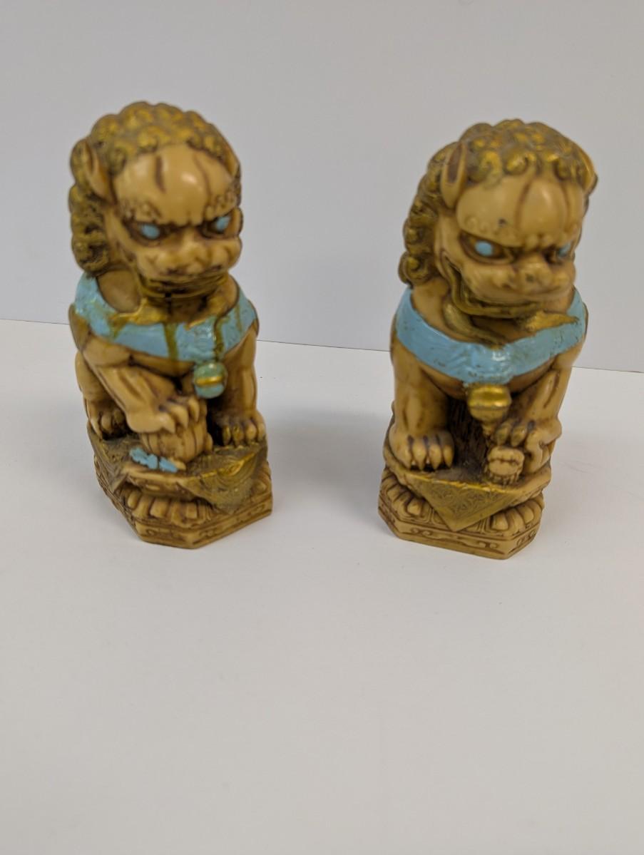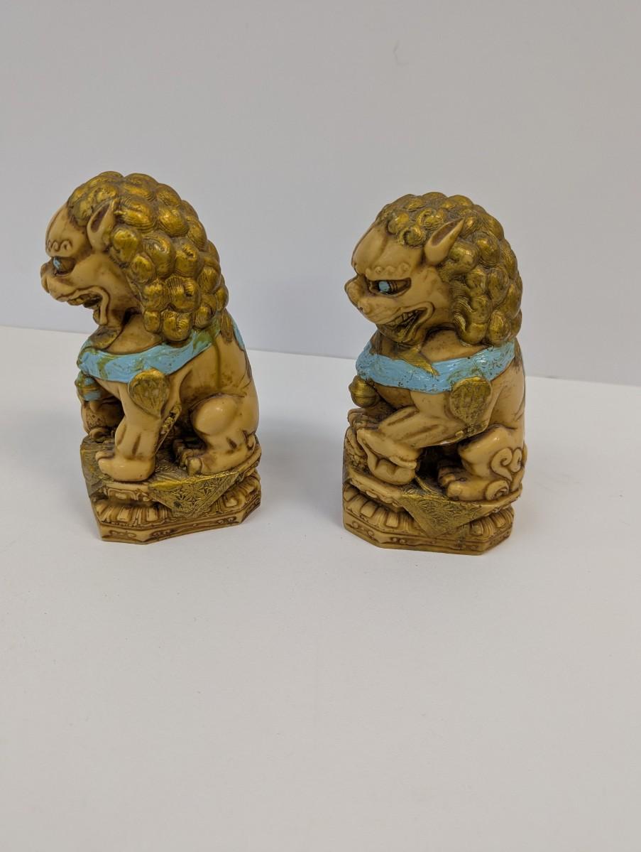 Vintage Chinese Foo Dog Statues Set Of 2 Resin Statues