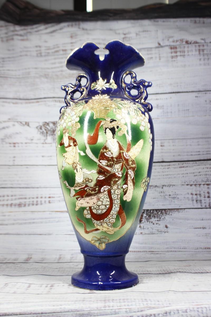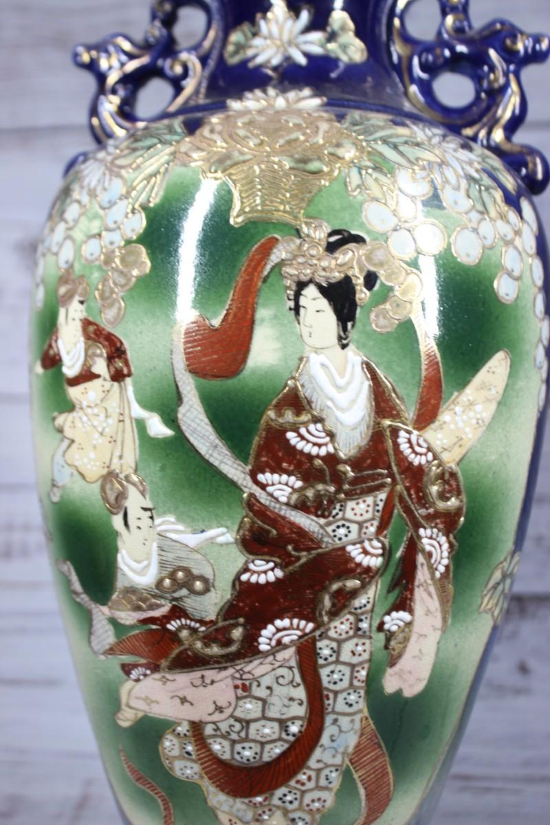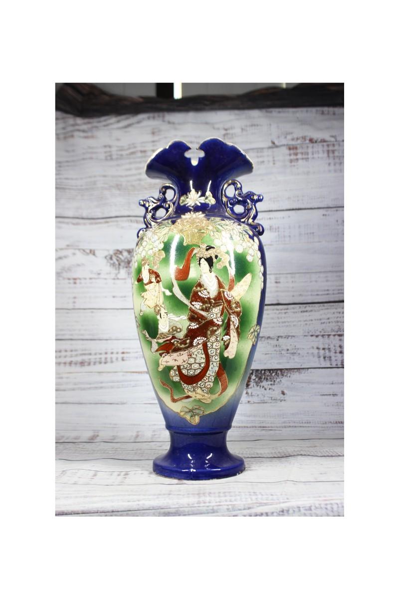 Vintage Chinese Floral Geisha Ceramic Porcelain Vase Urn