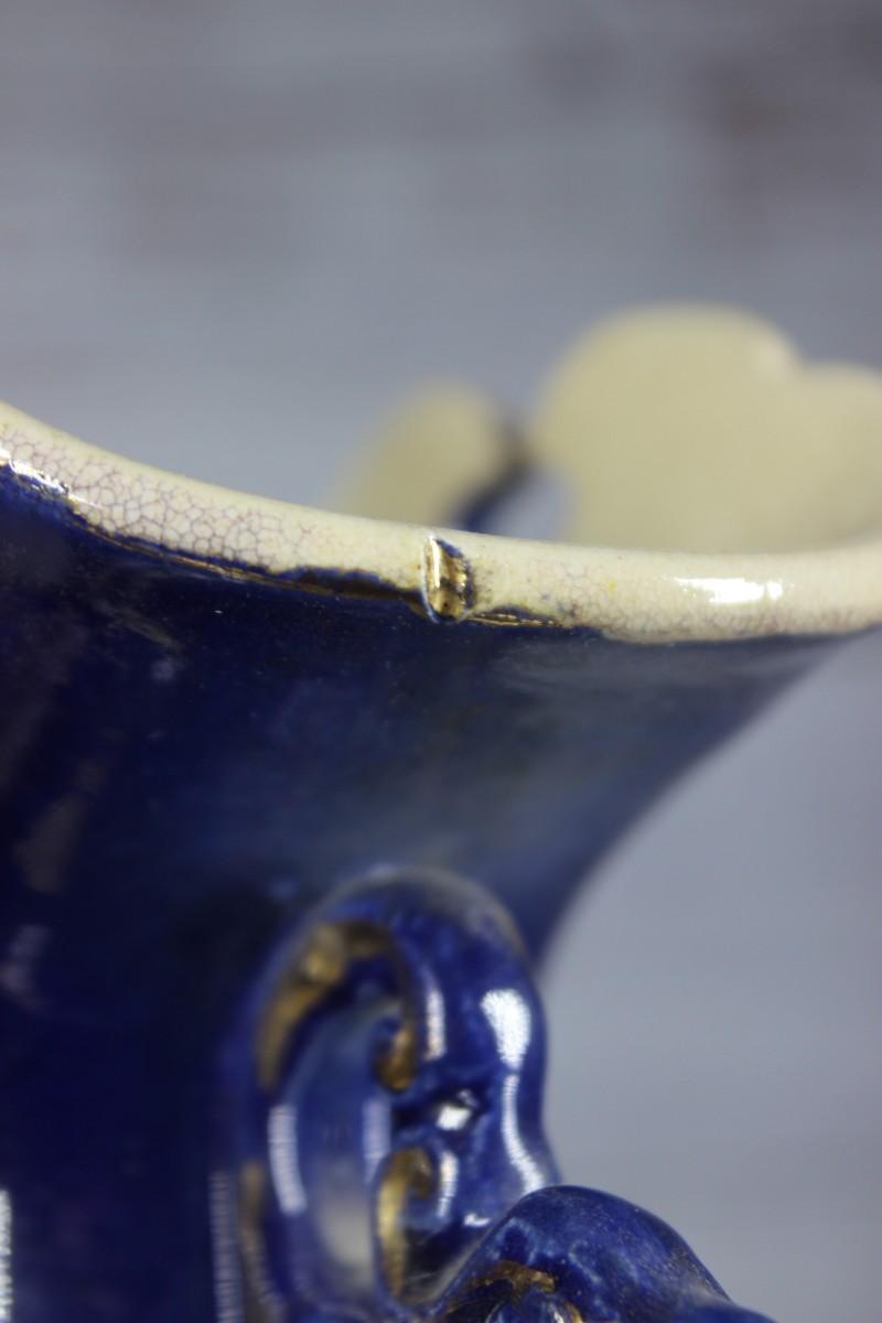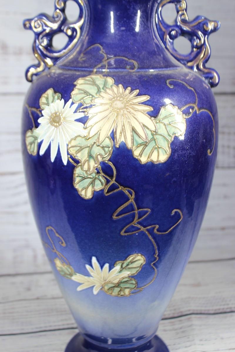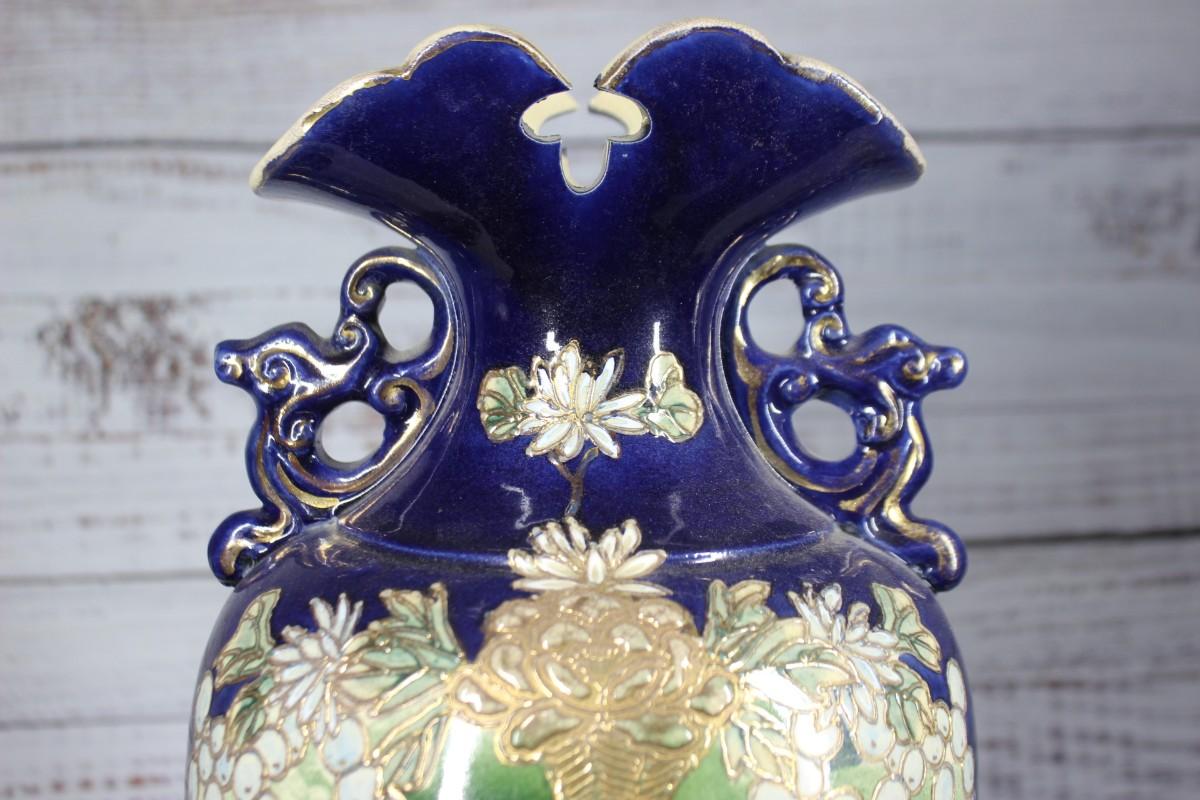 Vintage Chinese Ornate Ceramic Porcelain Vase Urn, there is no significant damage to the vase, but there is some chipping at the base of the vase as well as a small chip on the lip. Check pictures for more details, the maker's mark is located at the bottom of the vase.