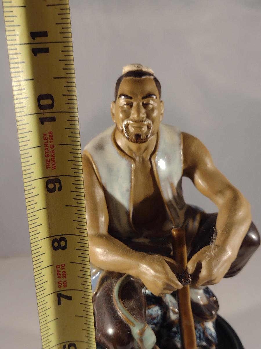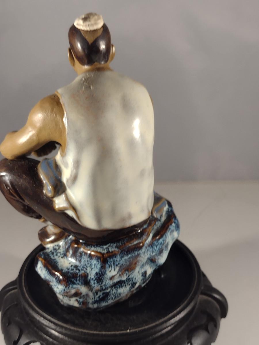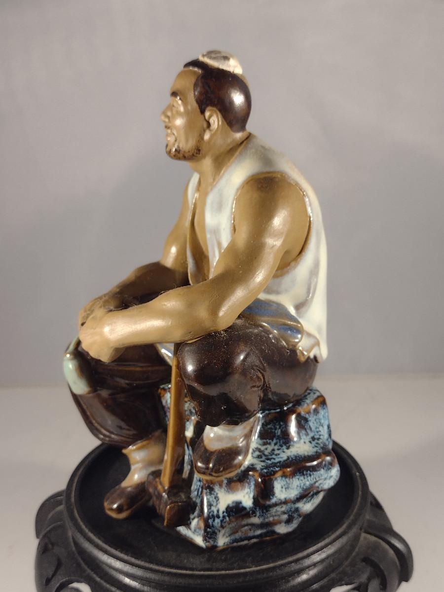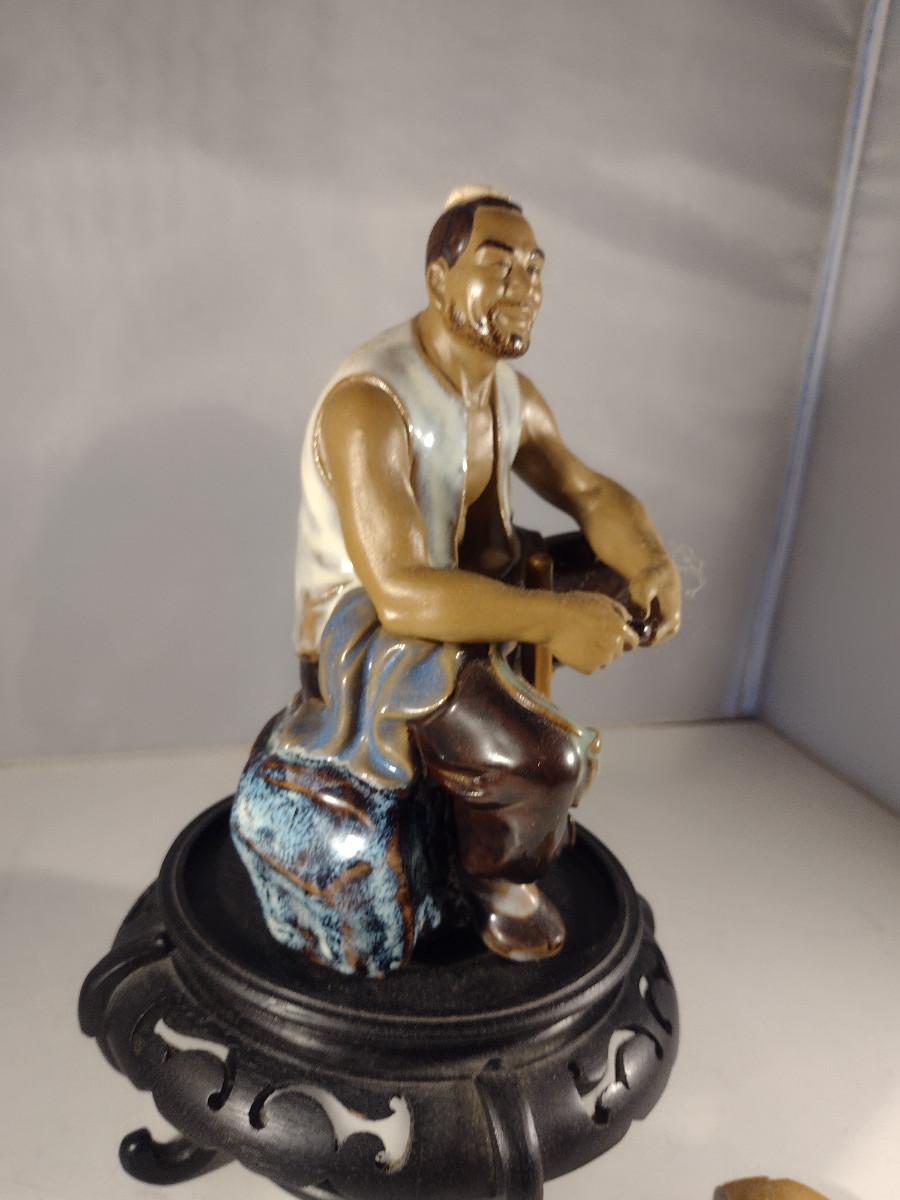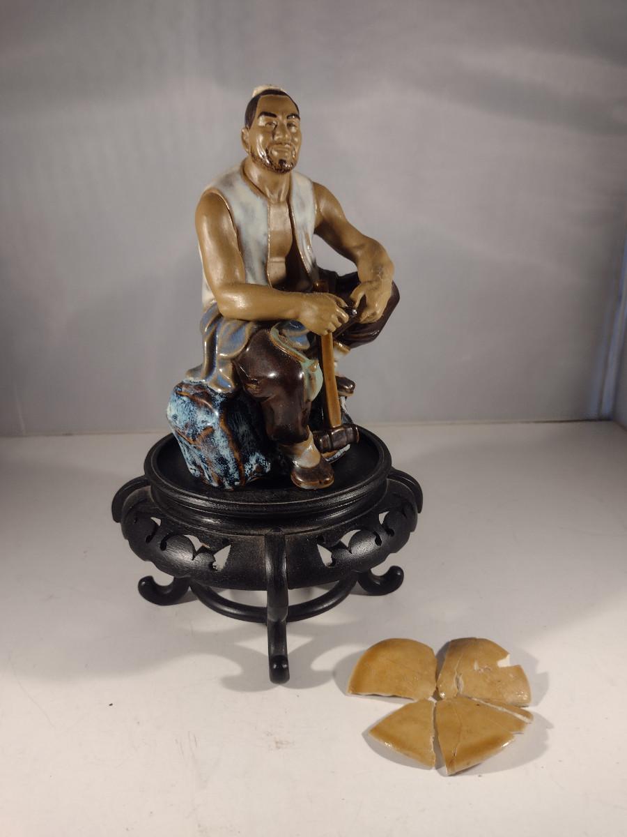 Vintage Chinese Glazed Pottery Figurine with Stand- (#20). Please see all pictures for condition- hat is broken.