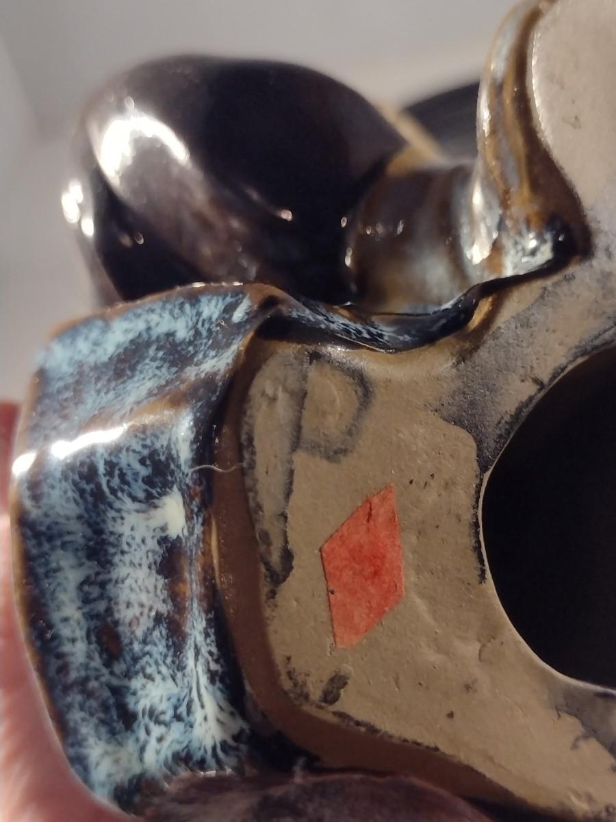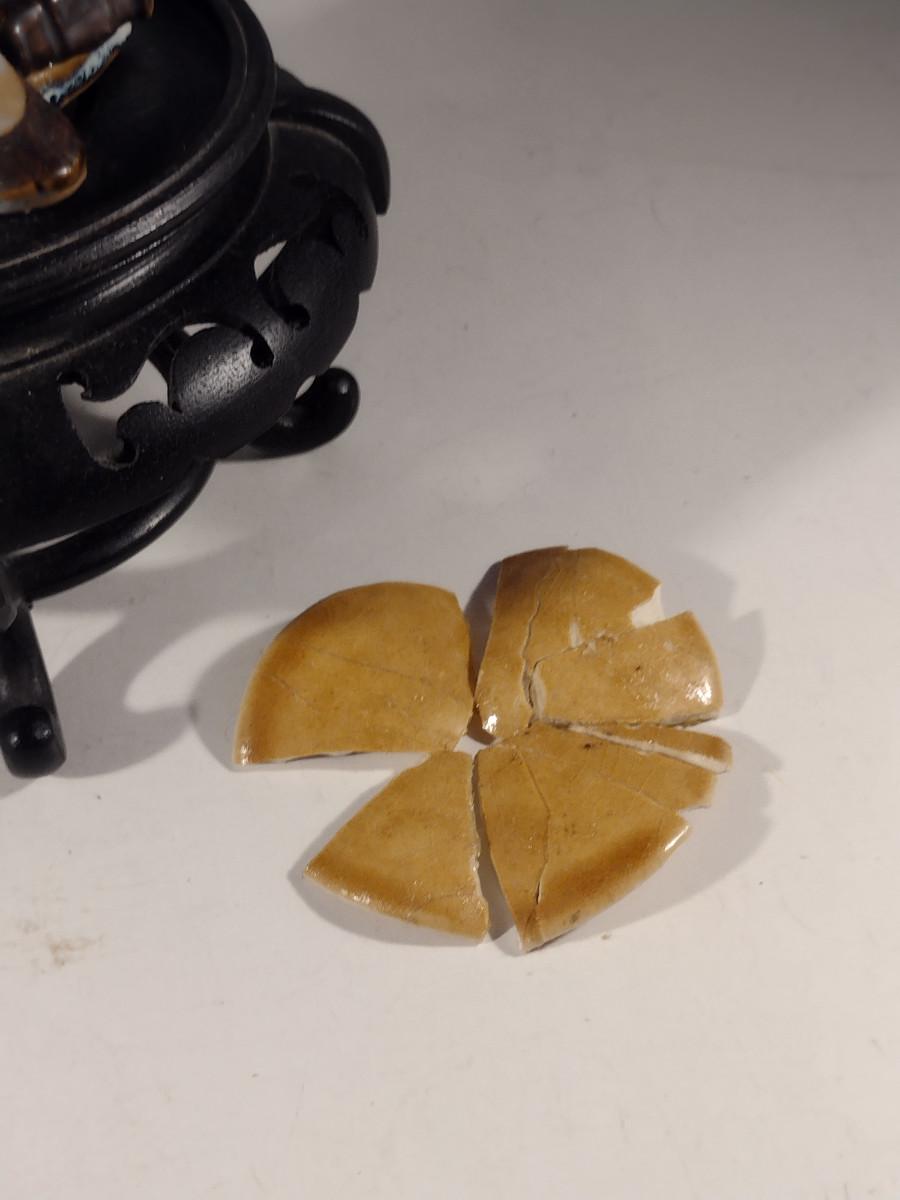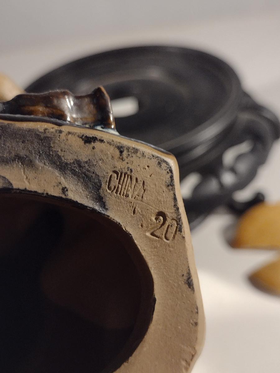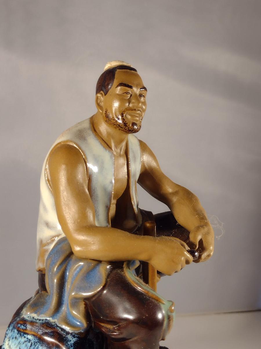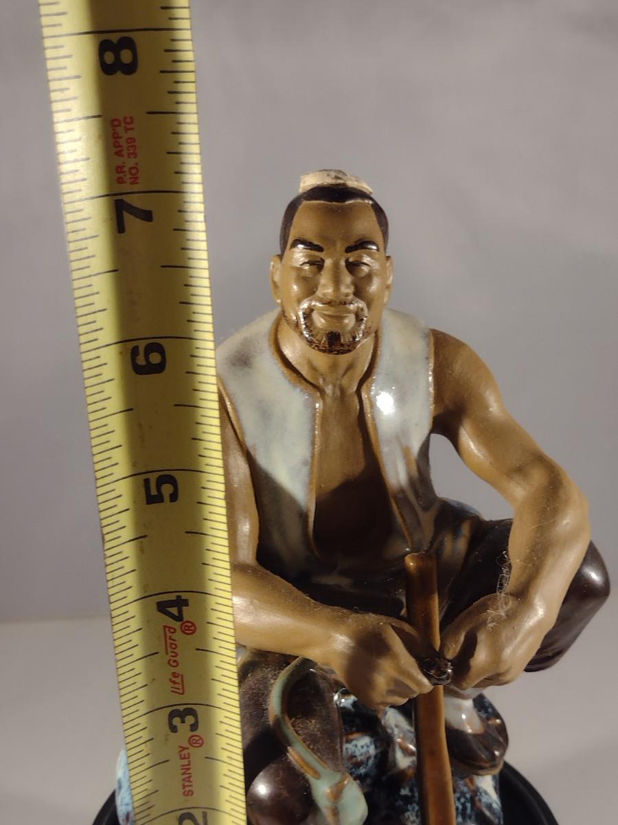 Vintage Chinese Glazed Pottery Figurine with Stand- (#20). Please see all pictures for condition- hat is broken.
