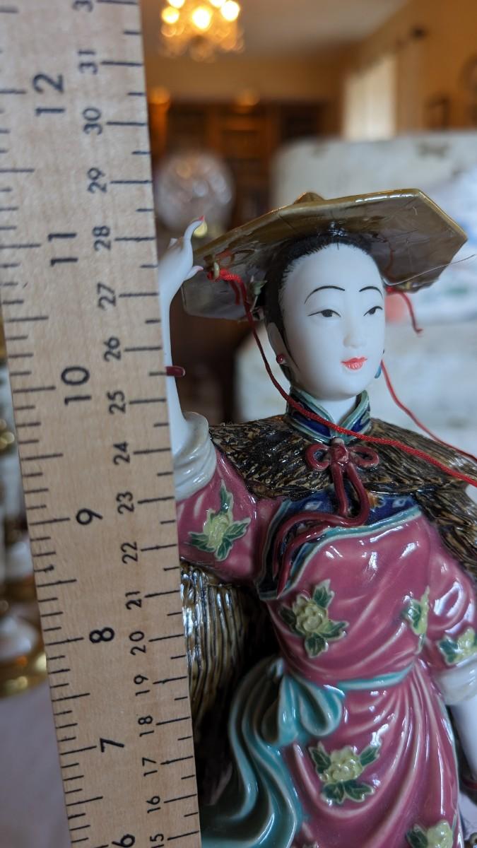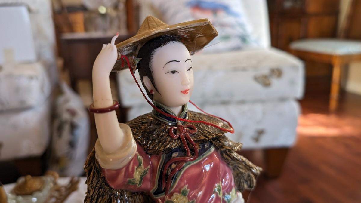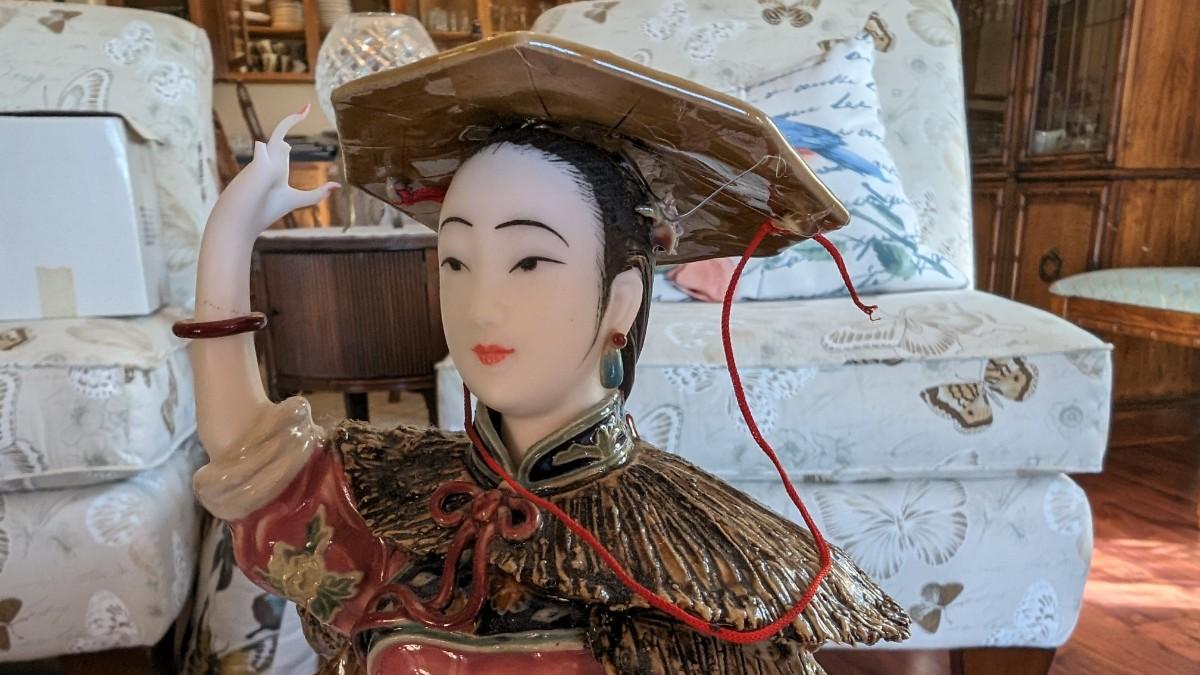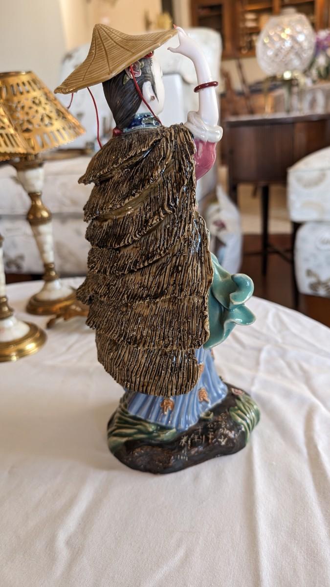Vintage Chinese Lady Figurine in Wind Broken Fingers Hat