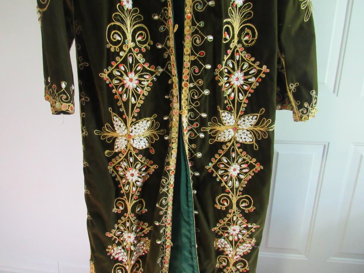 Lot 79:  Vintage Chinese Long Velvet Over Jacket/Coat, Heavily Beaded, Lined, Brocade Trim