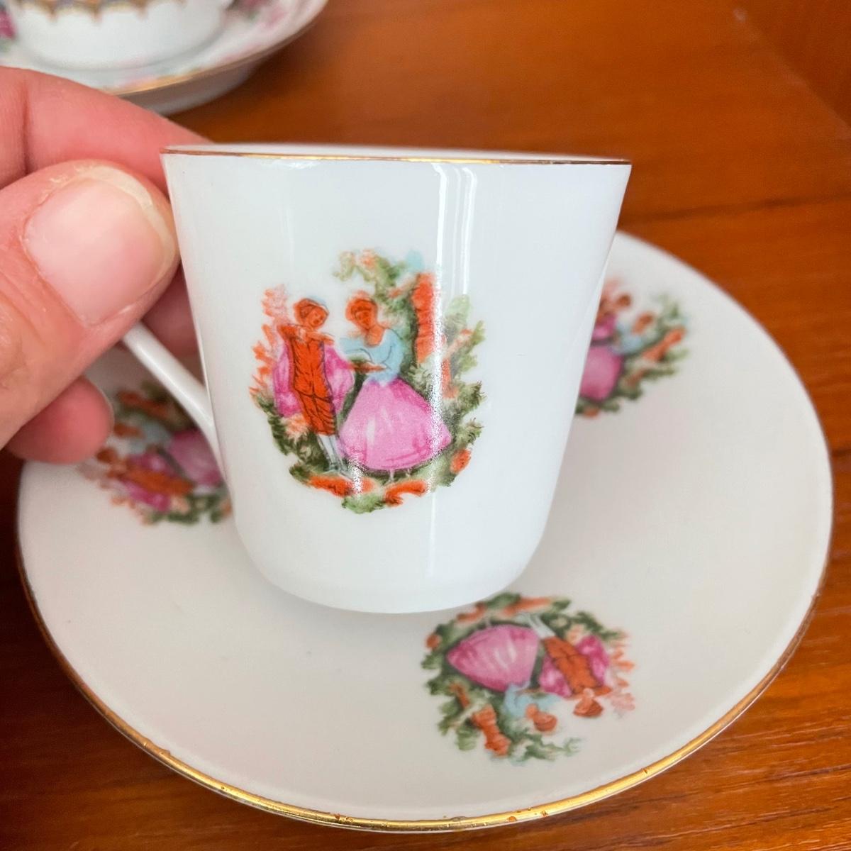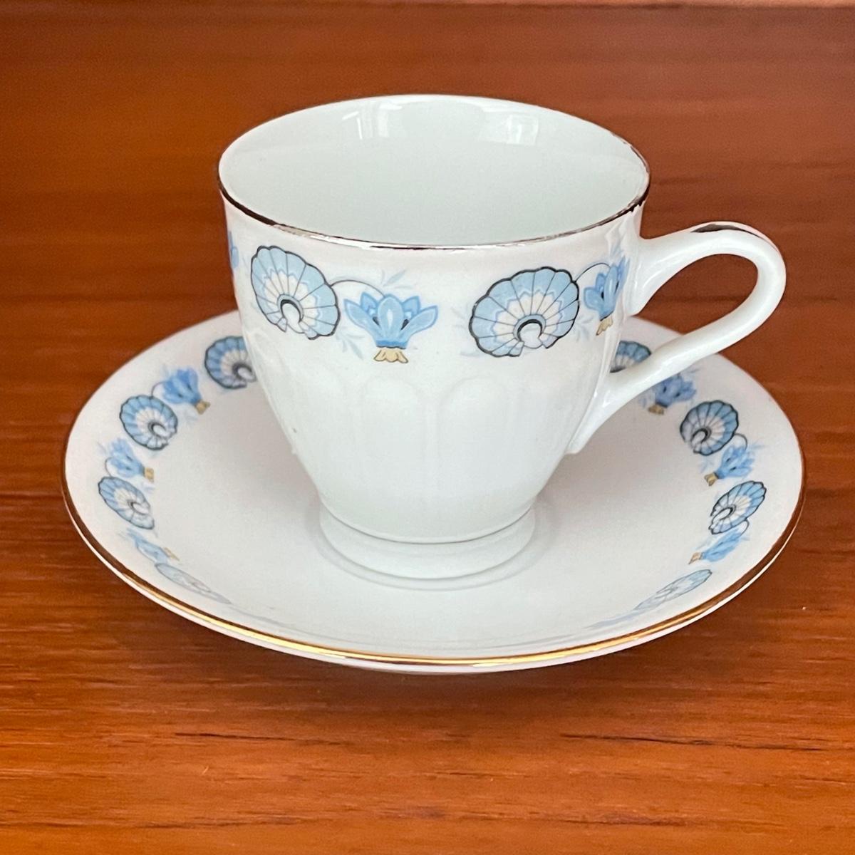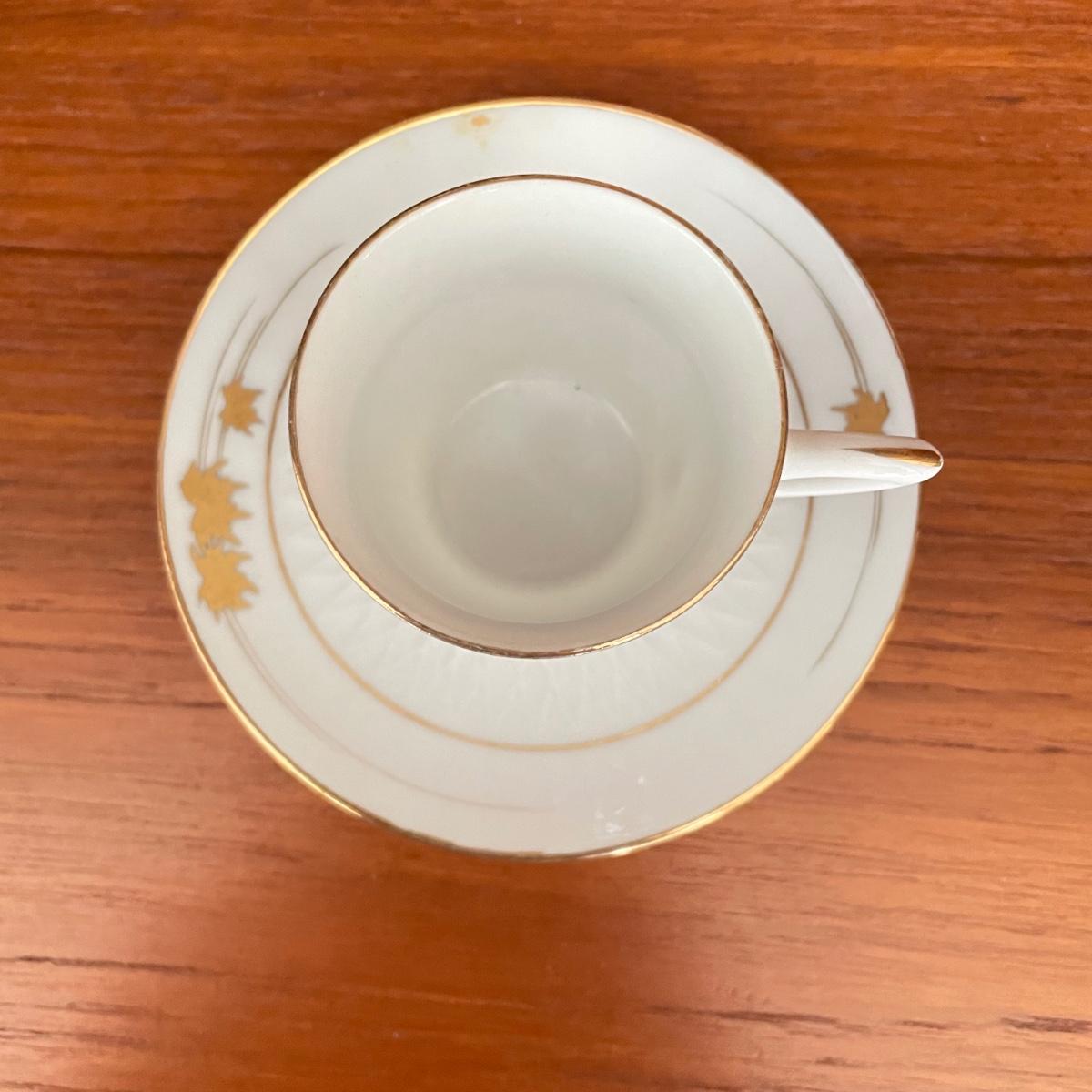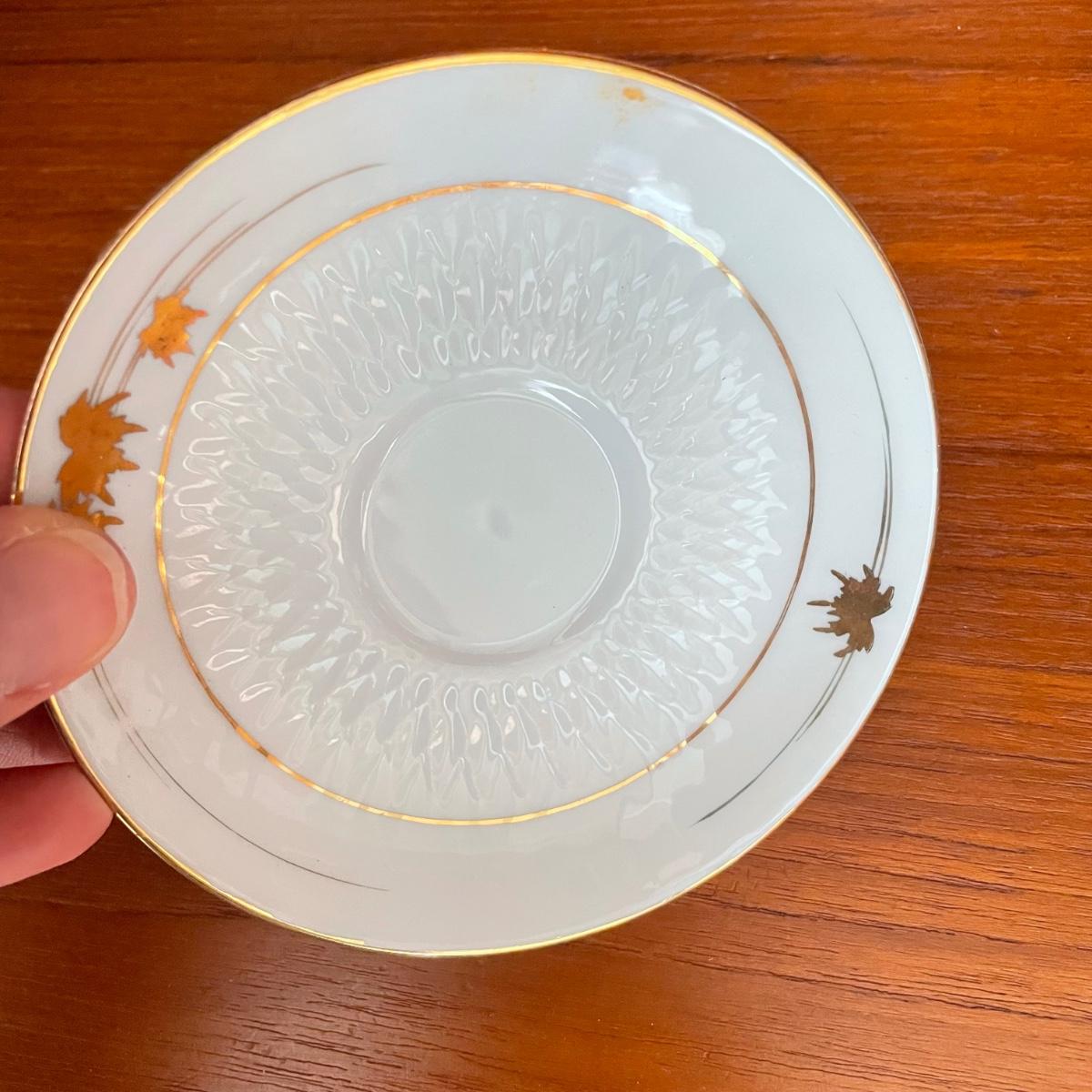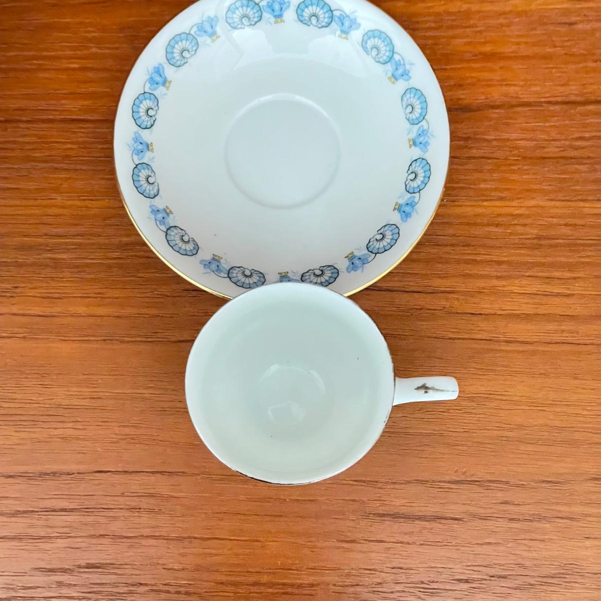 Four delicate vintage Chinese teacups and saucers. All have gold colored accents, except the blue seashell cup appears to have more of a silver tone than its saucer and the rest of the sets. Three of the four cups measure just over 2” tall. See images. Shipping available.