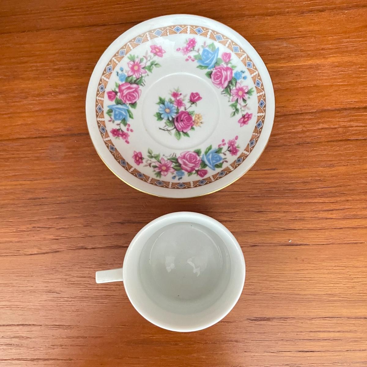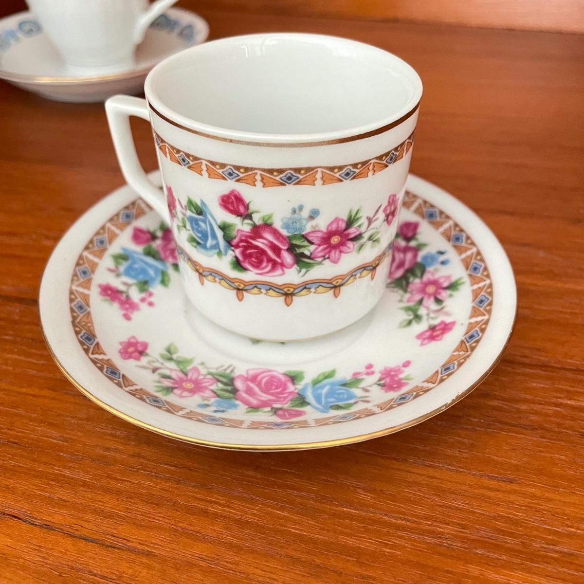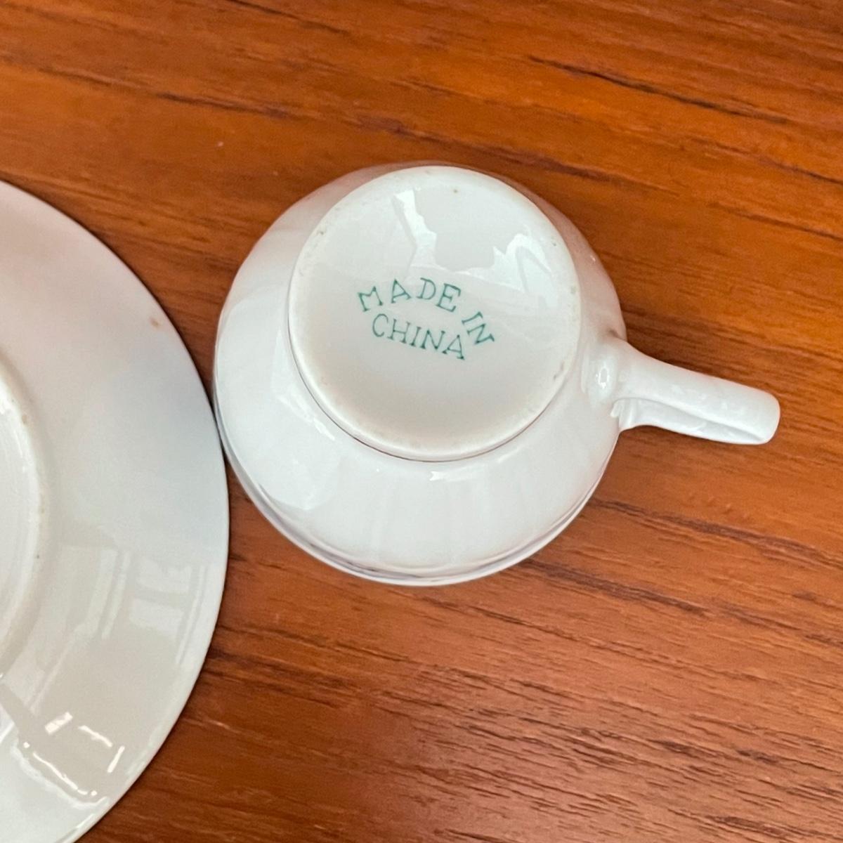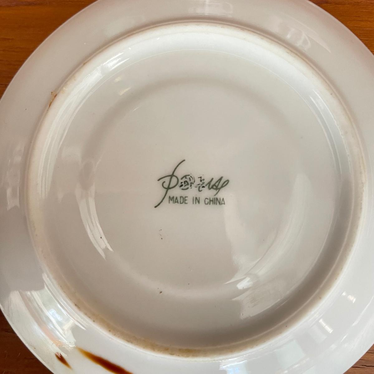 Four delicate vintage Chinese teacups and saucers. All have gold colored accents, except the blue seashell cup appears to have more of a silver tone than its saucer and the rest of the sets. Three of the four cups measure just over 2” tall. See images. Shipping available.