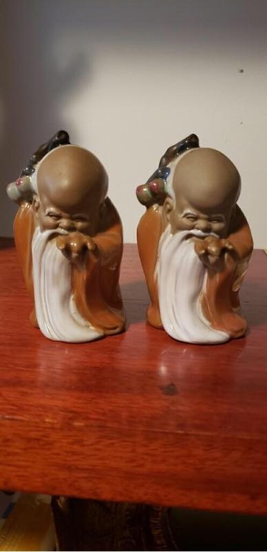 Nine Mud men figurines being sold as one collection. Note: The two bull riders in the last picture were just added! They look to be from the mid 20th century. Measurements shown in pictures. No cracks or repairs that I can see. Please review pictures. We offer packaging and shipping services!