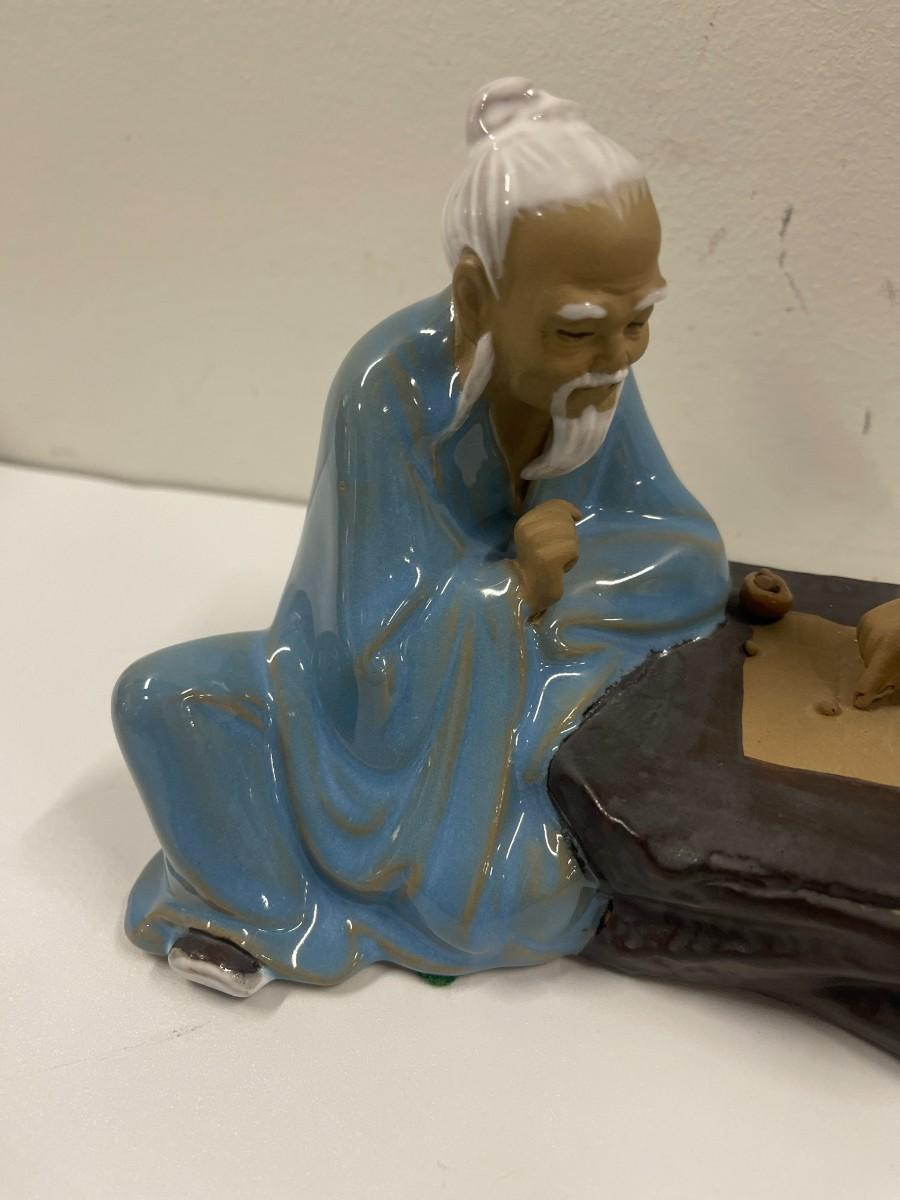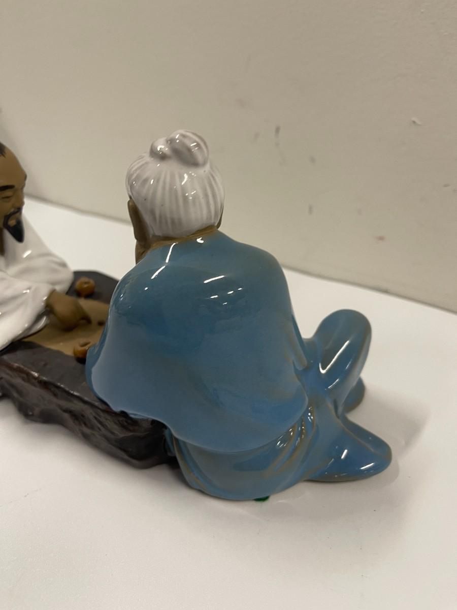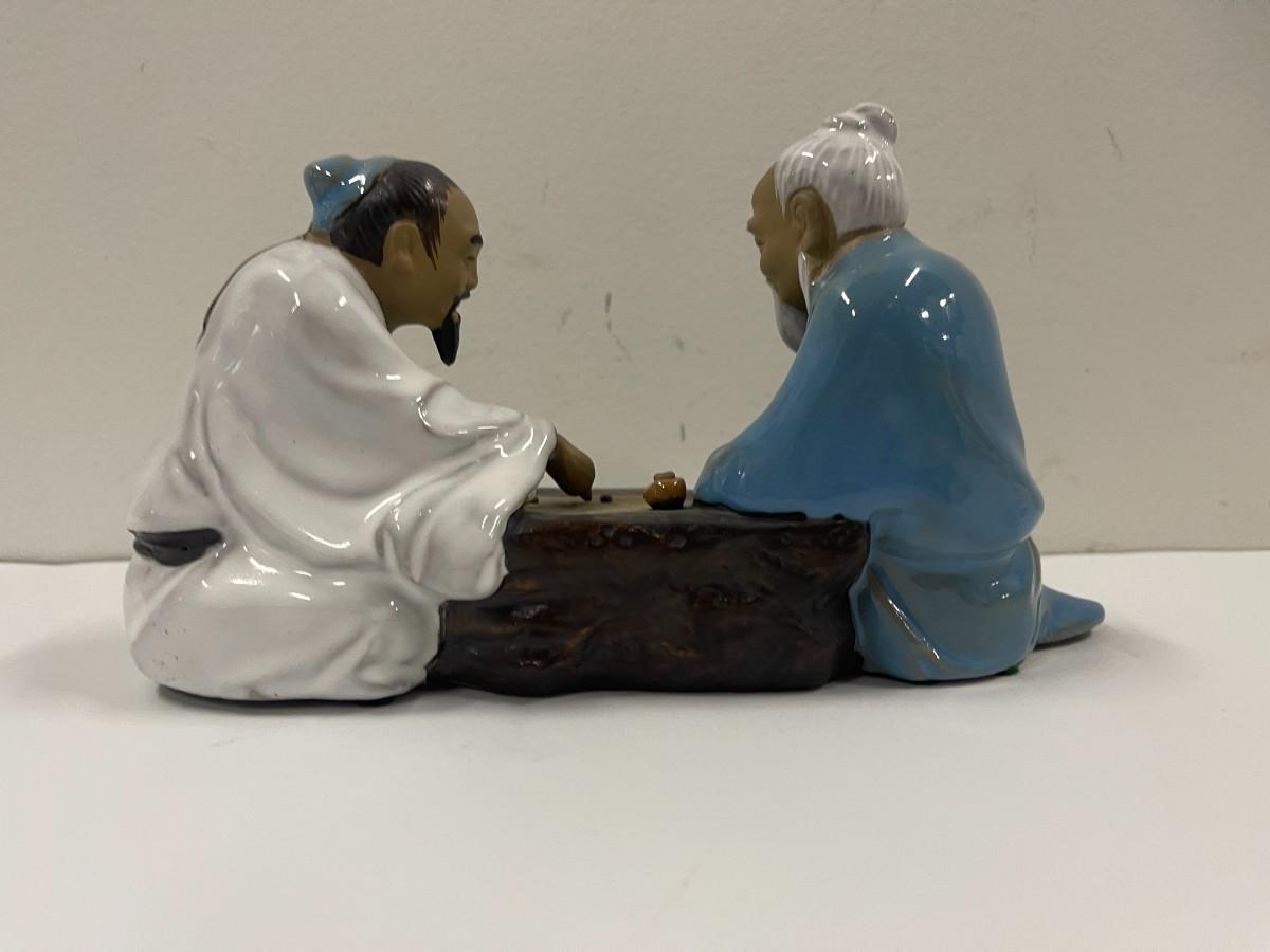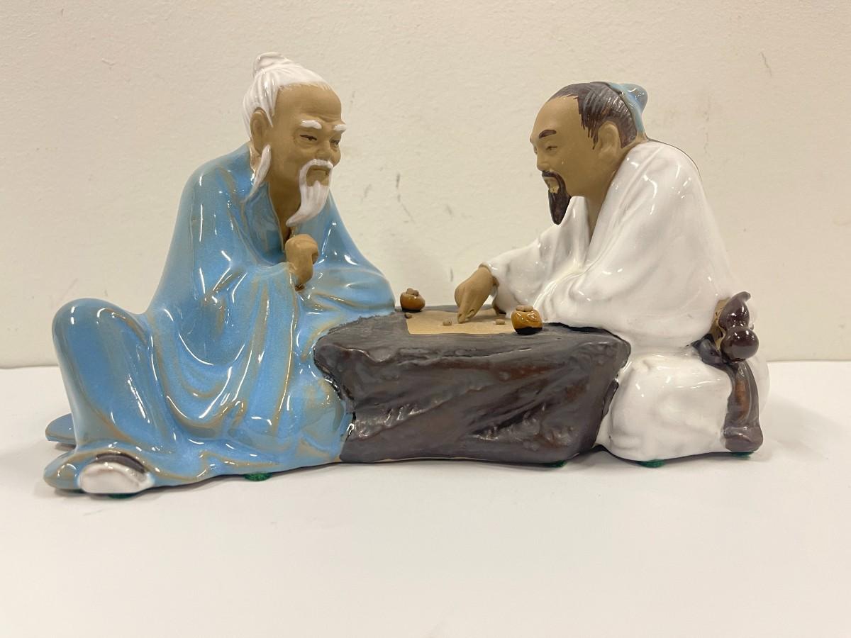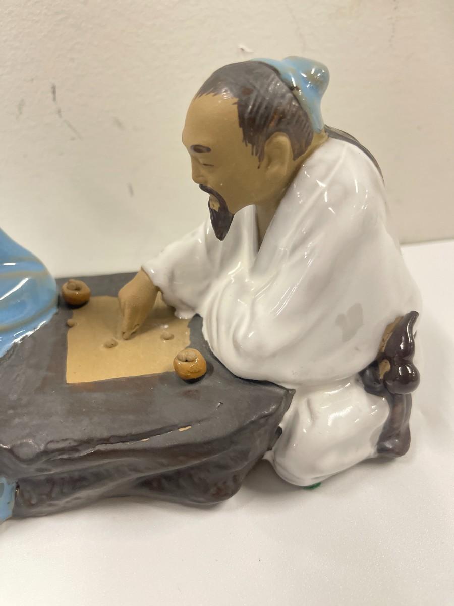 Vintage Chinese Mudman Figurine, 2 Men Playing a Game