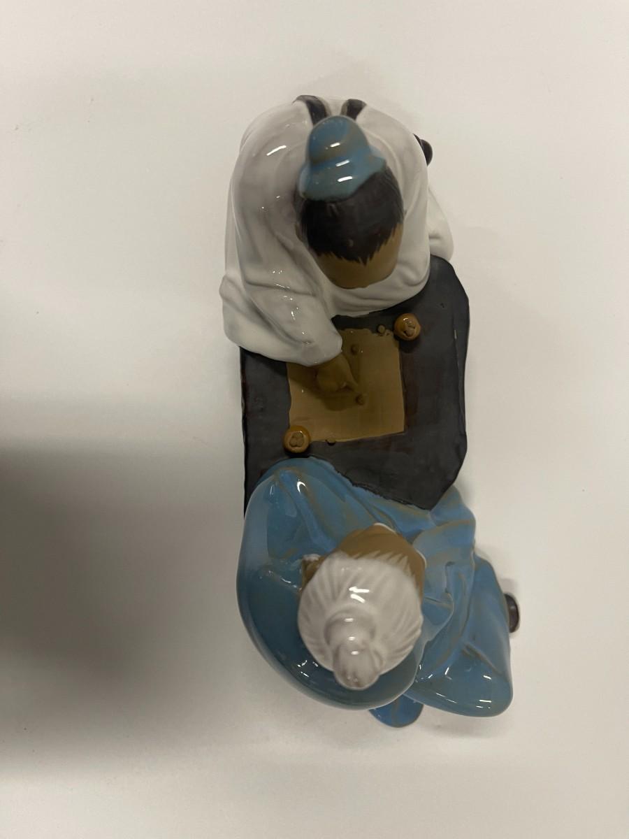 Vintage Chinese Mudman figurine of two men playing a game. Excellent condition. 9"