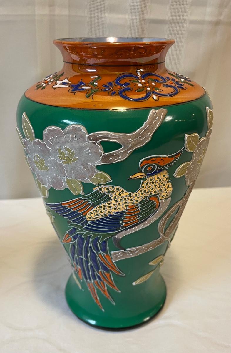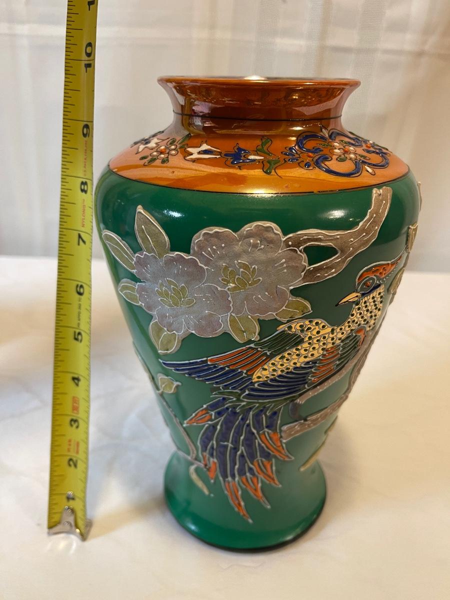 Vintage Chinese pheasant vase stands 10 inches tall
