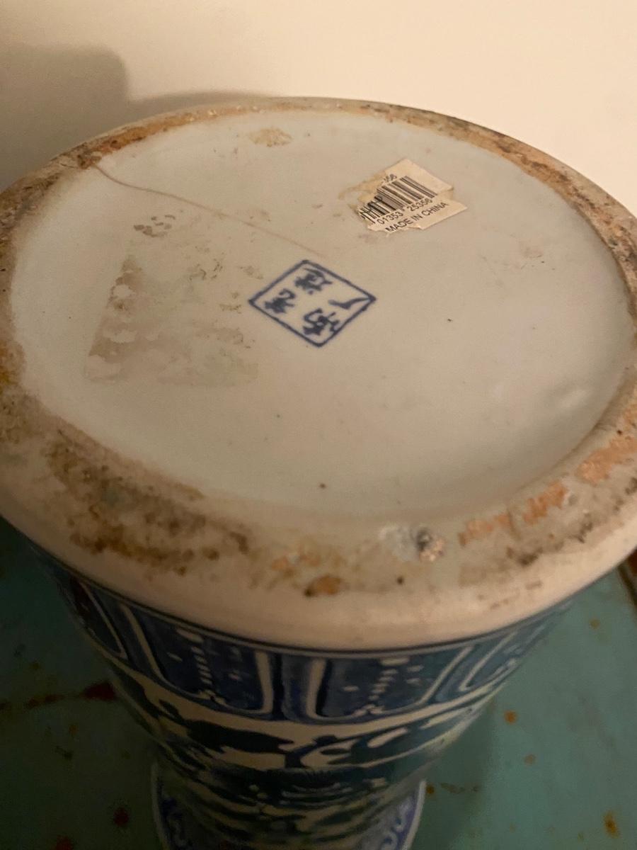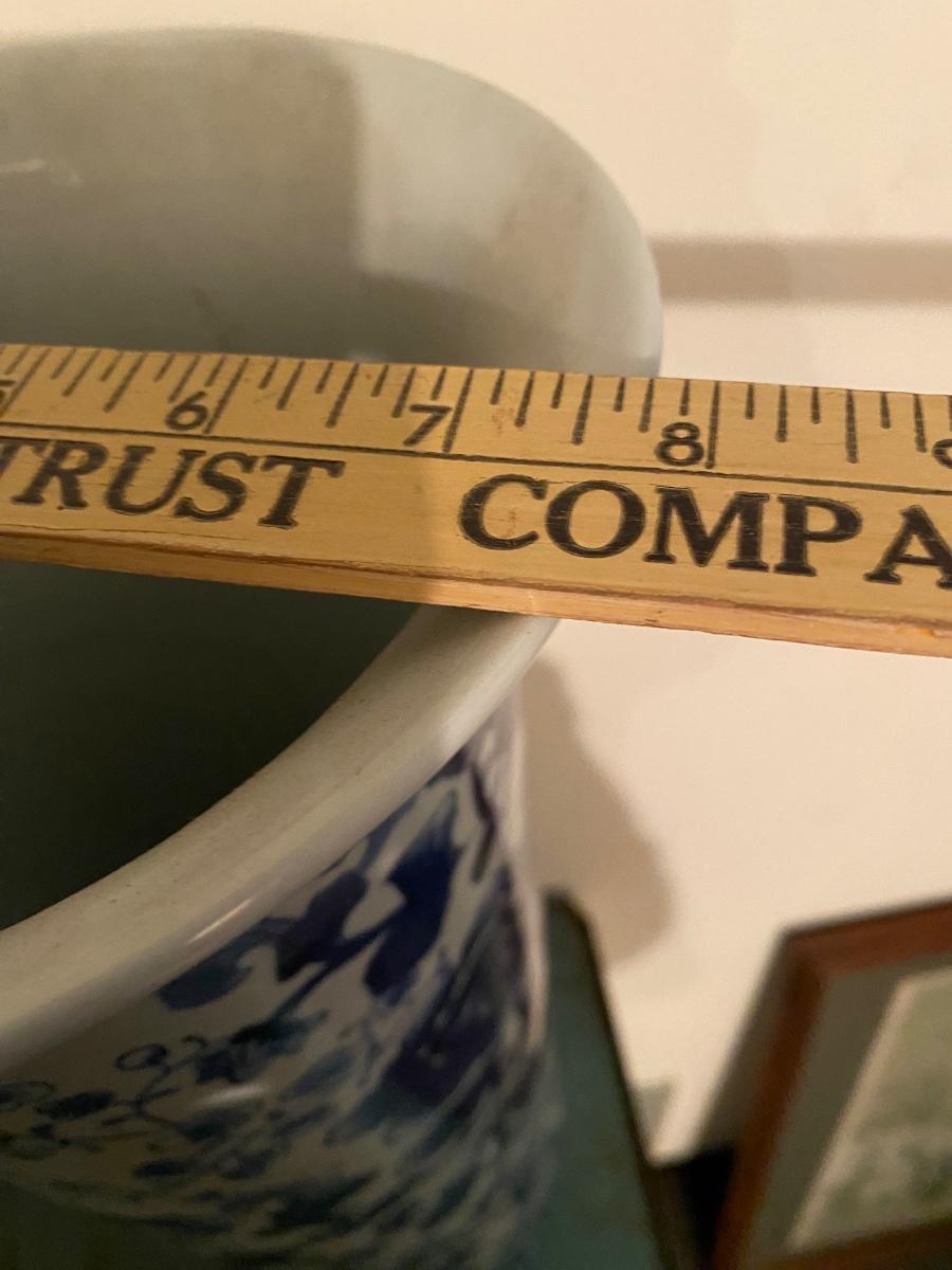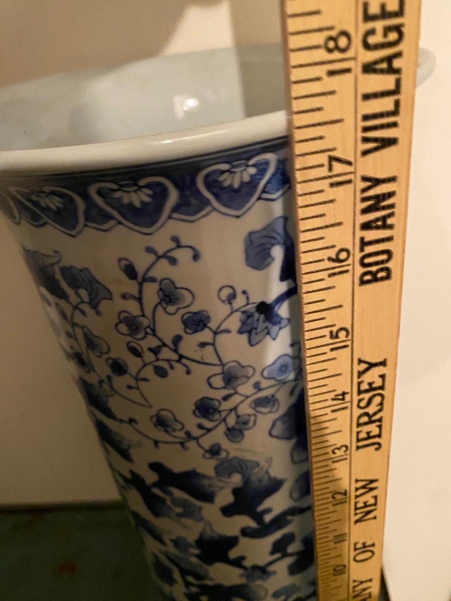 Vintage Chinese Porcelain Blue And White Floral Beaker Vase, 17" high, 8 " diameter.
