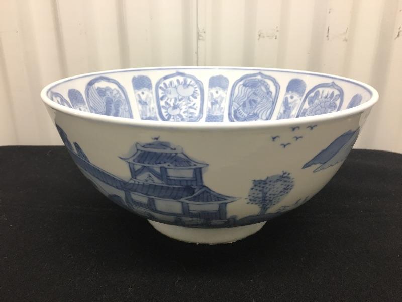 Beautiful blue and white porcelain bowl. Excellent condition. Measures 10” across and 5” high Packaging and shipping services available. Please contact us for a quote before bidding.