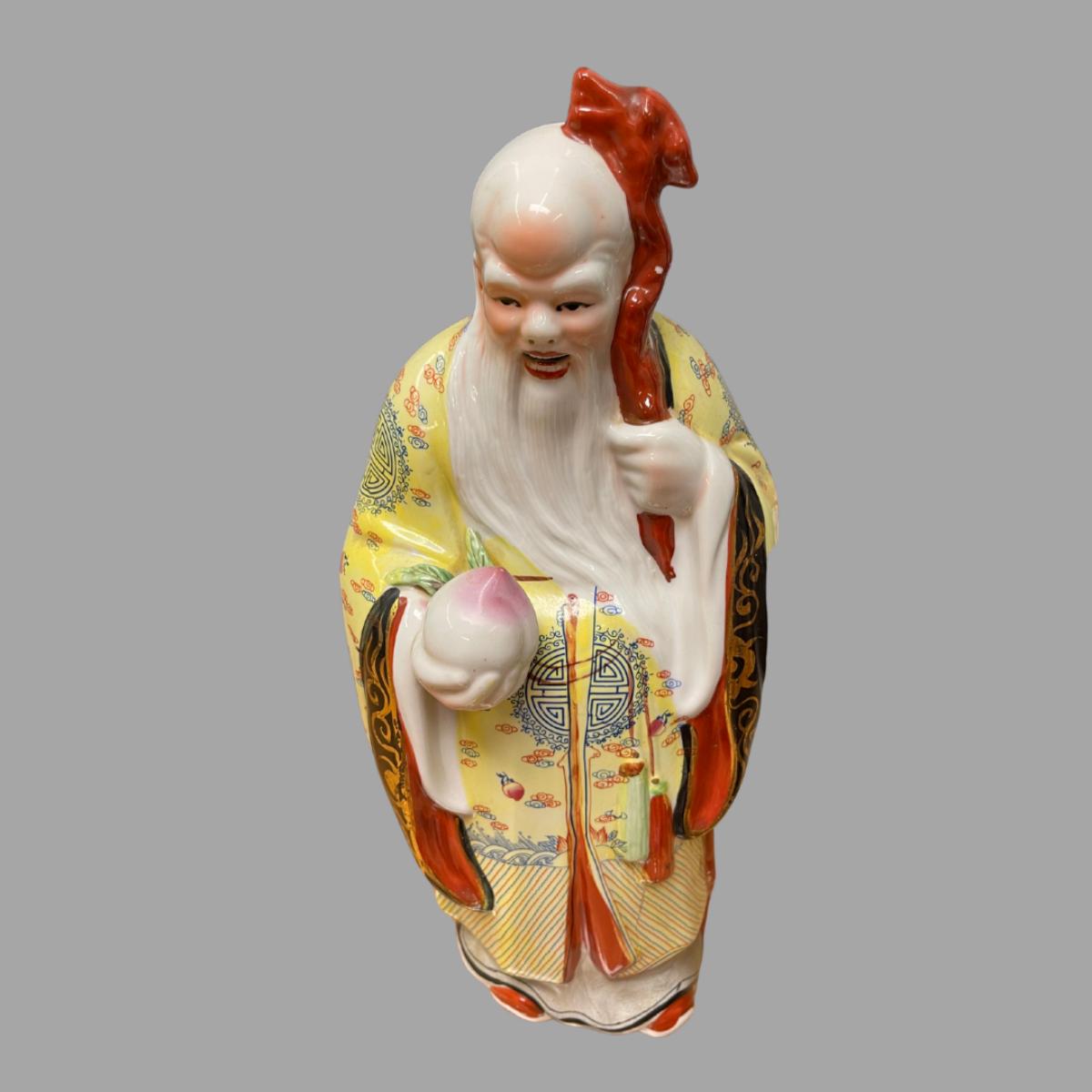 This statue is of Shou Lao Immortal with Staff. Measures 14"