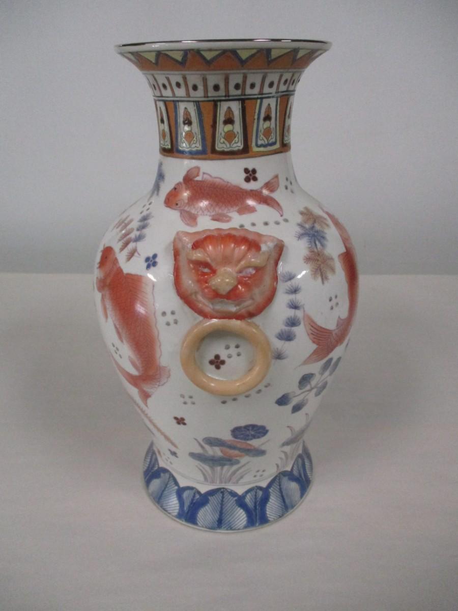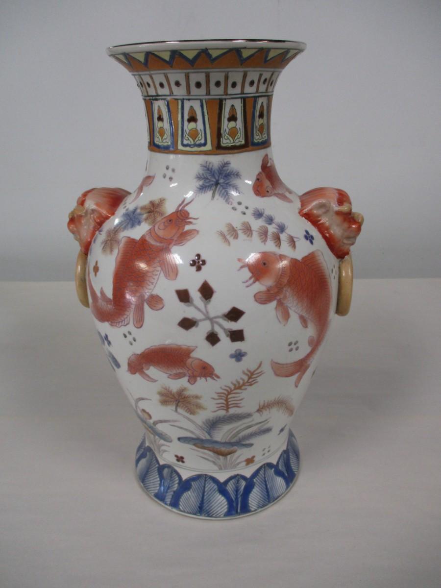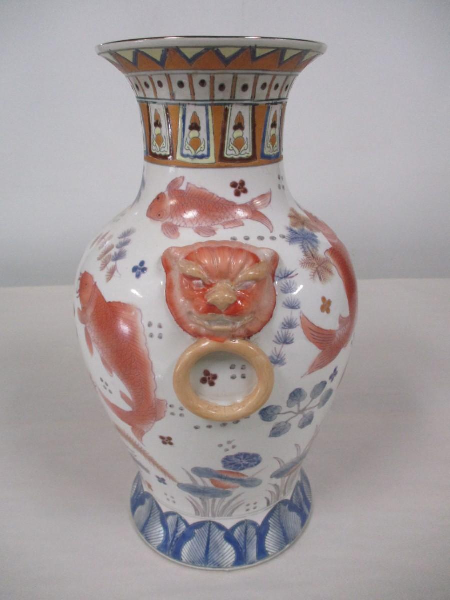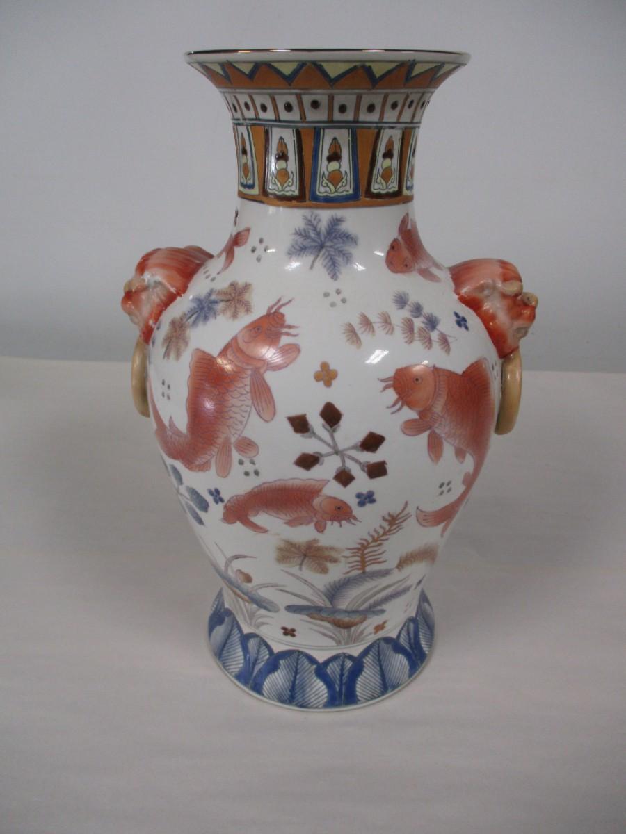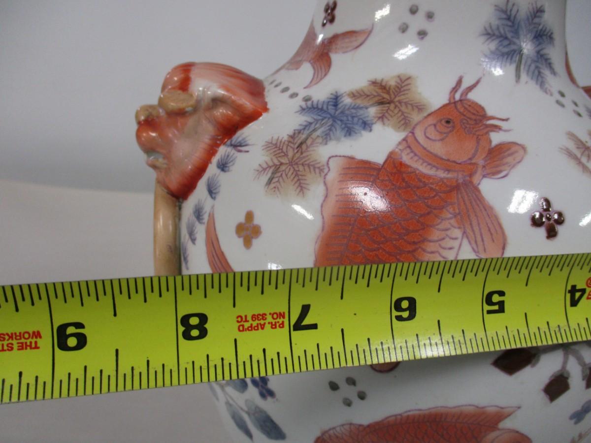 Vintage Chinese Porcelain Koi Fish Vase By H. F. P. Macau