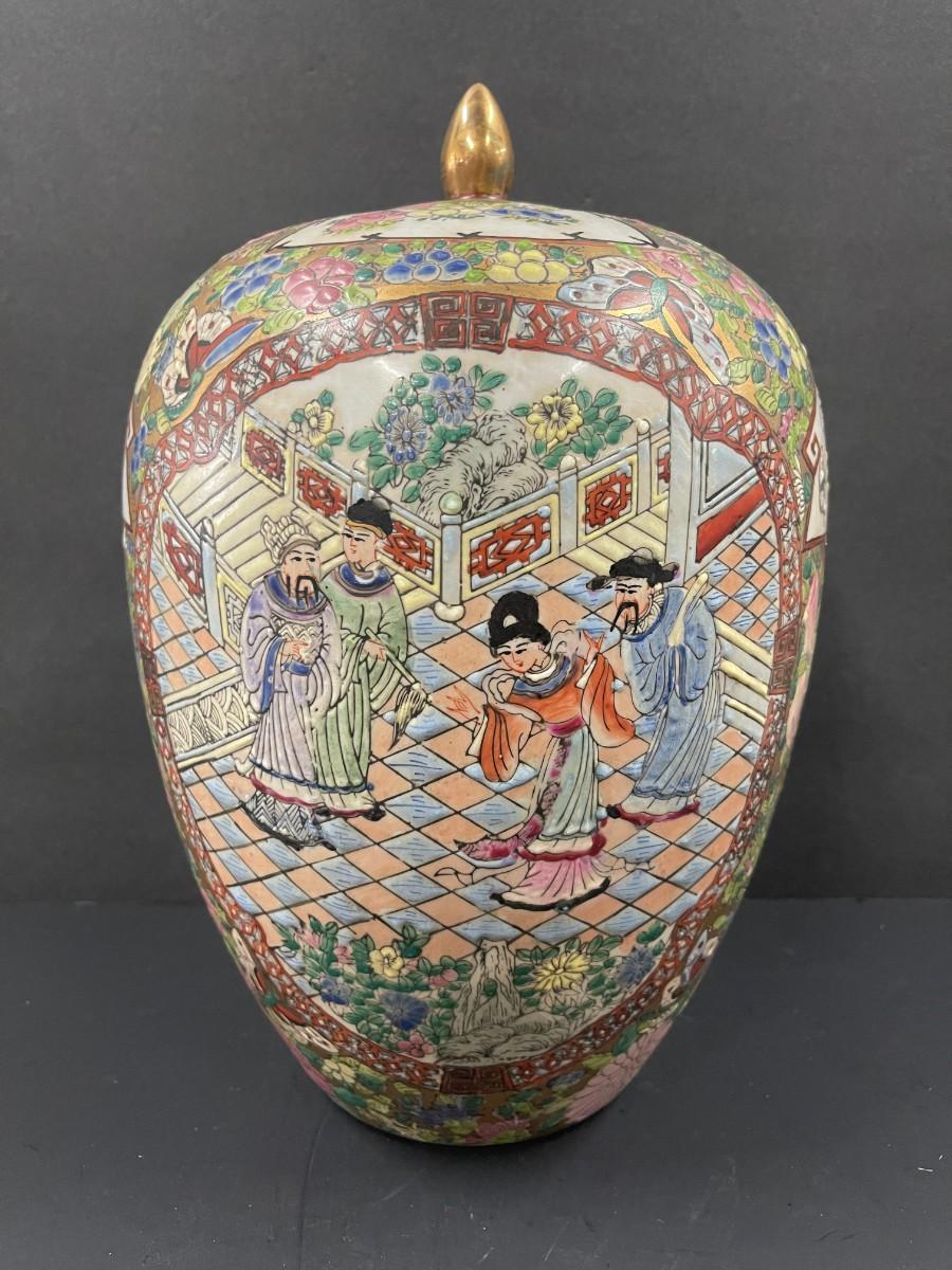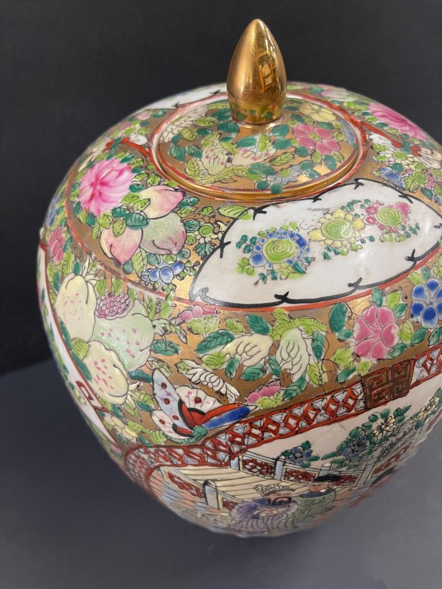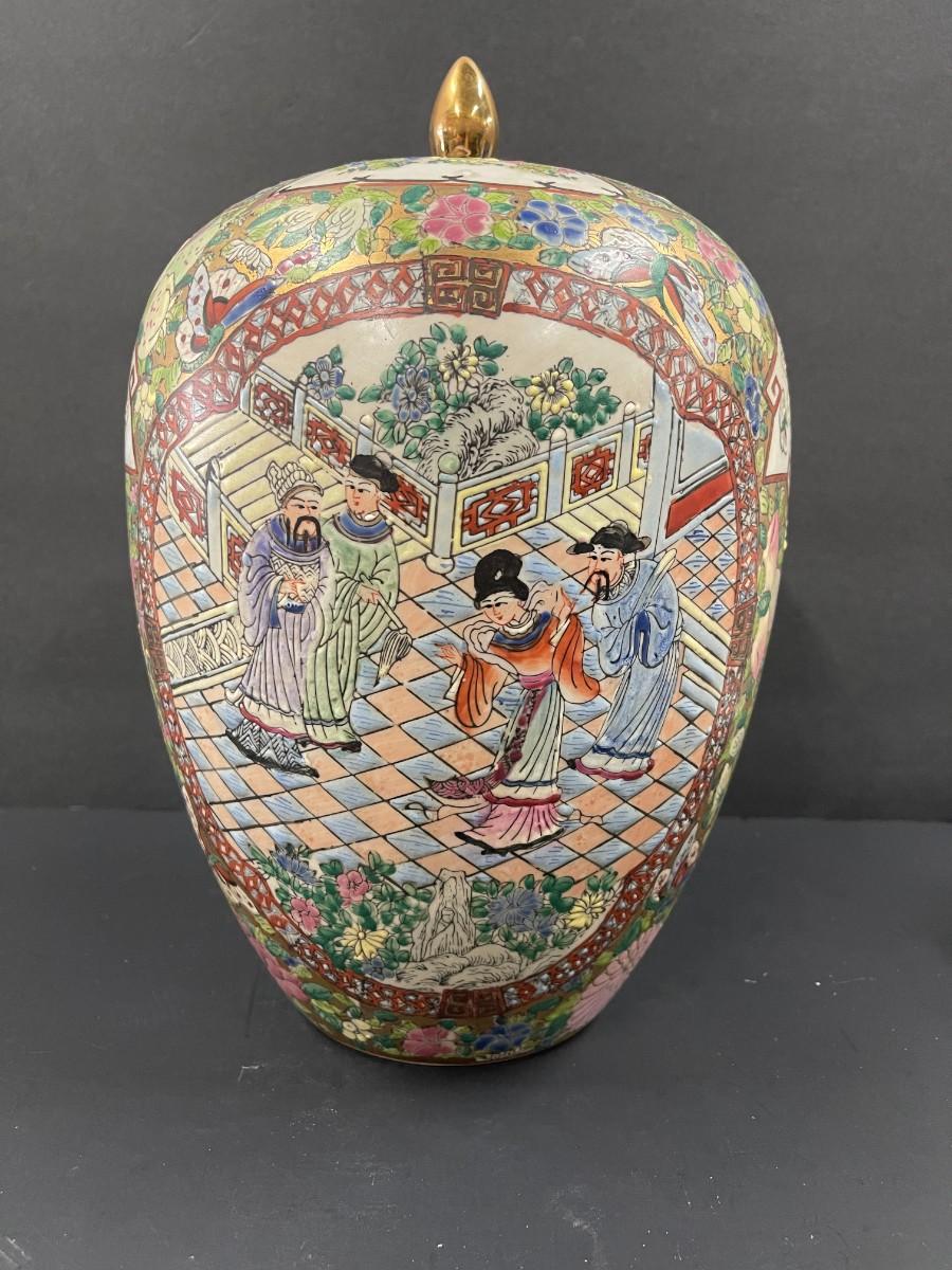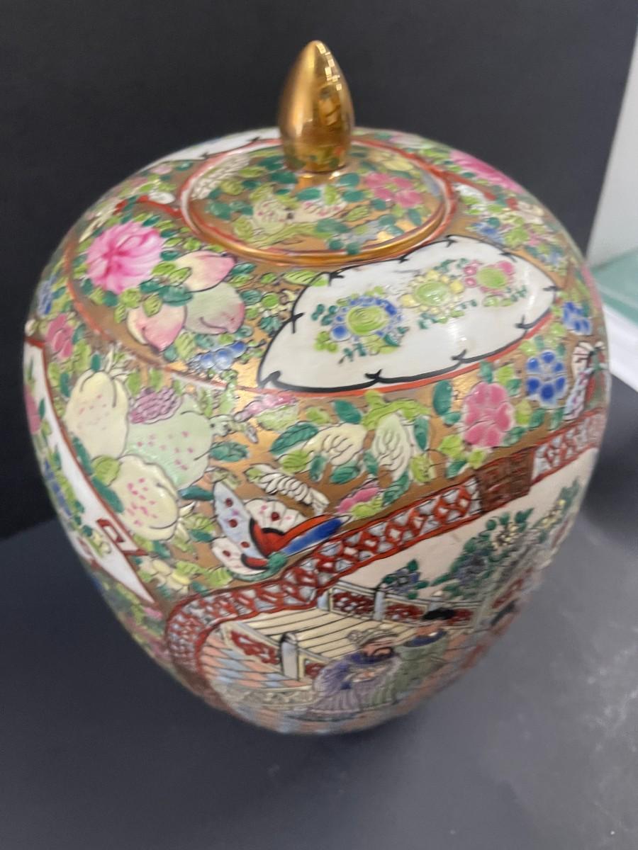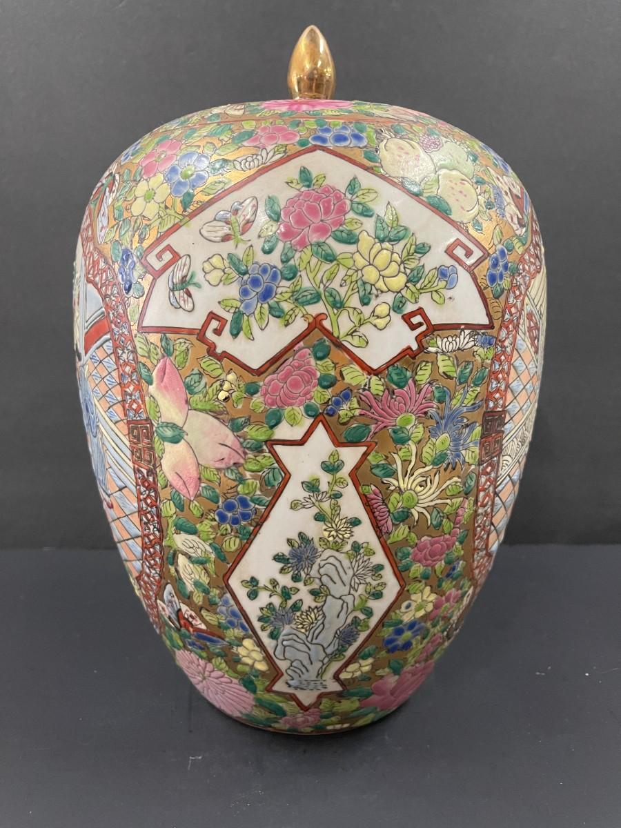 Vintage Chinese Rose Medallion Ginger Jar