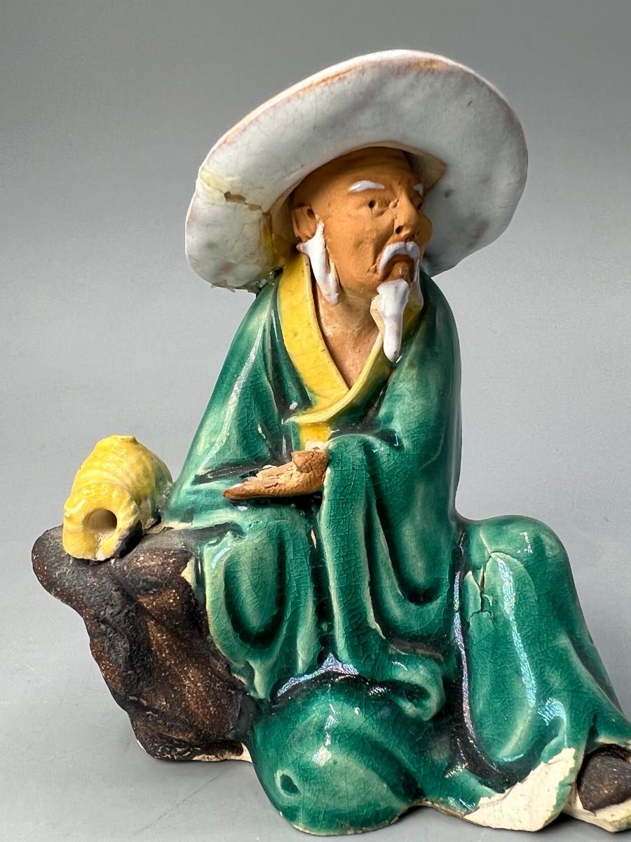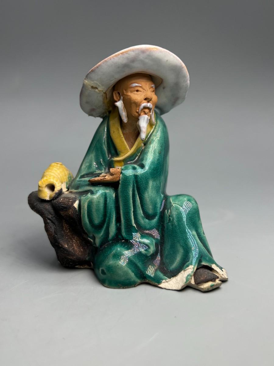 Vintage Chinese Shiwan Mudman Elderly Wiseman Figurine Statuette