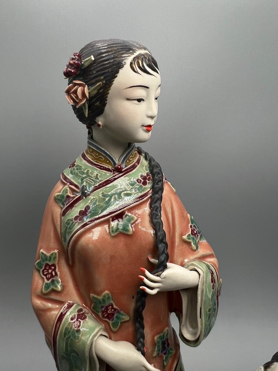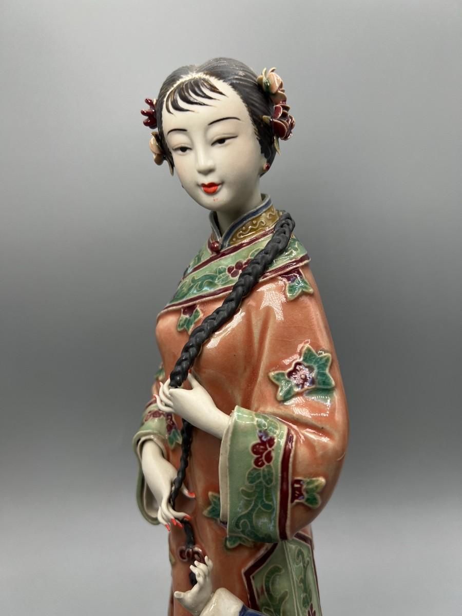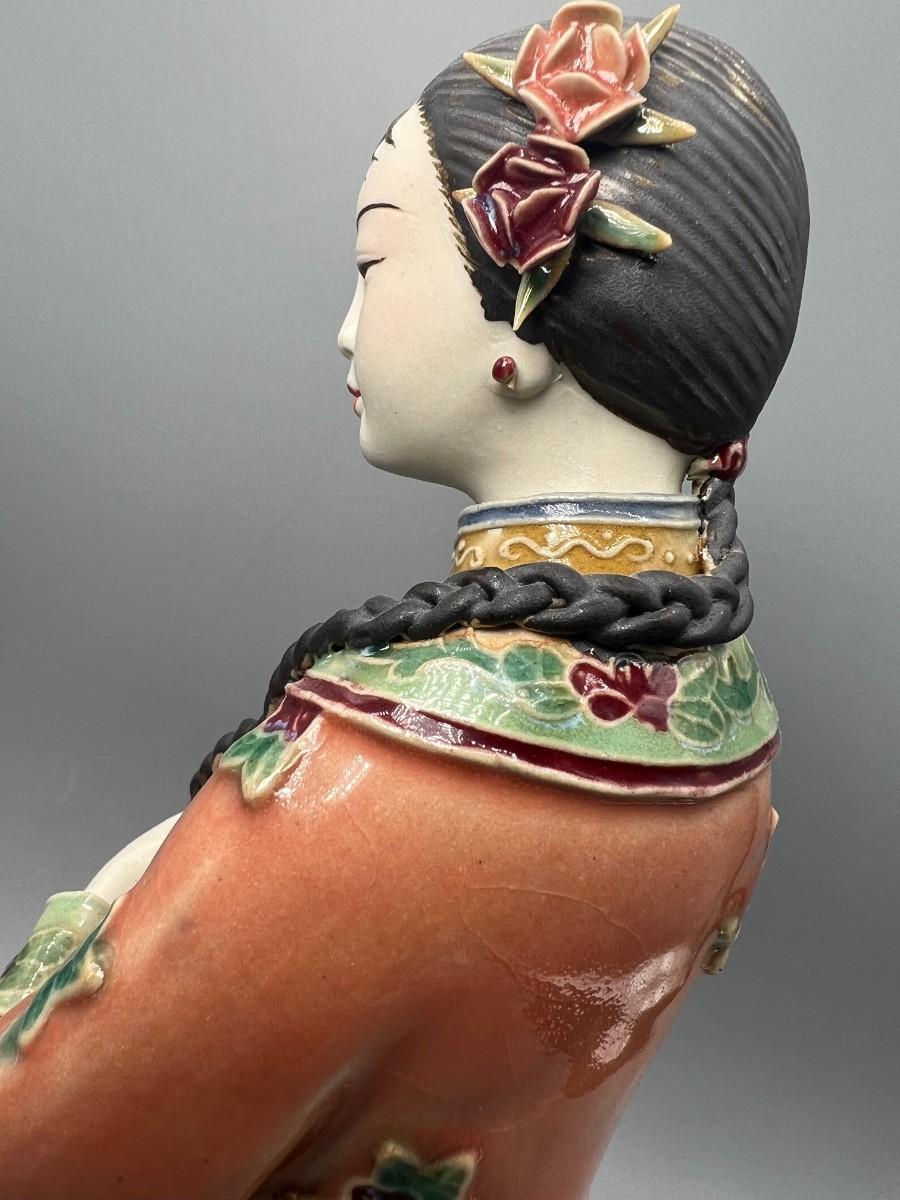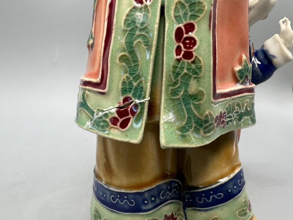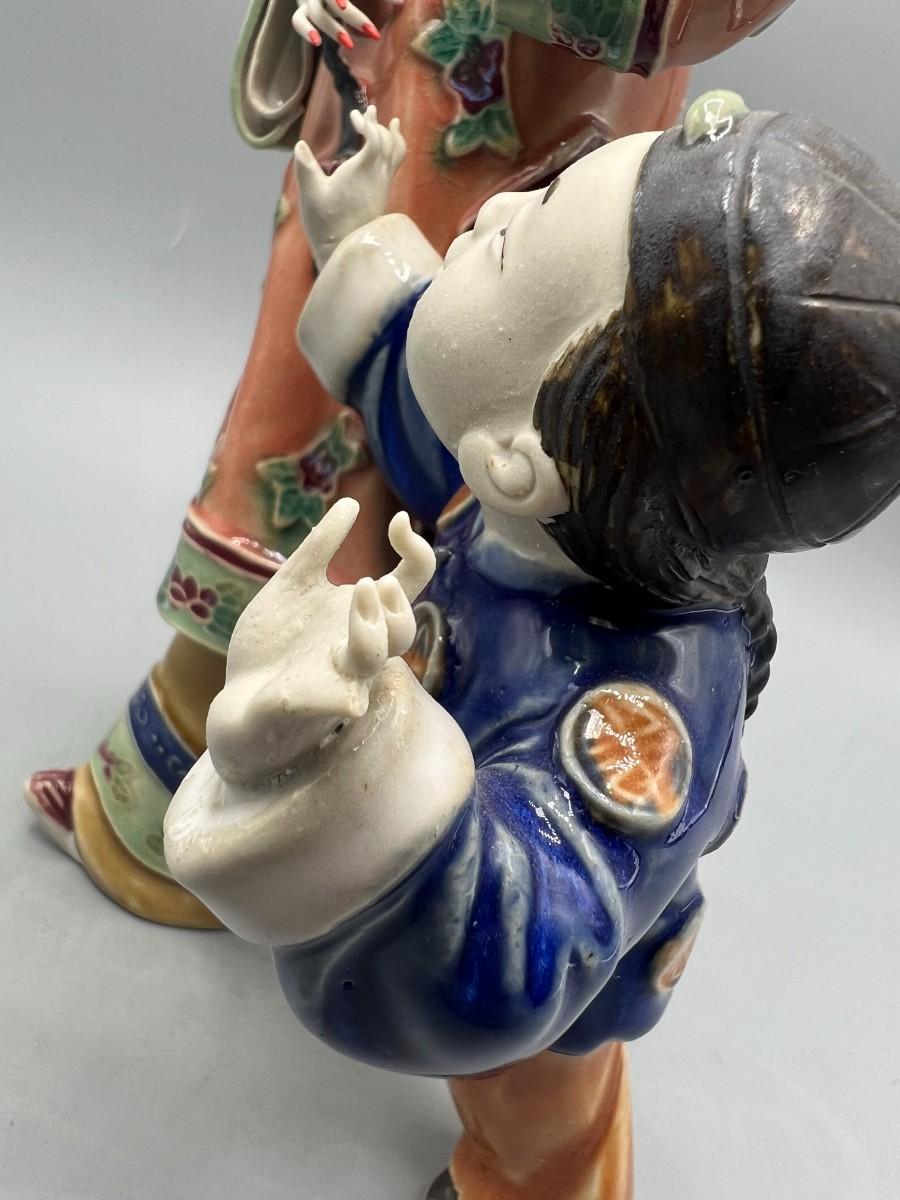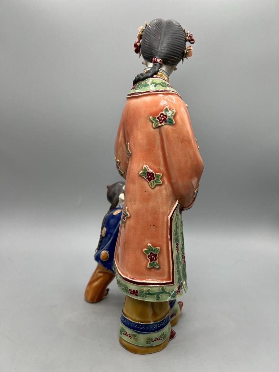Vintage Chinese Shiwan Ware Style Ornate Mother & Child Porcelain Figurine Statue
