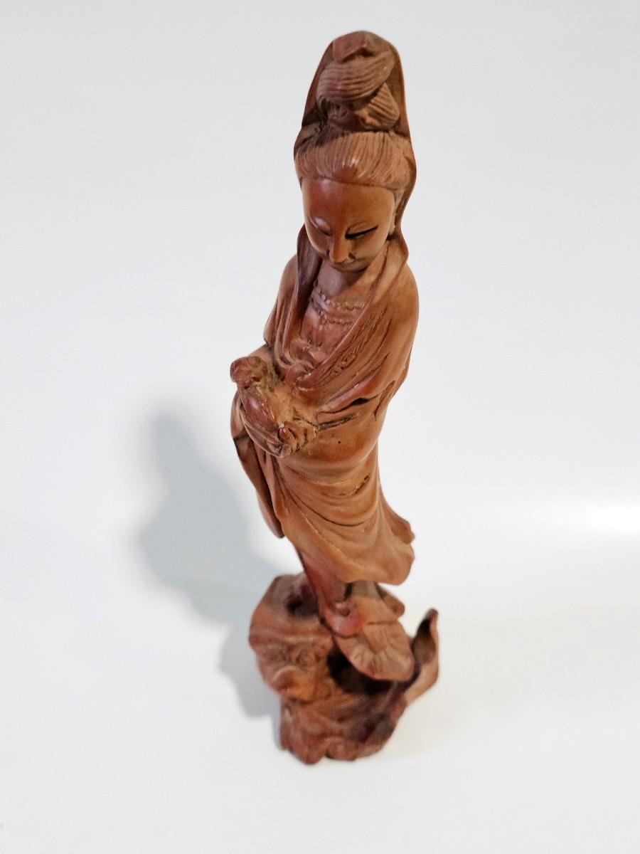 Vintage Chinese Wood Figure, Quan Yin in Wood