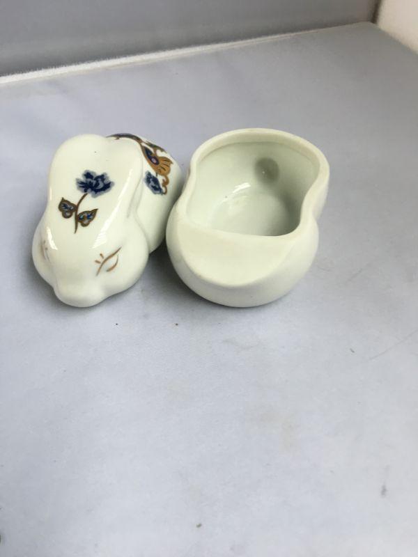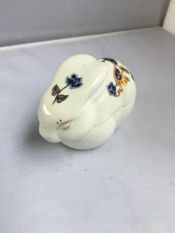 Adorable rabbit could be used as a small jewelry box. In VG conditions. Measures 4" X 2.75".