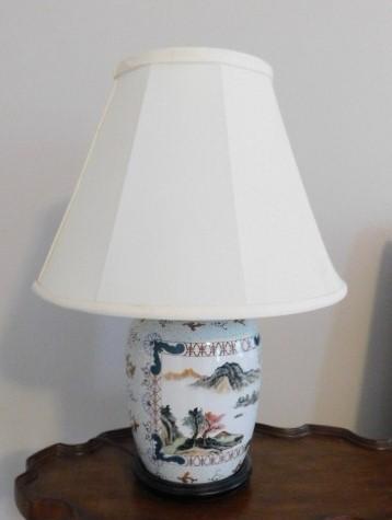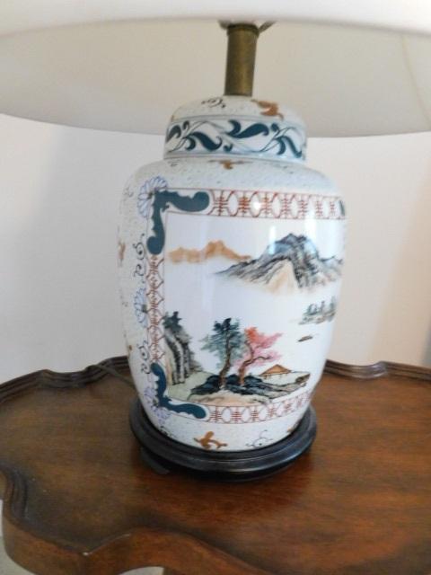 Vintage Chinoiserie Heavy Ceramic Ginger Jar Table Lamp with Shade 24"