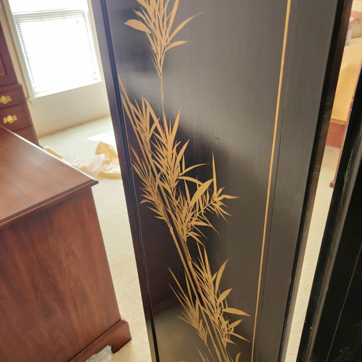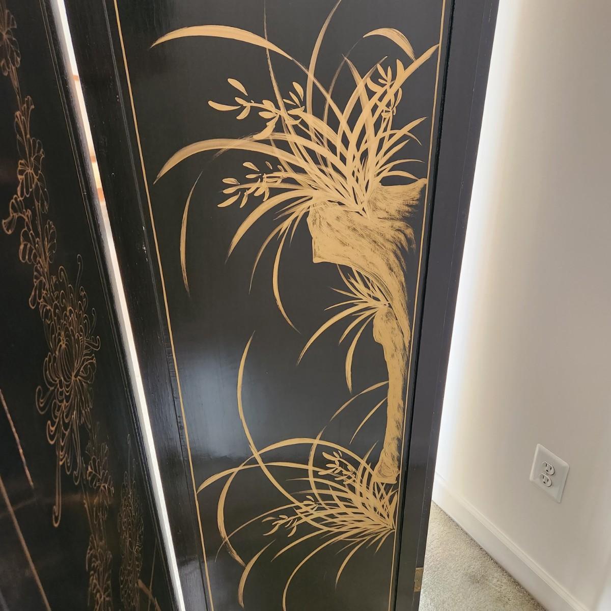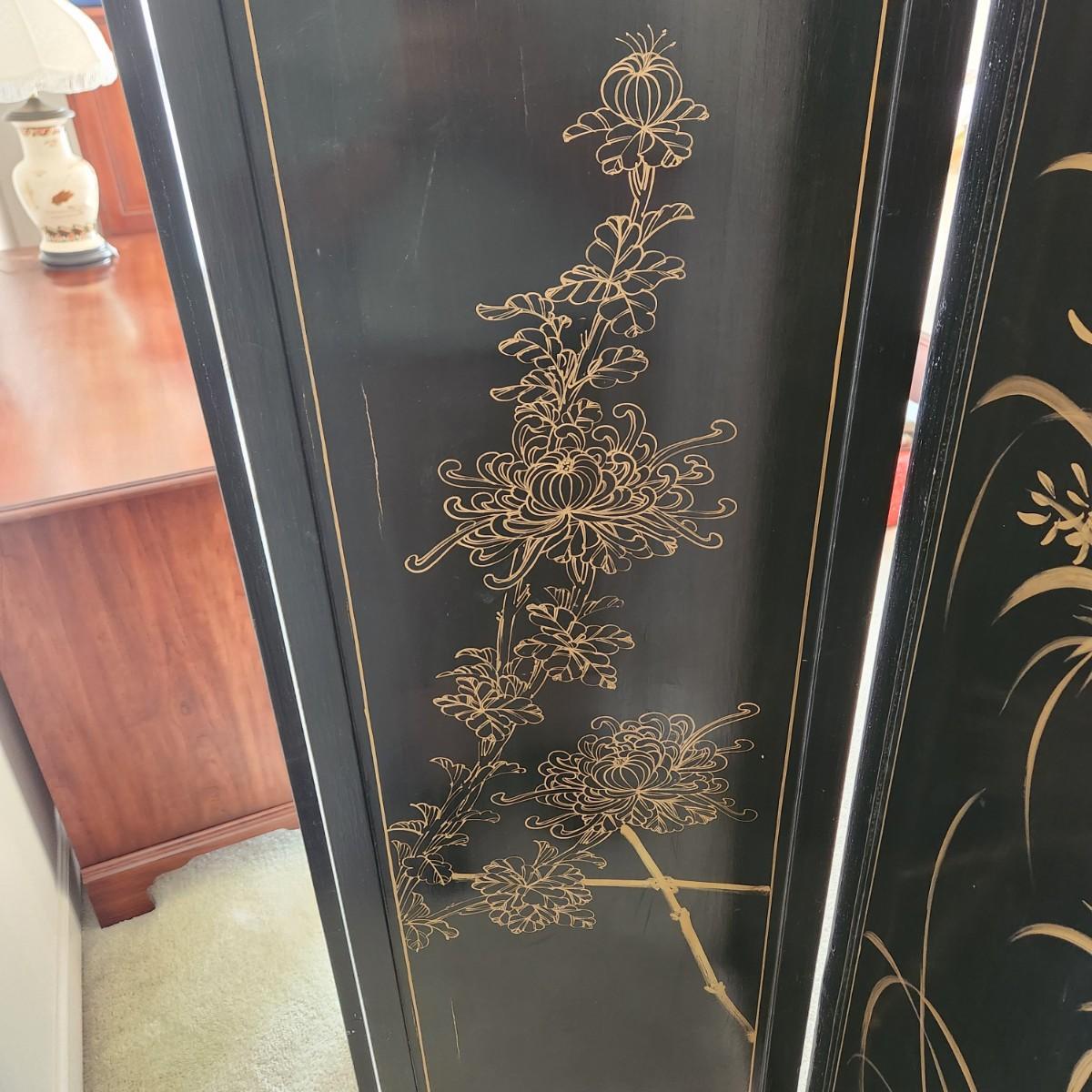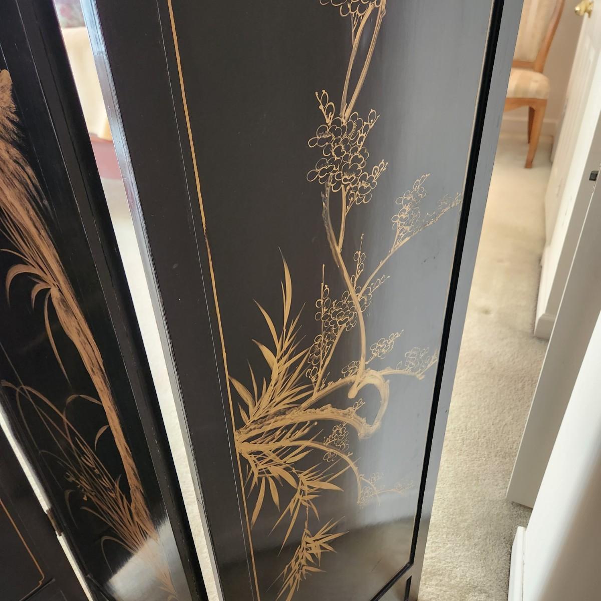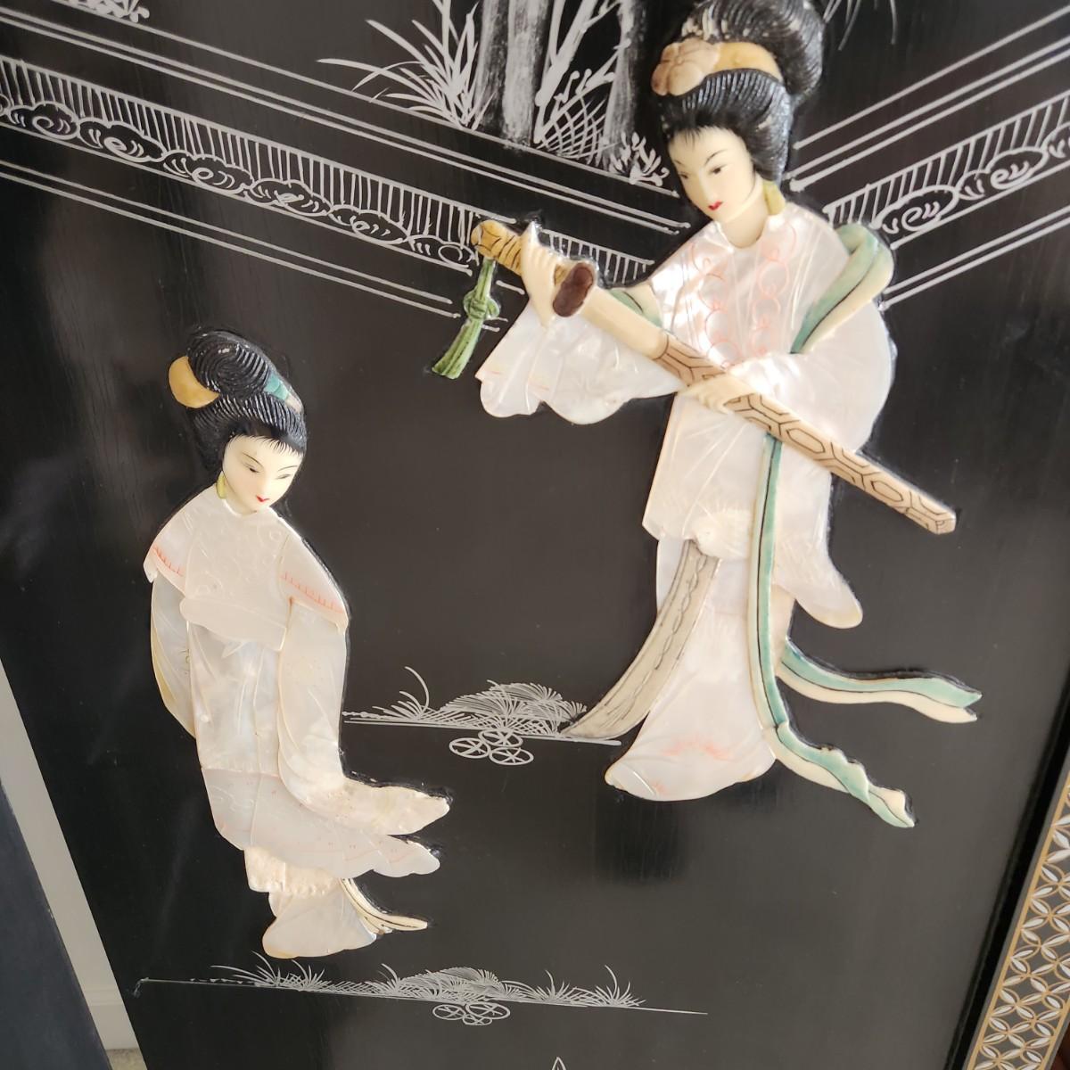 Vintage Asian Chinoiserie Mother of Pearl Hand Painted 4 Panel Screen