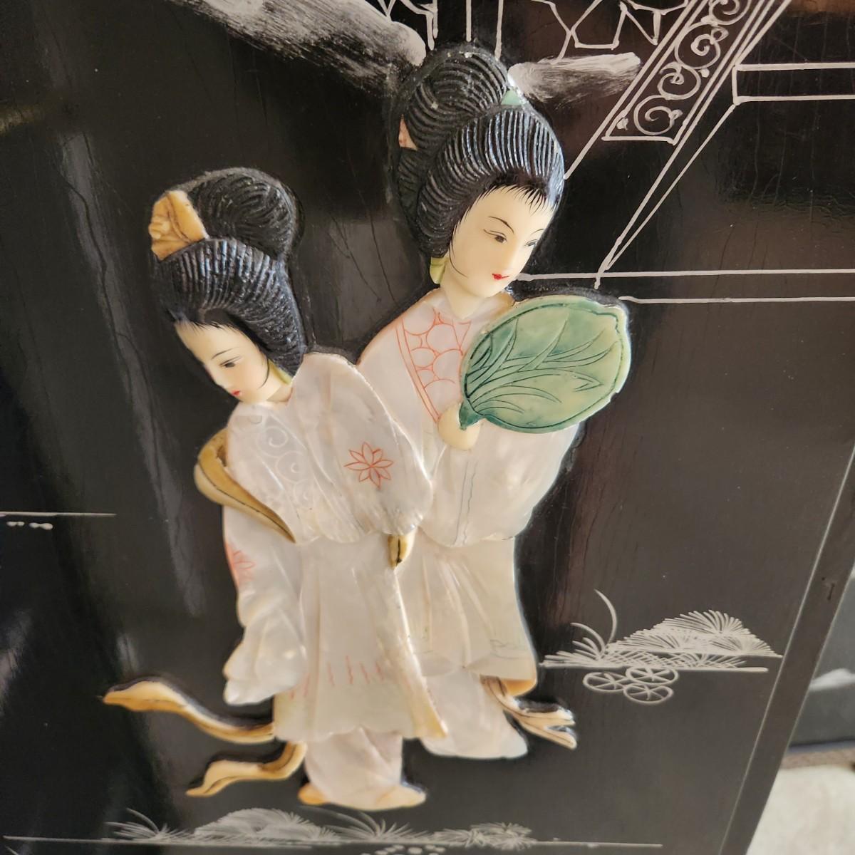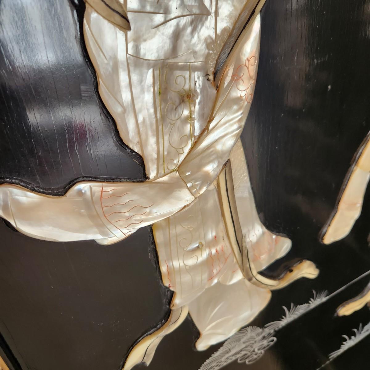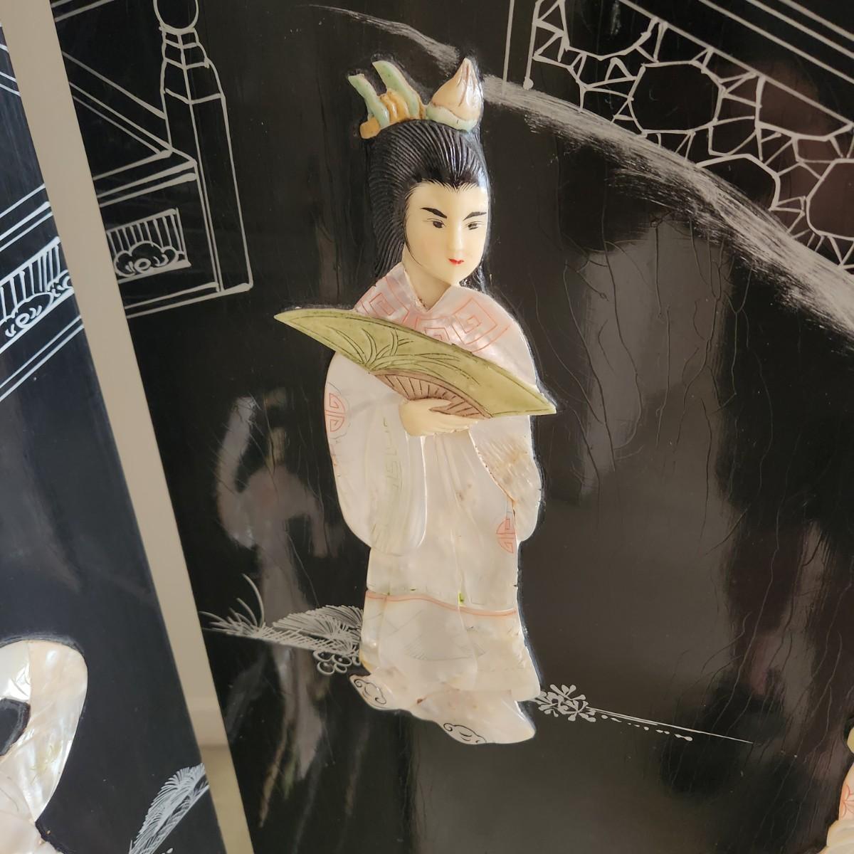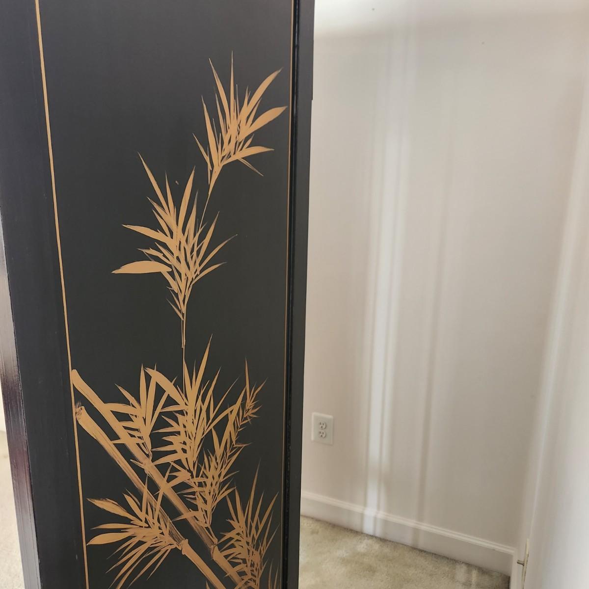 Vintage Asian Chinoiserie Mother of Pearl Hand Painted 4 Panel Screen