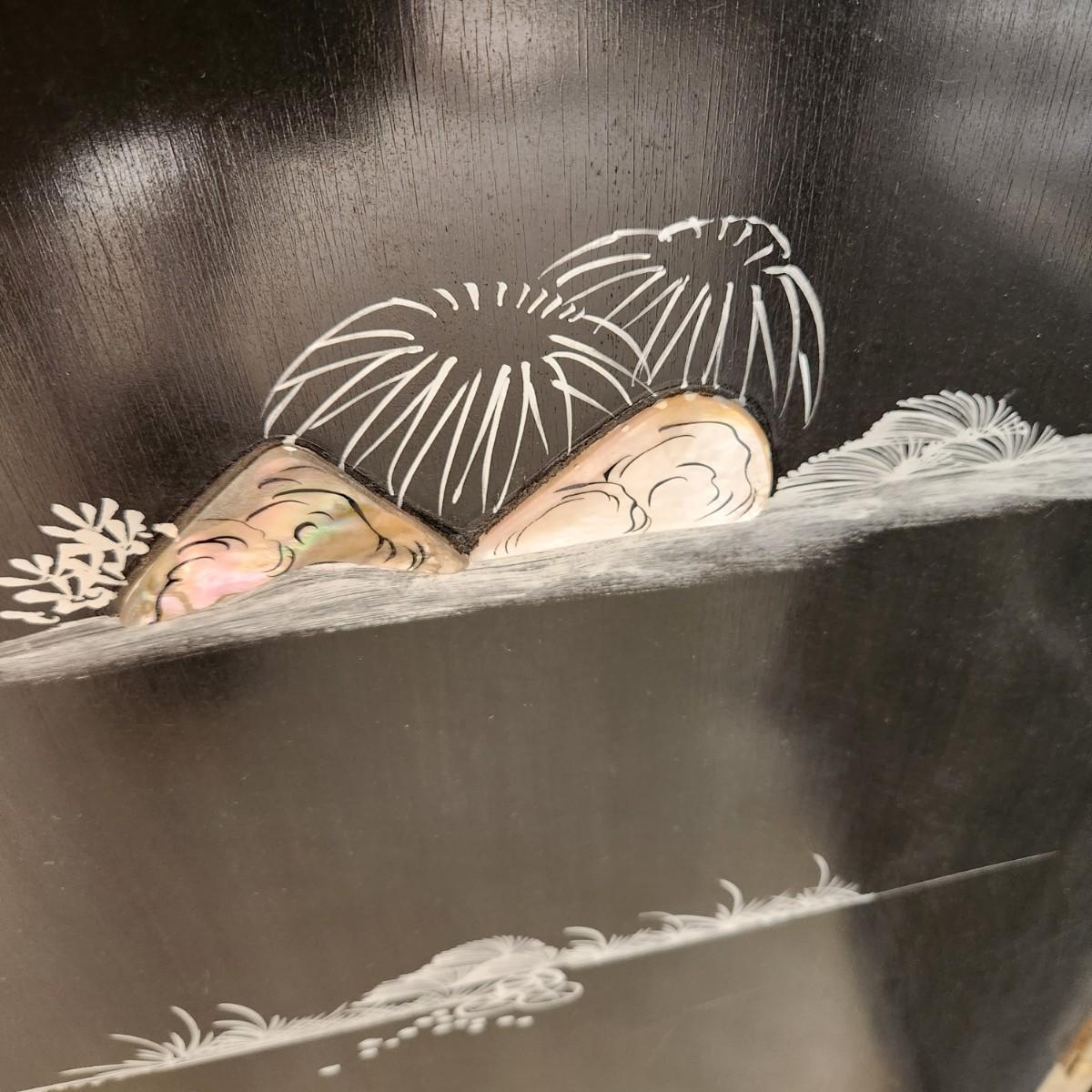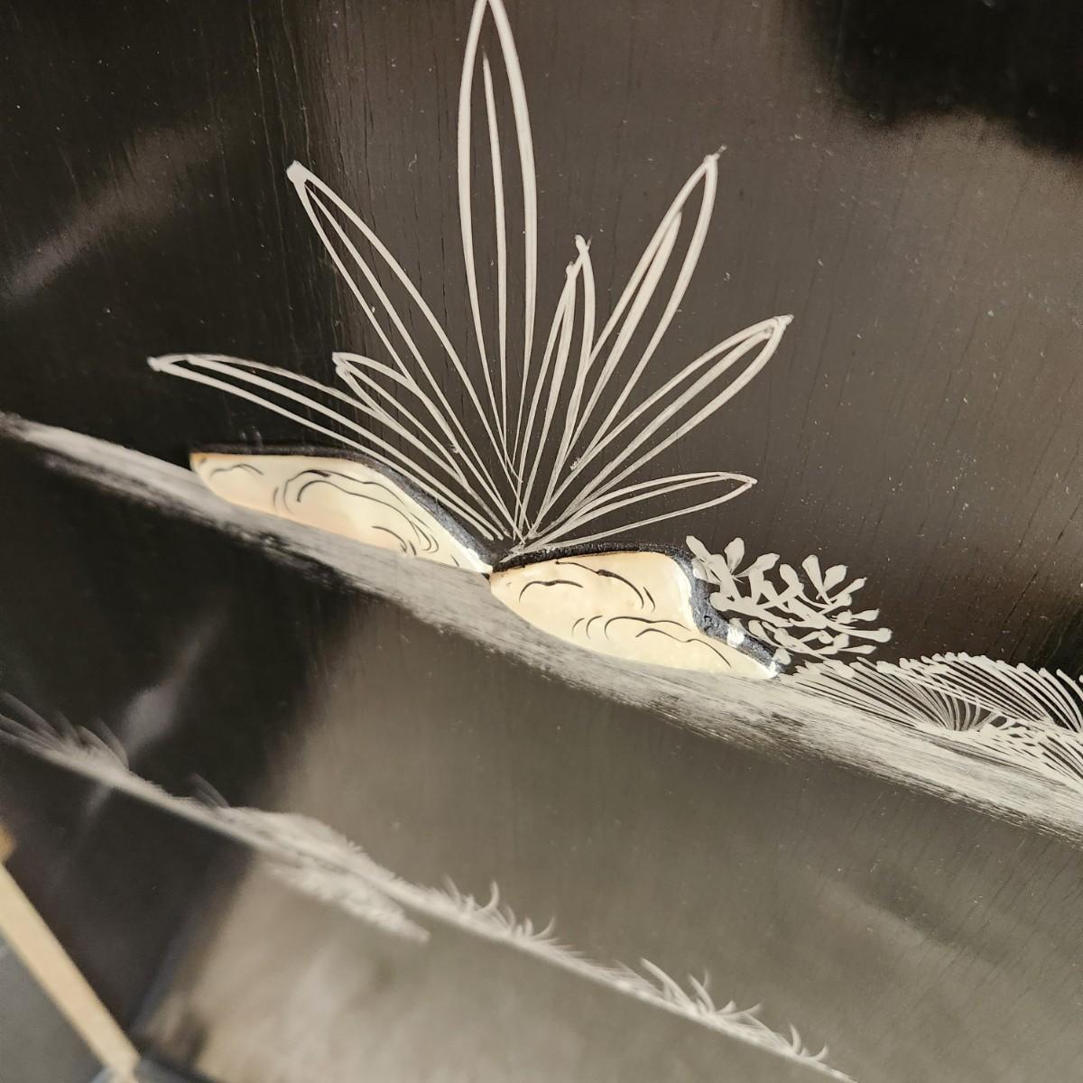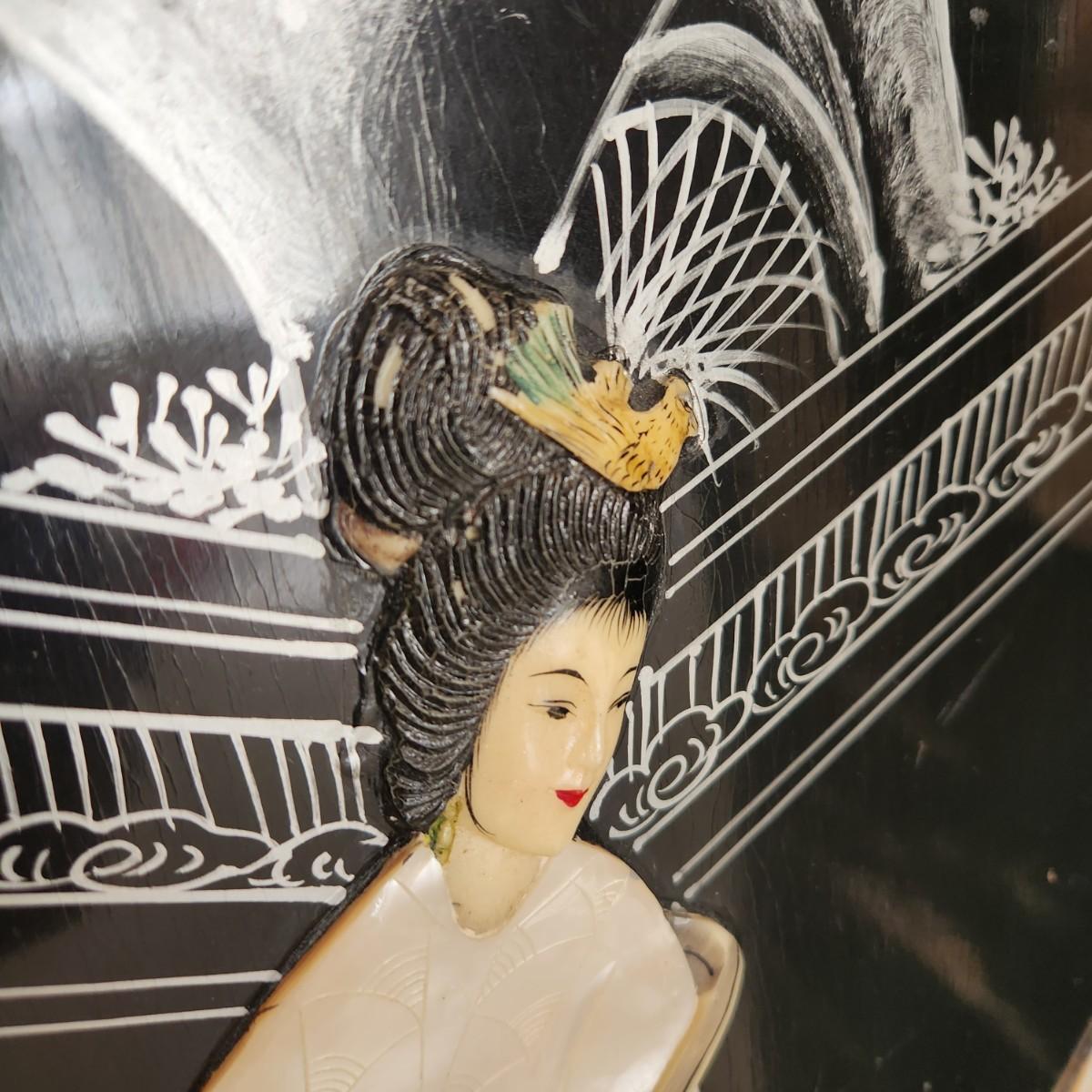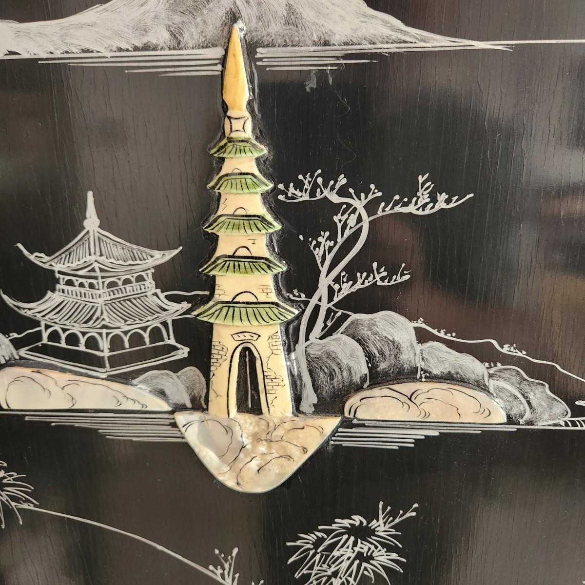 Vintage Asian Chinoiserie Mother of Pearl Hand Painted 4 Panel Screen
