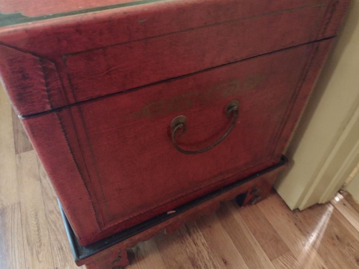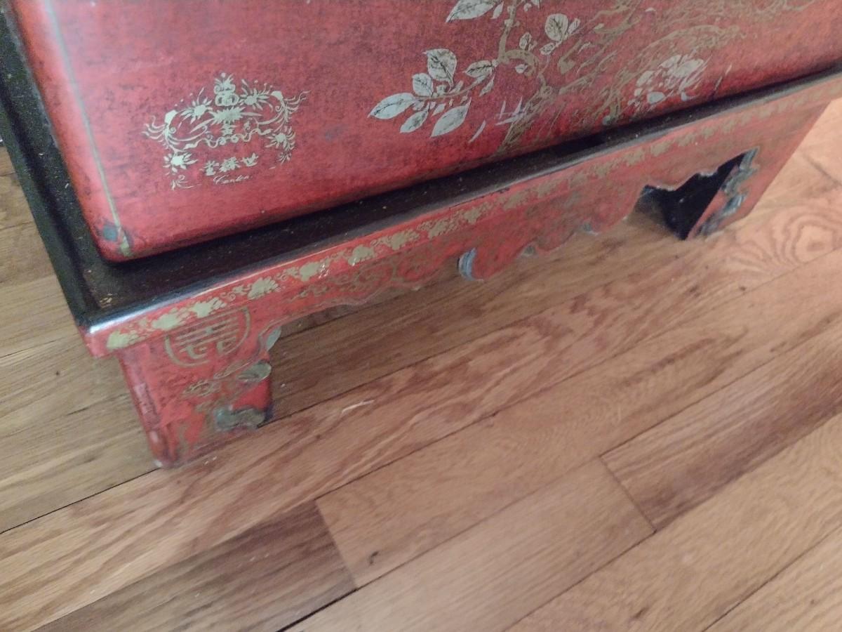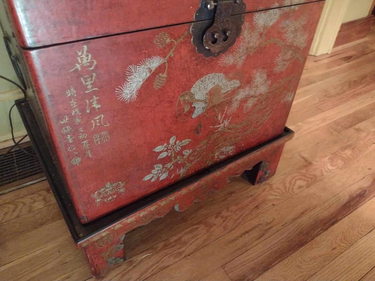 Vintage Chinoiserie Red Finish Painted Chest or Trunk