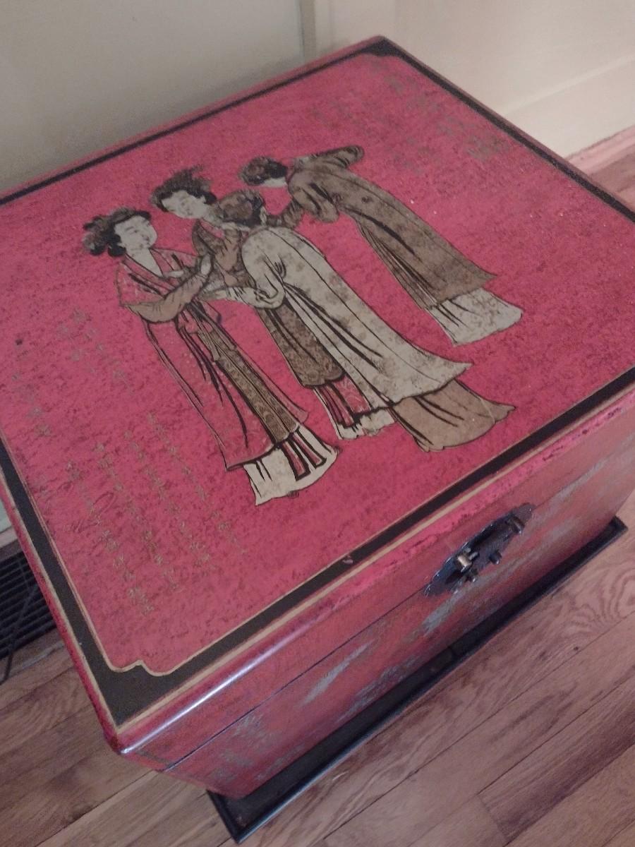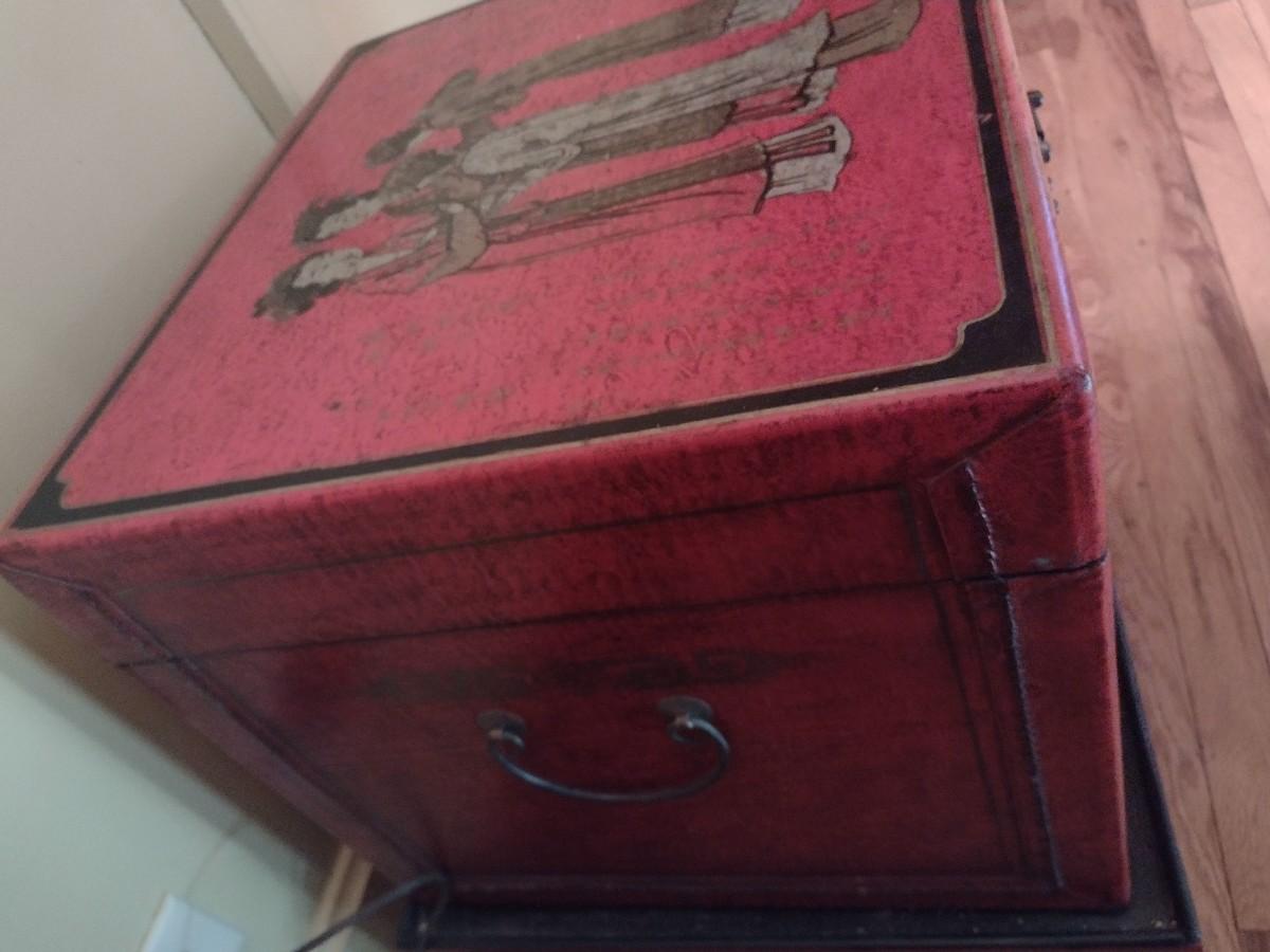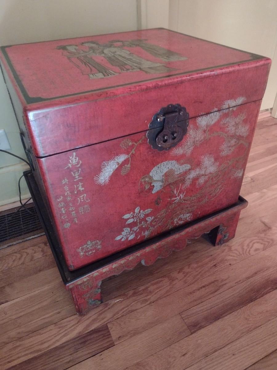 Vintage Chinoiserie Red Finish Painted Chest or Trunk