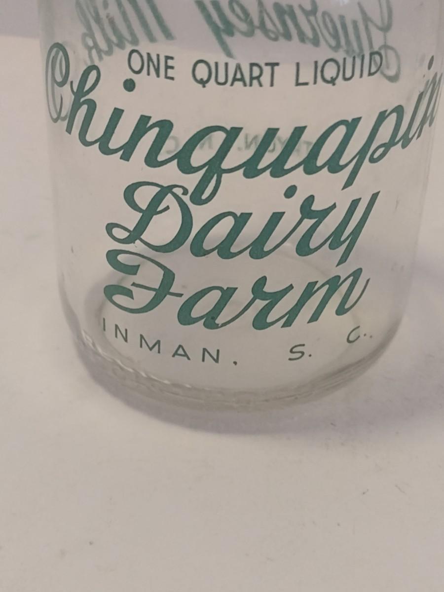 Vintage Chinquapin Dairy Farm Milk Bottle Inman, SC and Tryon, NC