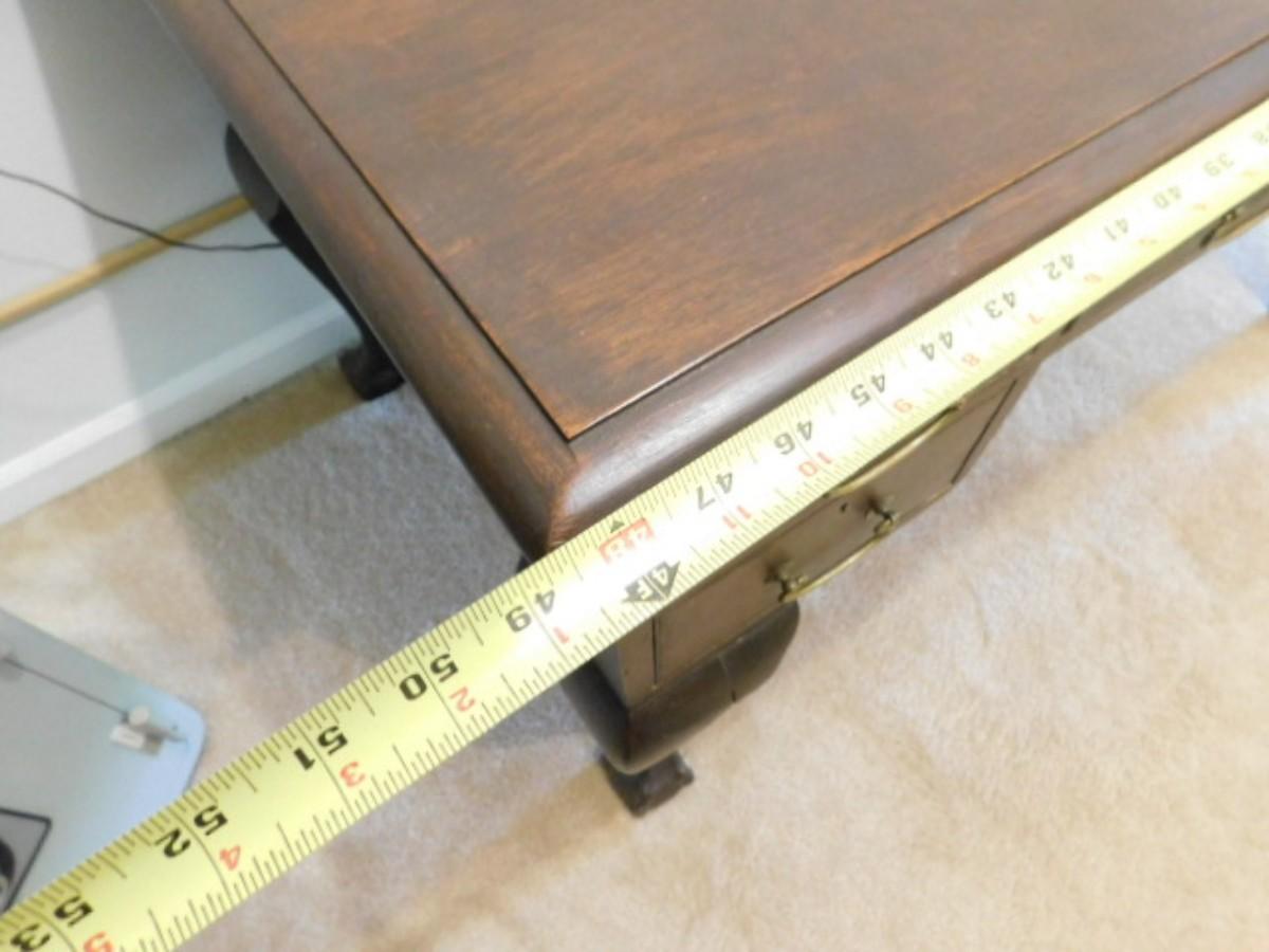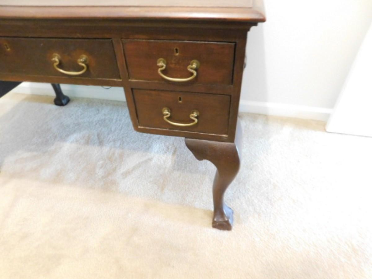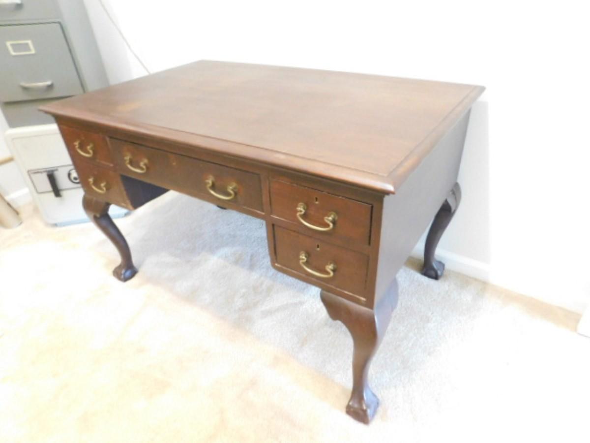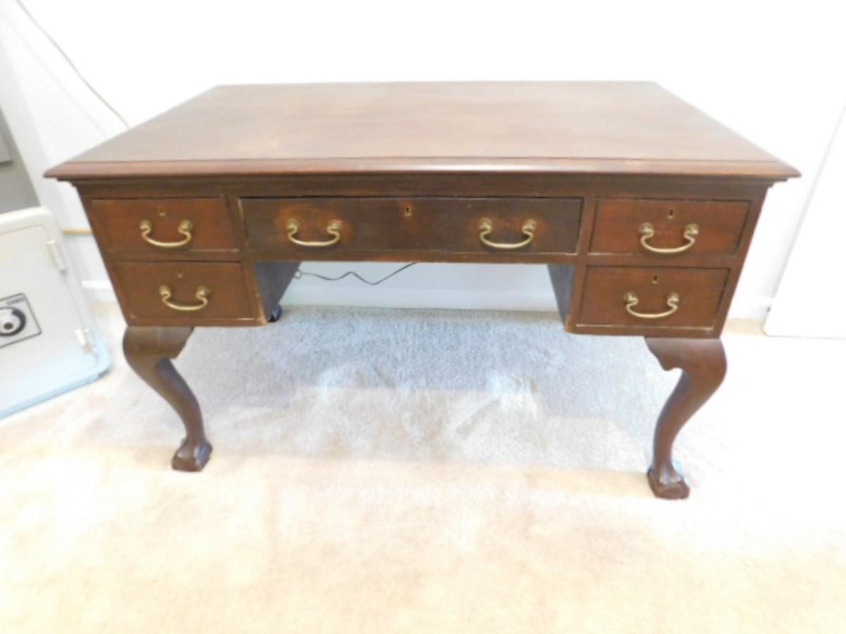 Vintage Chippendale Design Librarian's Desk has some wear and scratches to finish. Bring assistance to remove. Downstairs item
