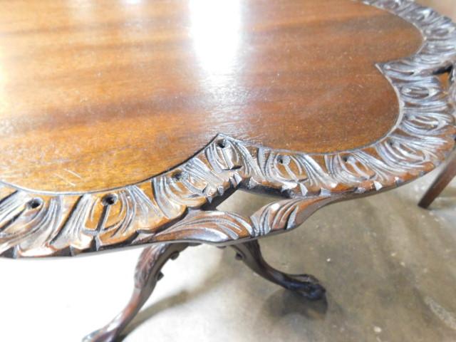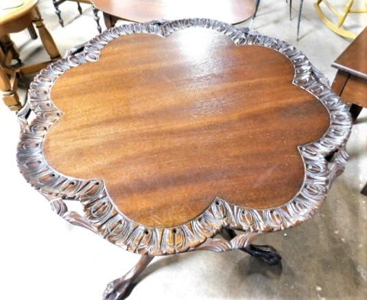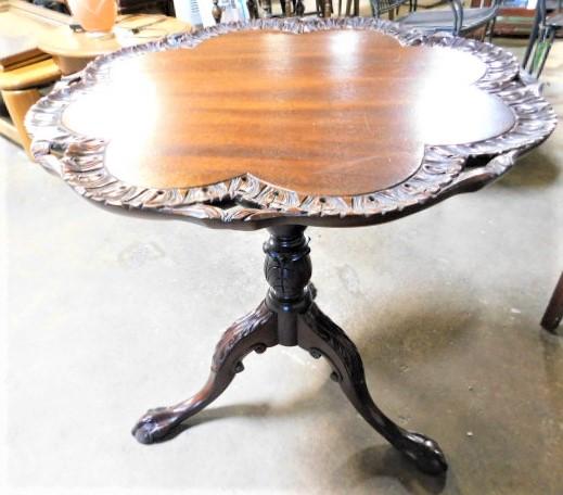 Vintage Chippendale Solid Wood Carved Edge Tilt-Top Table