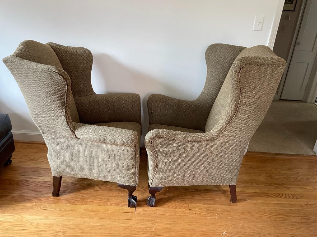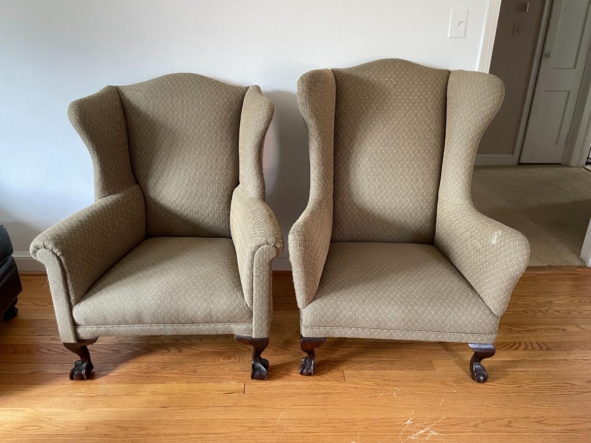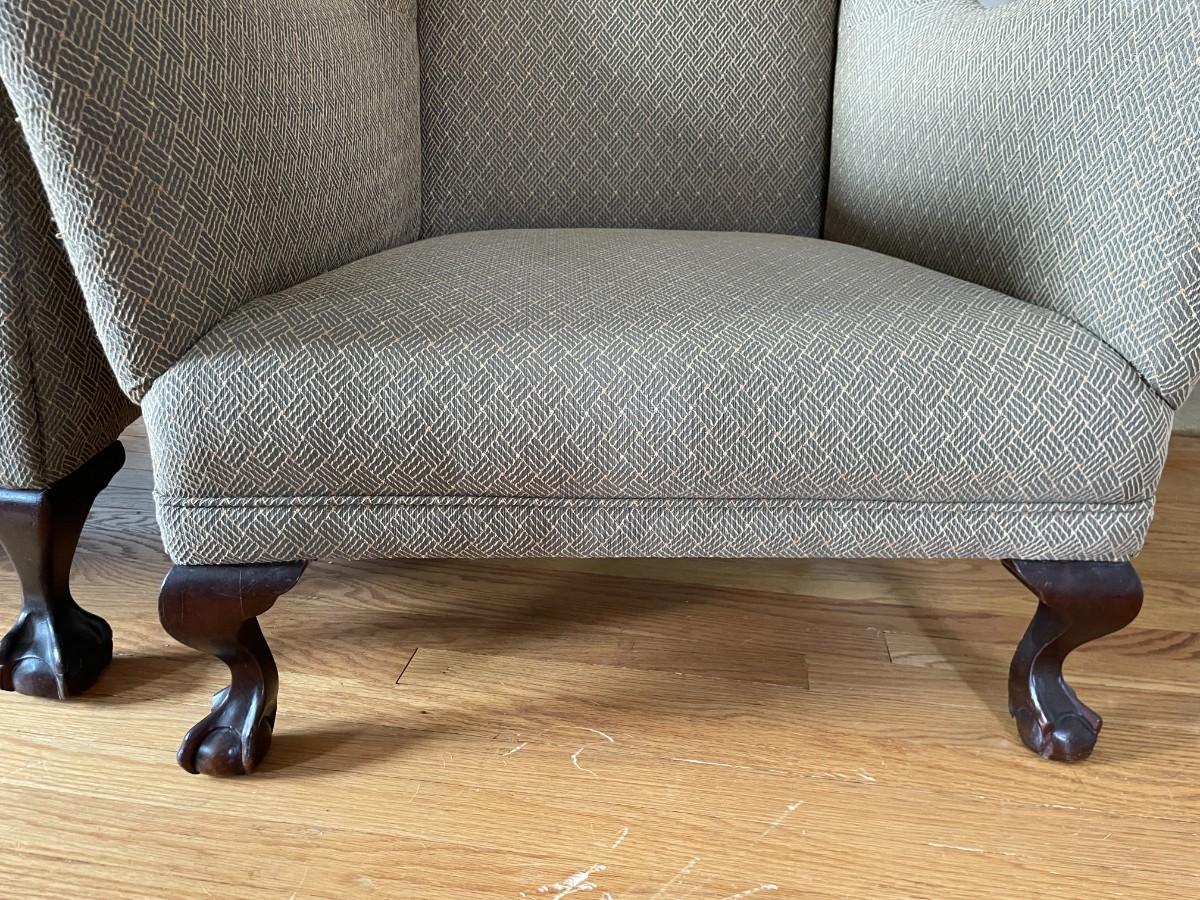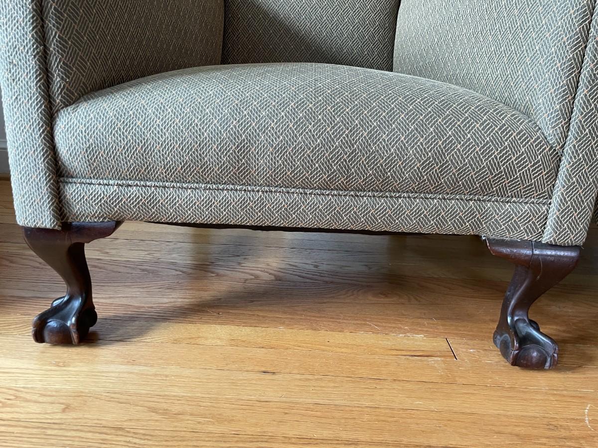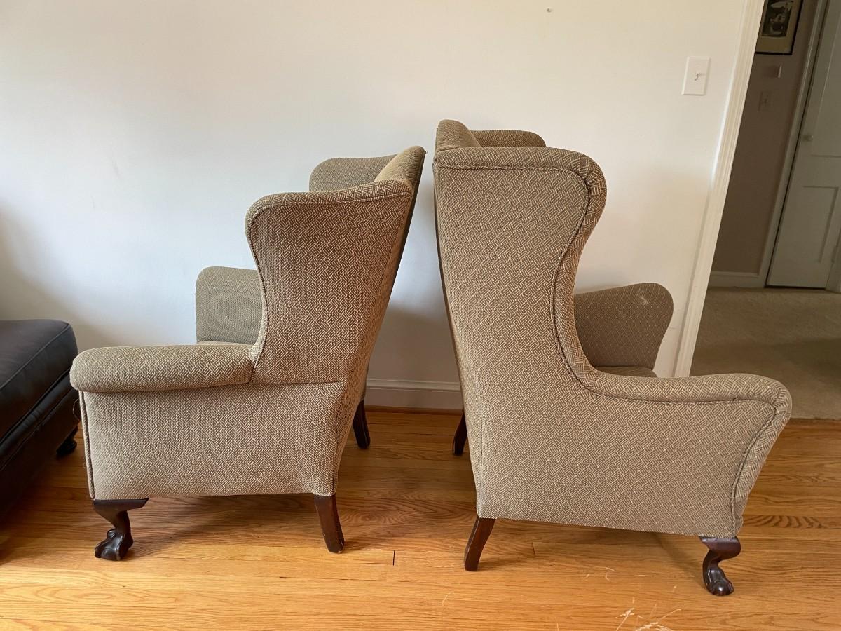 Vintage Chippendale Style Wingback Arm Chairs Ball And Claw Legs