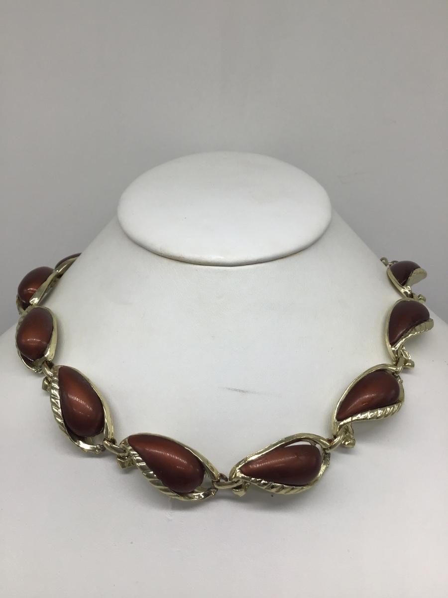 Vintage Chocolate Brown Gold Tone Necklace