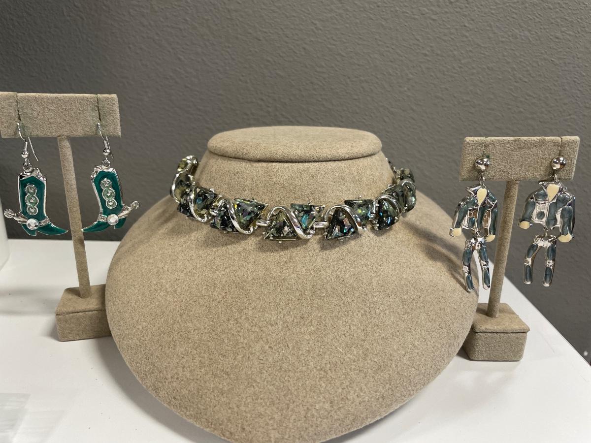 Dangling post earrings and choker