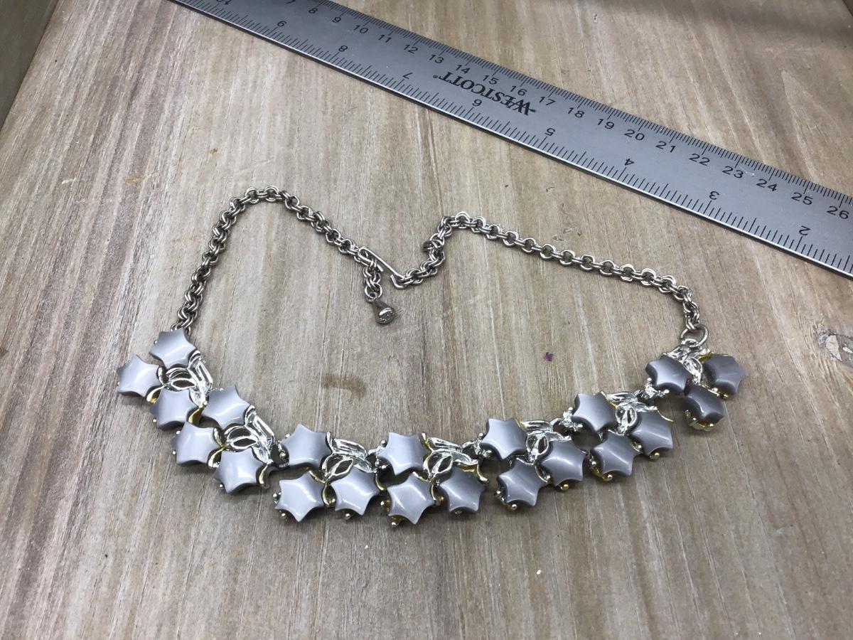 Vintage Choker Necklace Grey Plastic Lucite Leaves Silver Tone 15''