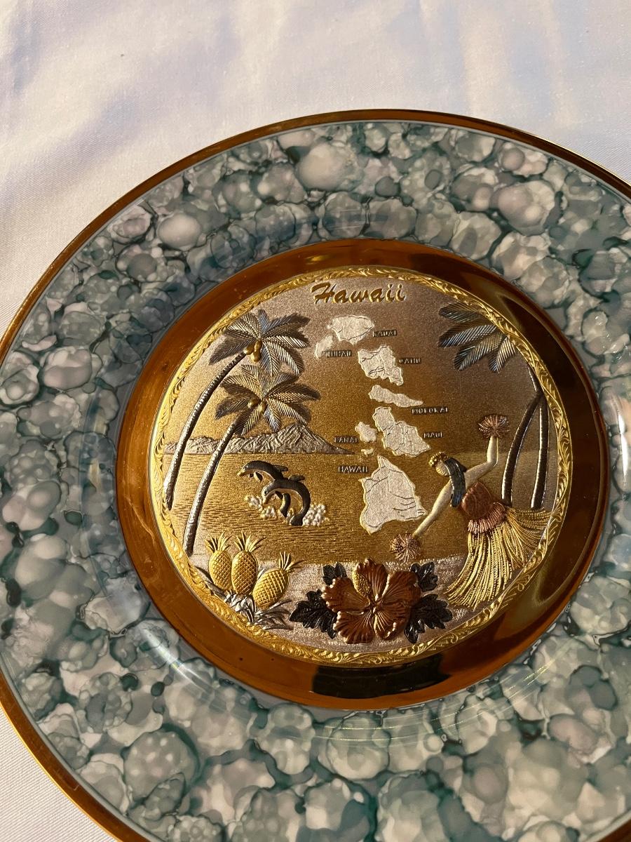 Vintage Chokin Japanese Art Form Souvenir Plate From Hawaii