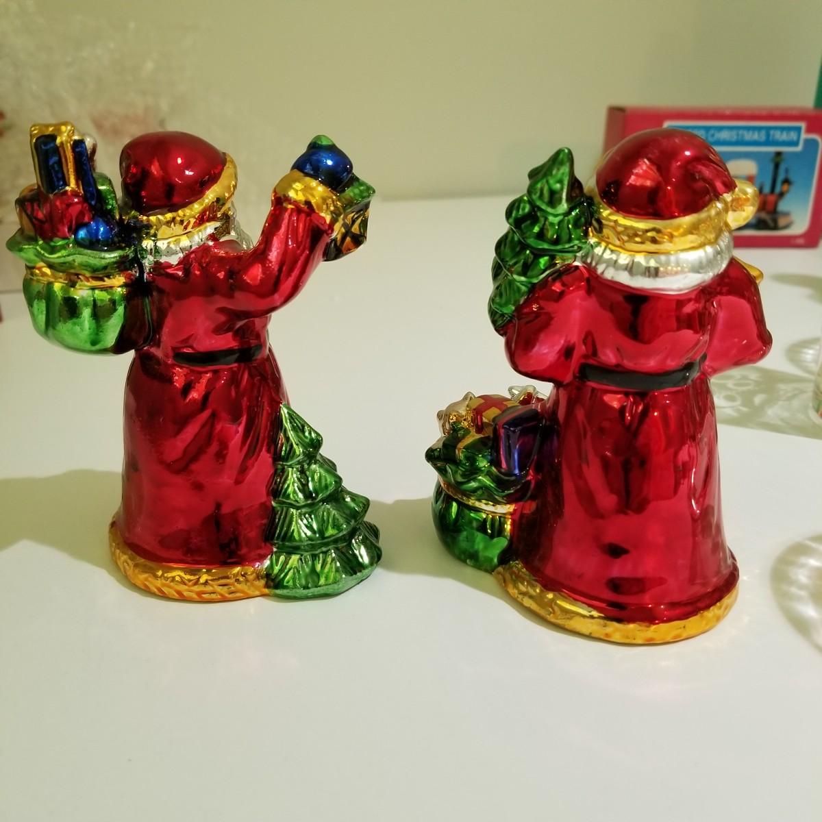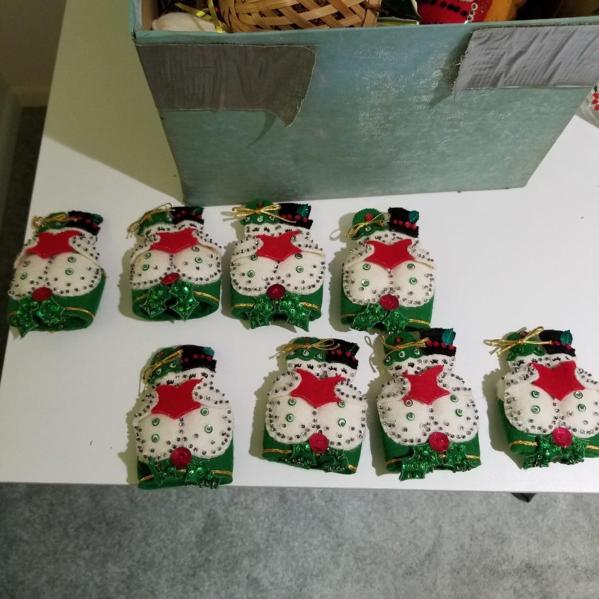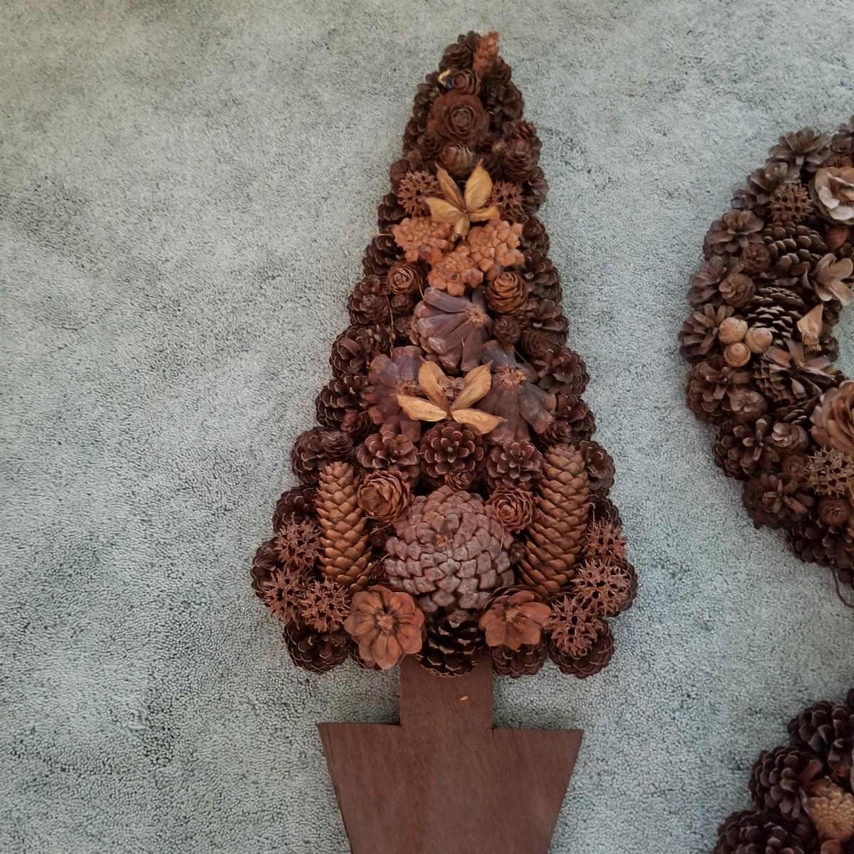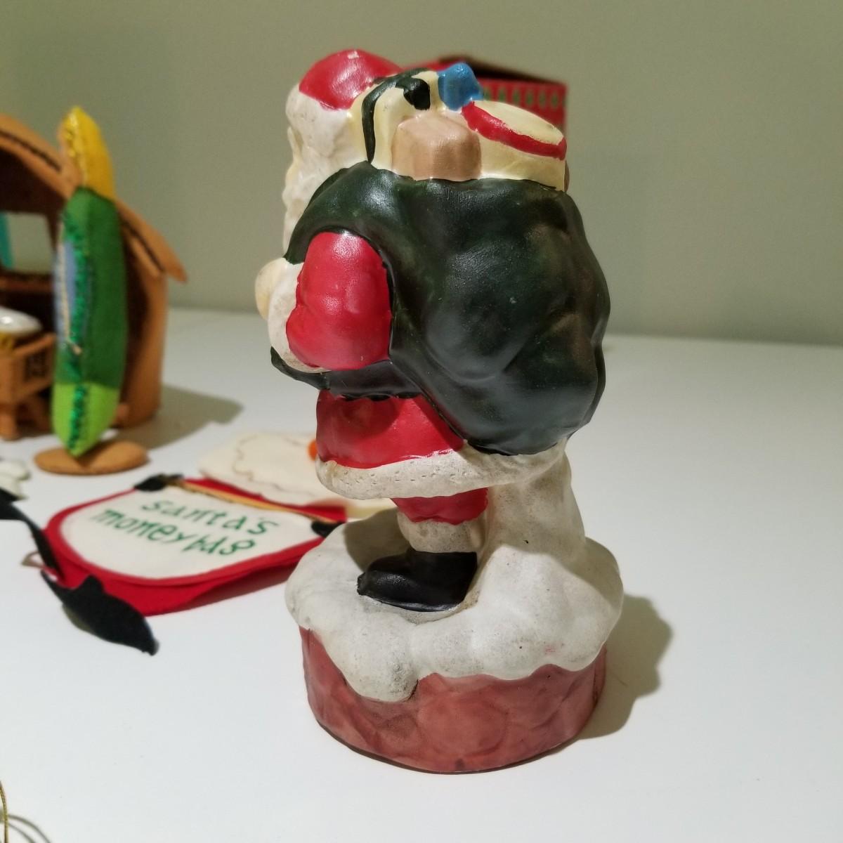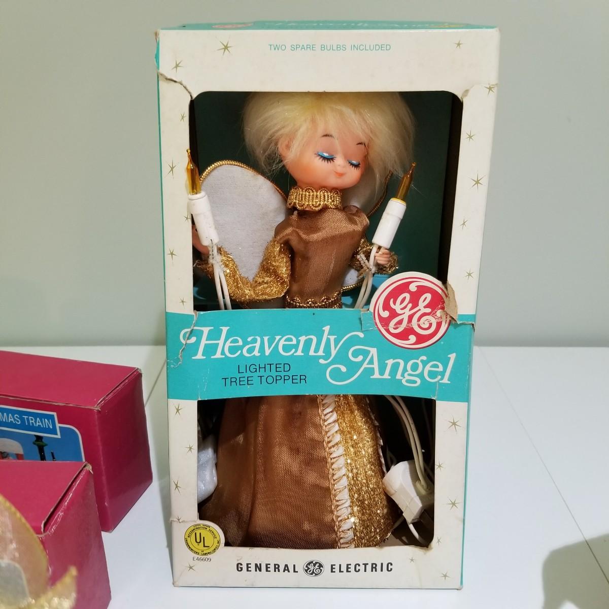 A collection of vintage holiday items. Glasses, figurines, ornaments of all types. Lighted angel tree topper, handmade felt pieces and treasures. Also includes three pinecone items, one tree, 10"x26", and two wreaths, the largest is16"d. See photos for detail.  Shipping available.