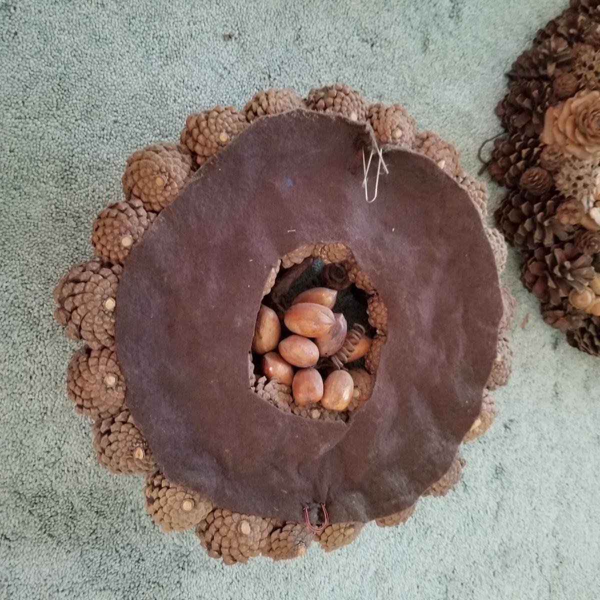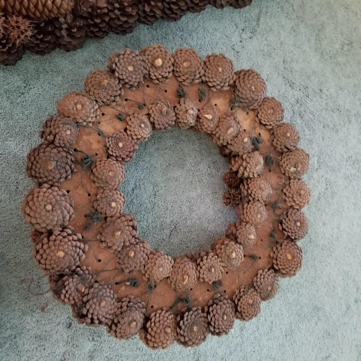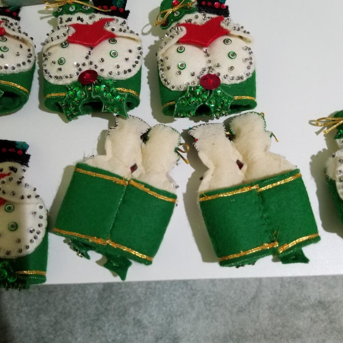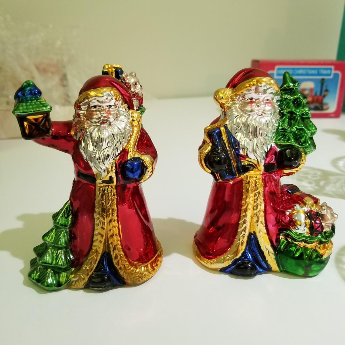 A collection of vintage holiday items. Glasses, figurines, ornaments of all types. Lighted angel tree topper, handmade felt pieces and treasures. Also includes three pinecone items, one tree, 10"x26", and two wreaths, the largest is16"d. See photos for detail.  Shipping available.