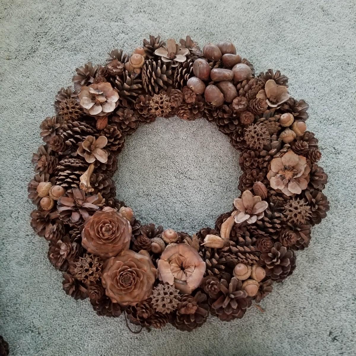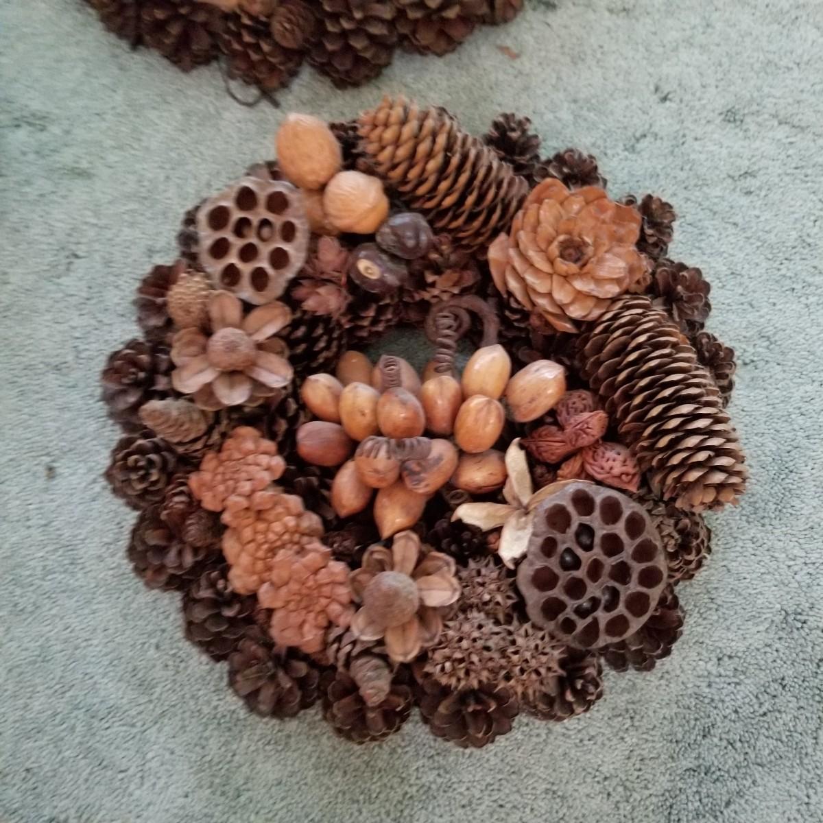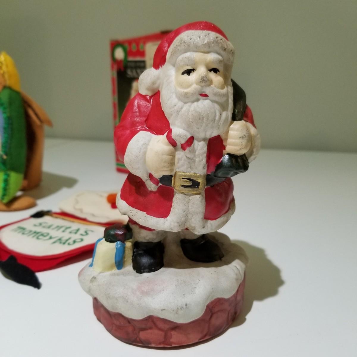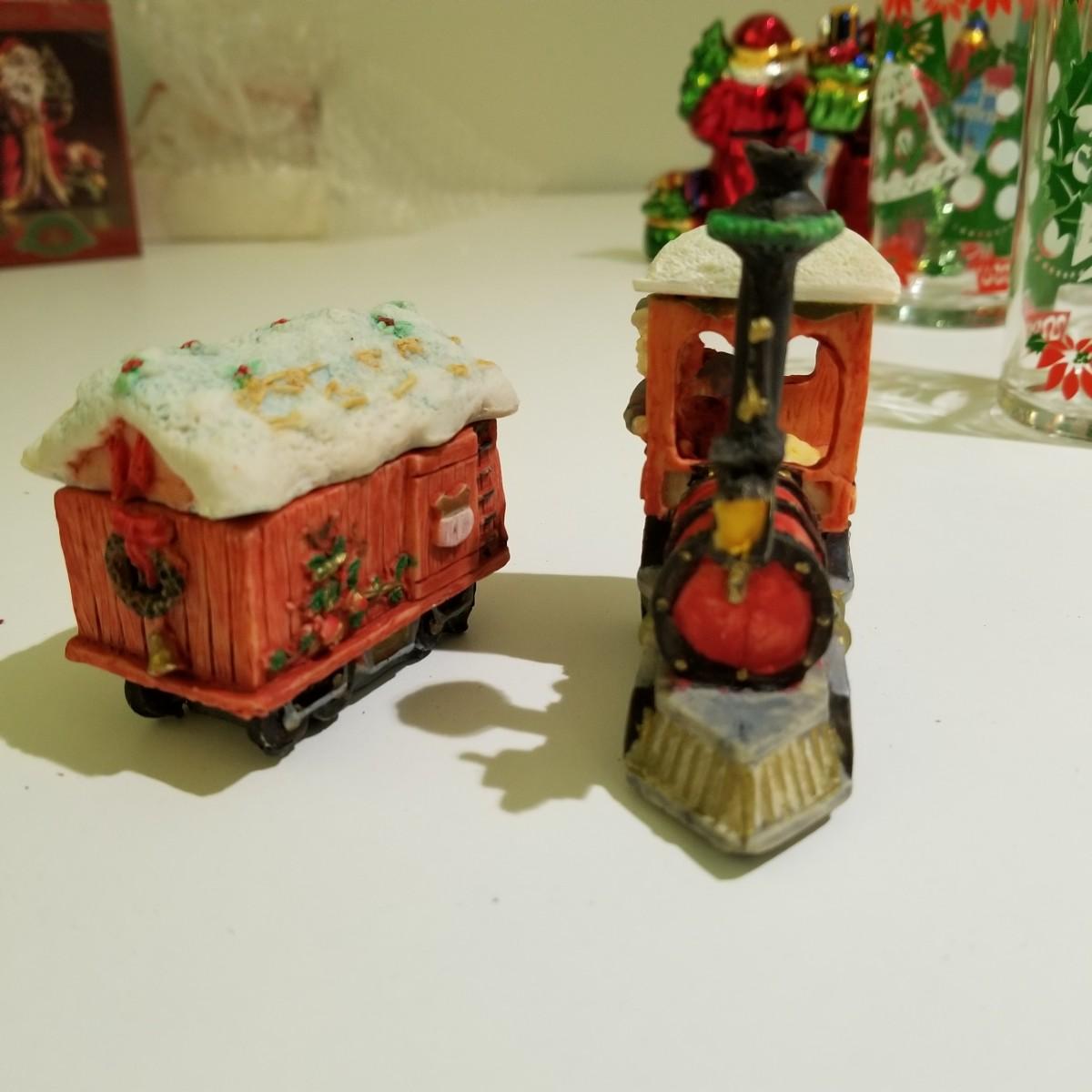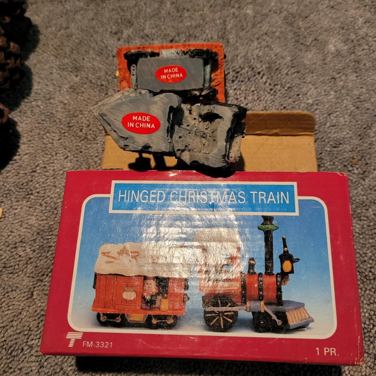 A collection of vintage holiday items. Glasses, figurines, ornaments of all types. Lighted angel tree topper, handmade felt pieces and treasures. Also includes three pinecone items, one tree, 10"x26", and two wreaths, the largest is16"d. See photos for detail.  Shipping available.