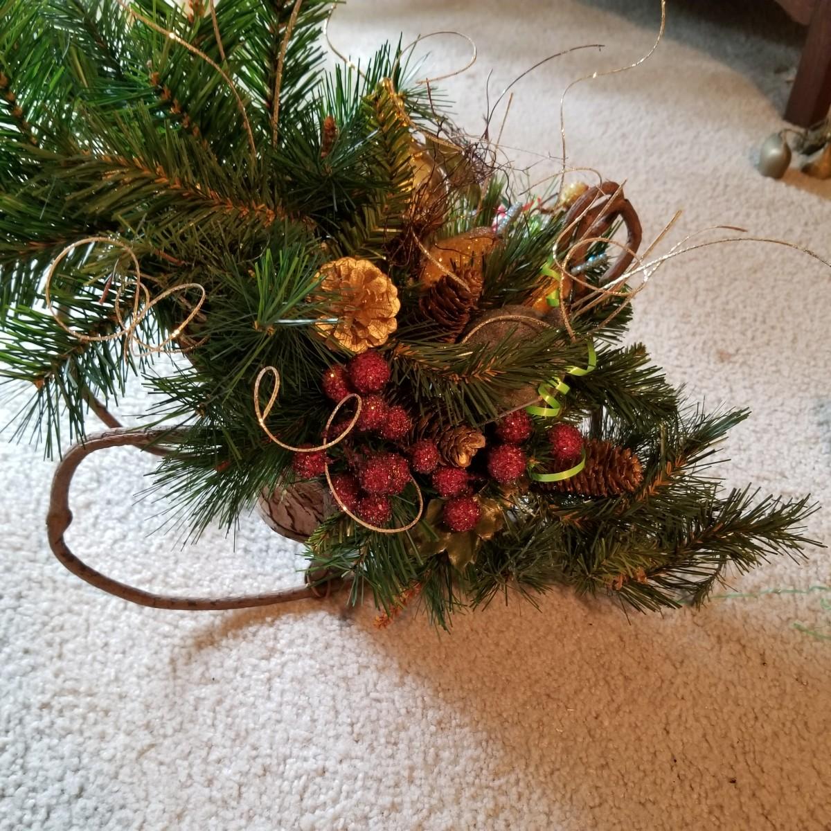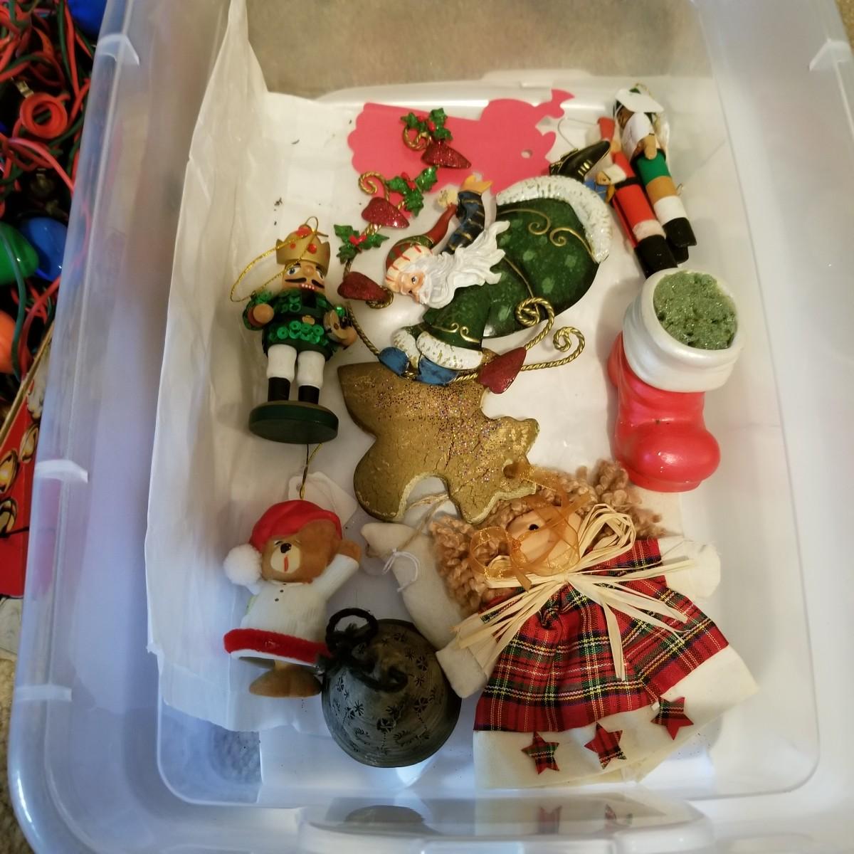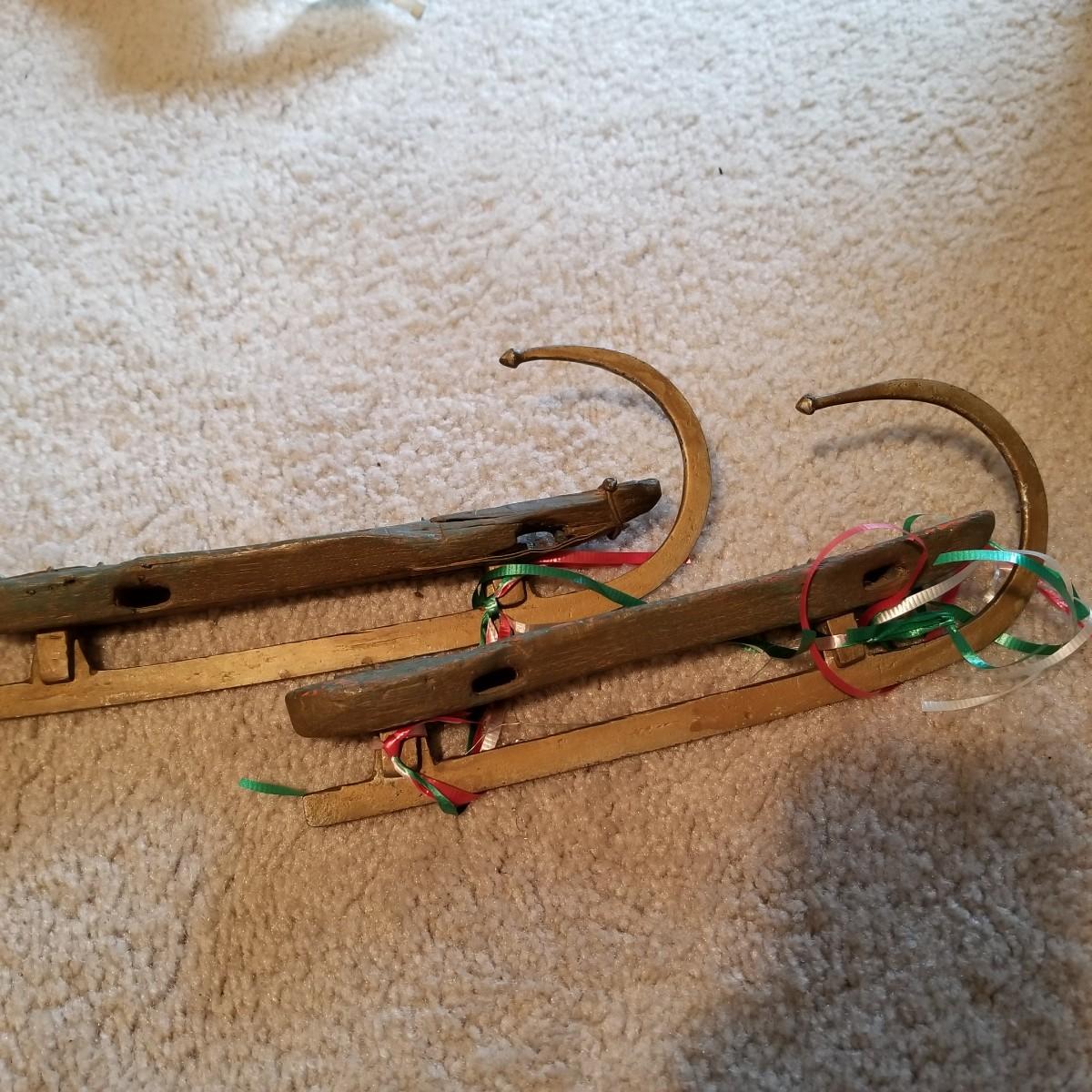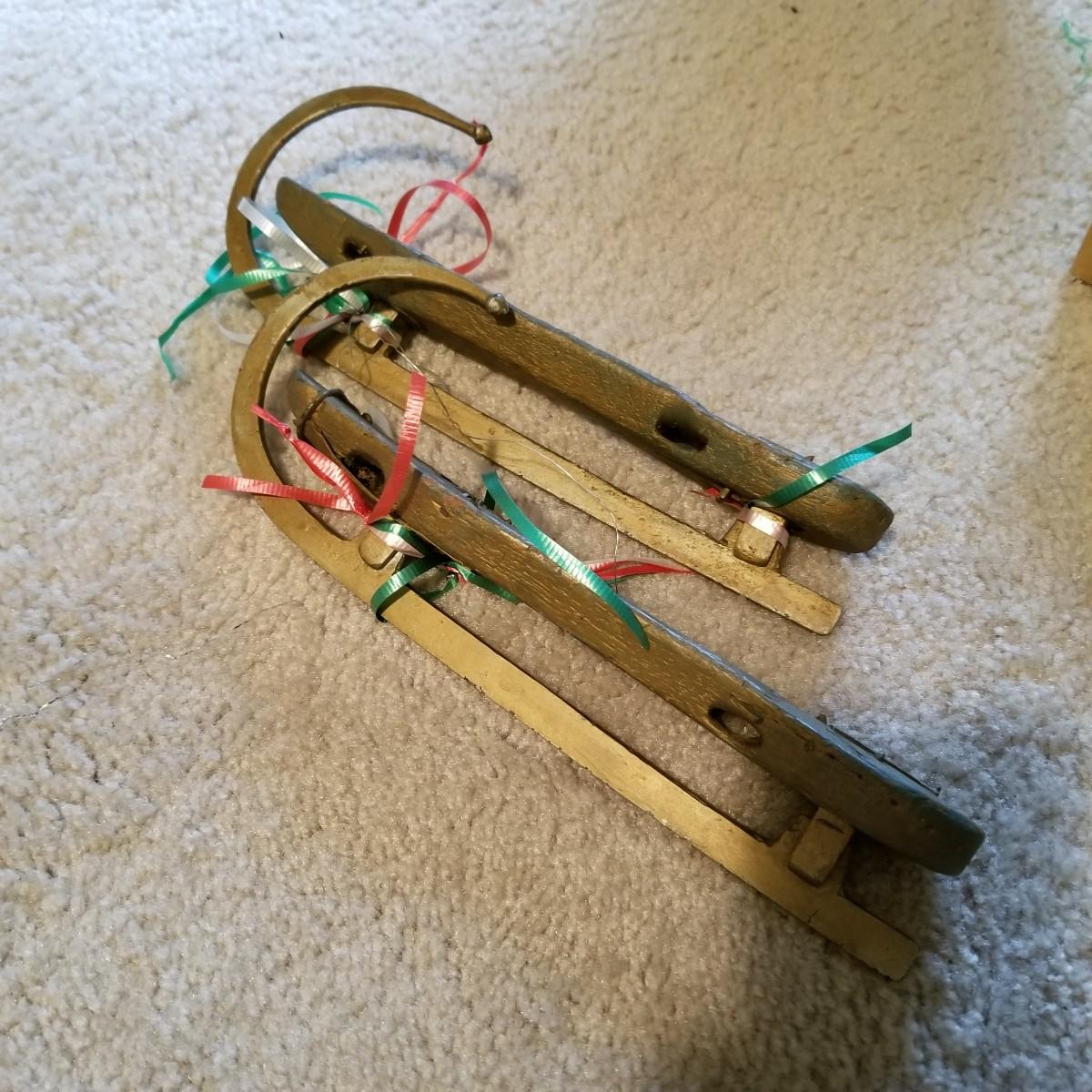 Santa figures, glass bulbs, Reed & Barton silverplate bells, ornaments and more. Two Royal Copenhagen plates, both 1971. A ceramic lighted church, a rustic wooden sleigh arrangement, and one pair of vintage wood and metal ice skates. See photos for detail. Most items in good condition. Shipping available.