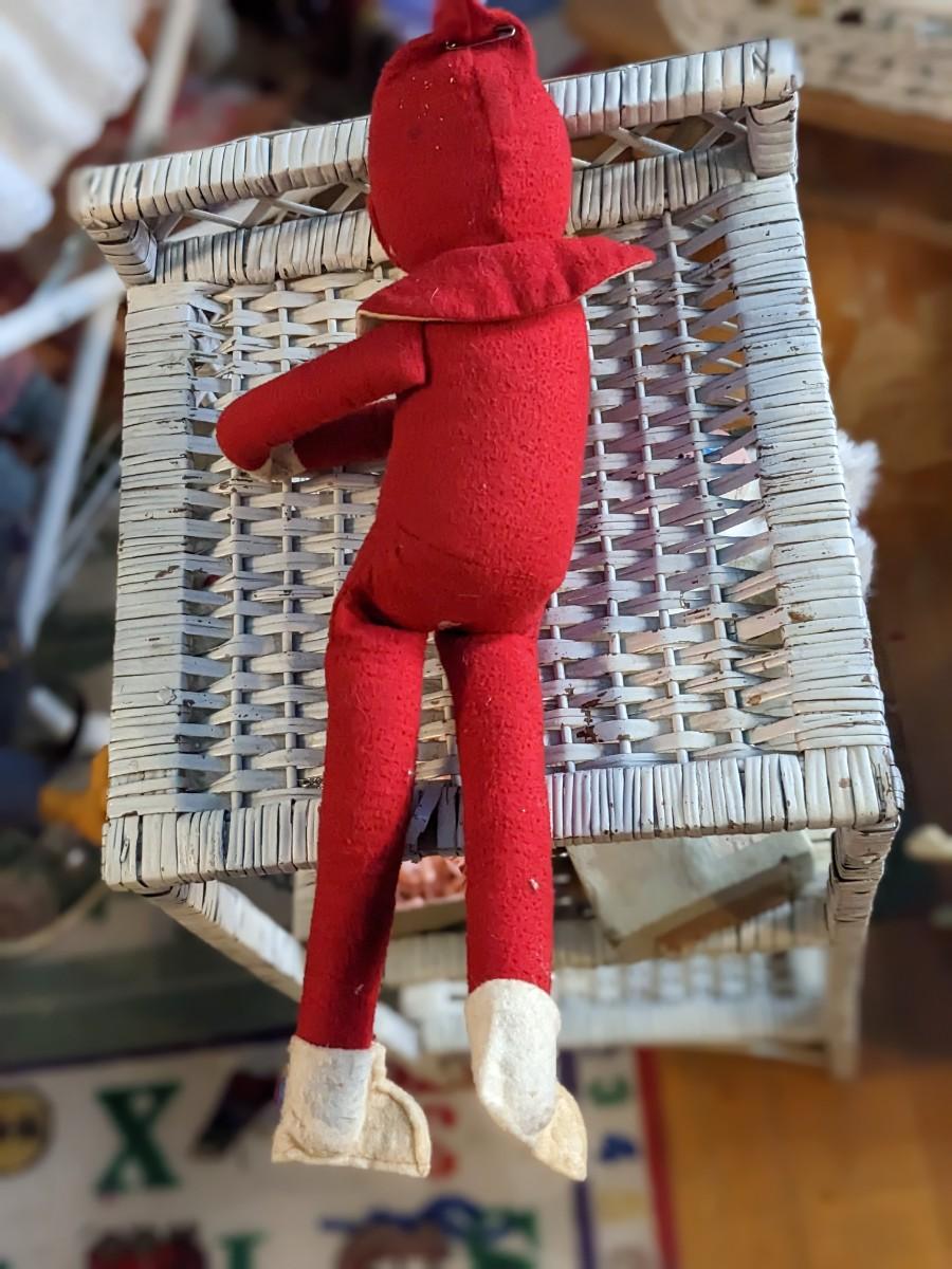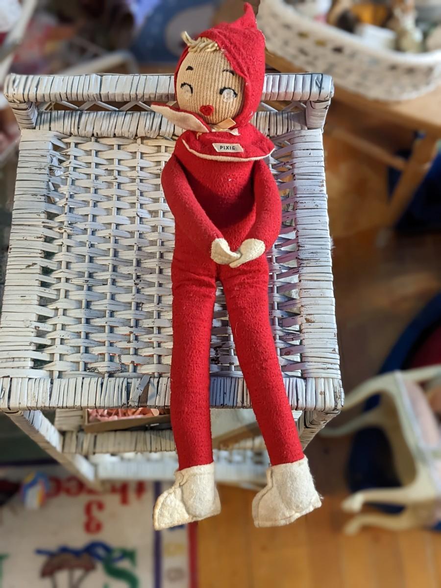 Vintage Christmas Bendable Pixie/Elves Nylon Face & Felt Body 18" Yarn Hair