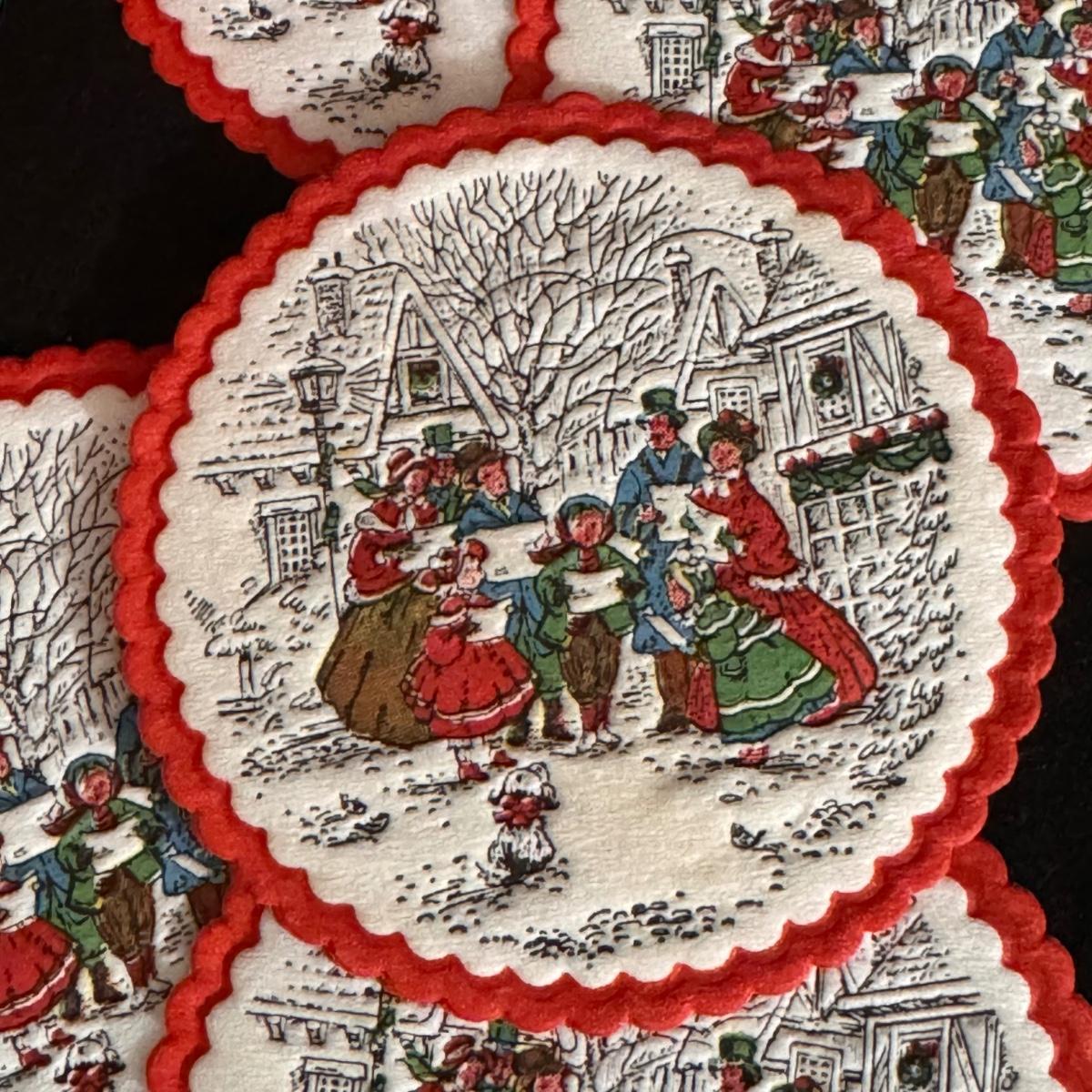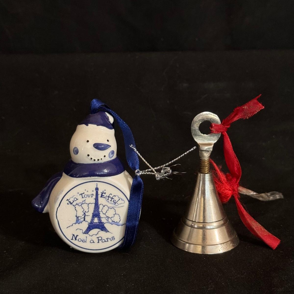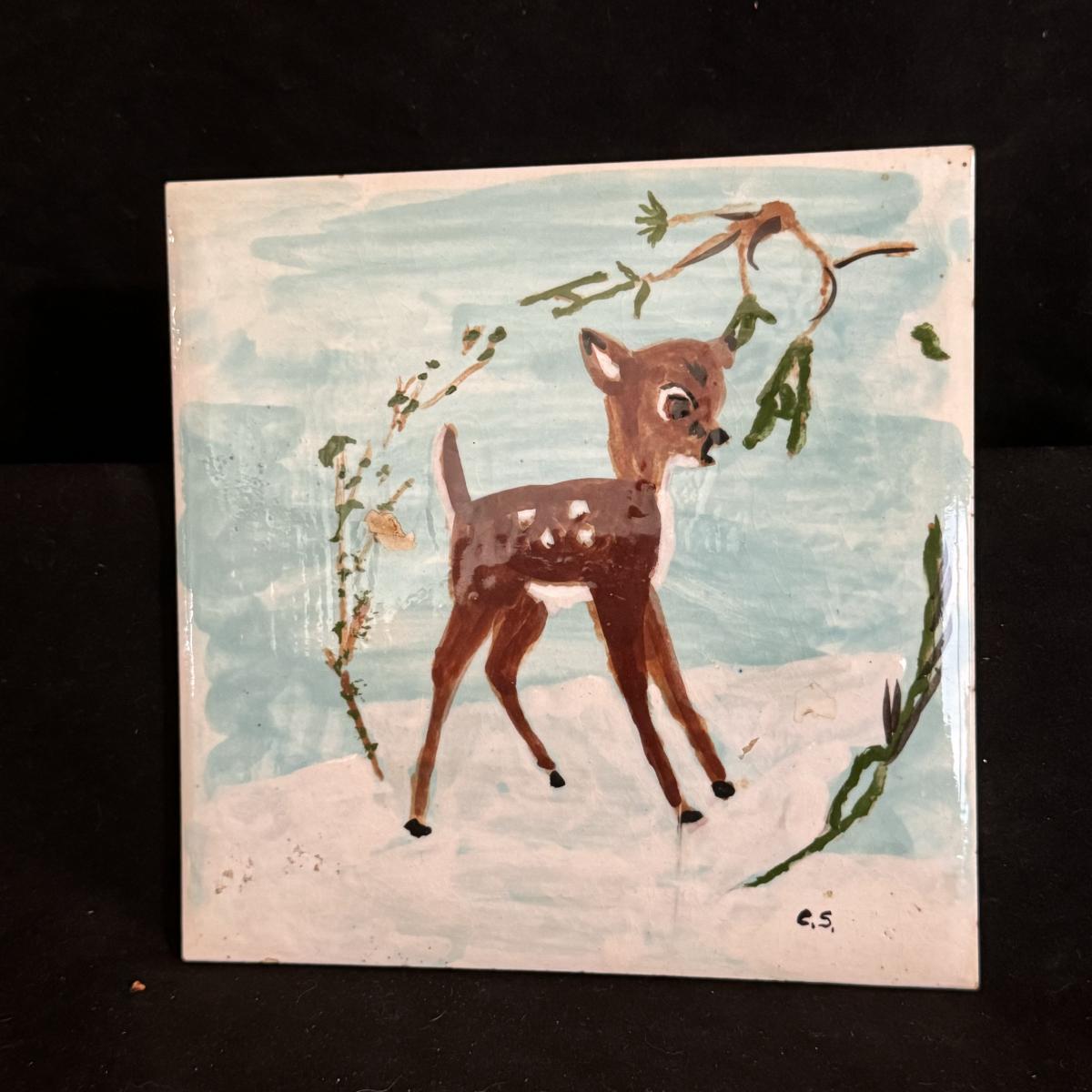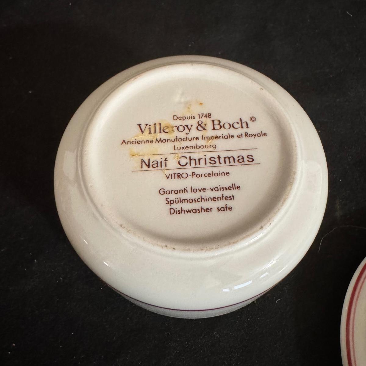 This lot includes three vintage books (The Signs in the Christmas Fire by William Allen Knight, The First Christmas Tree by Henry Van Dyke, and A Christmas Carol by Charles Dickens), one silver metal bell with red ribbon, one porcelain bowl by Villeroy & Boch, a set of 50 Christmas coasters in a circular tin, a tiny box of Christmas matches, a square tile with a reindeer painted, a snowman ornament, a small three kings display, and several vintage Christmas cards. The coaster tin measures 3.95” x 3”H. Shipping available.