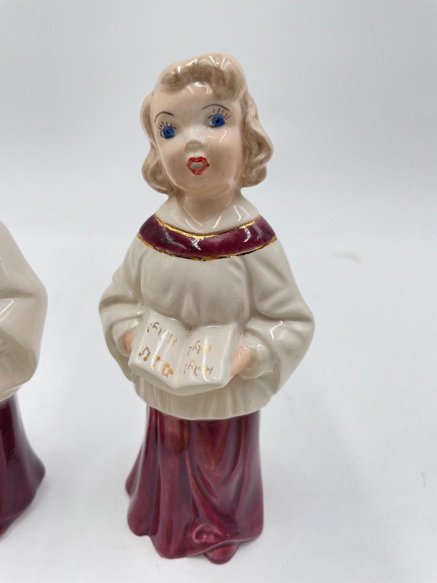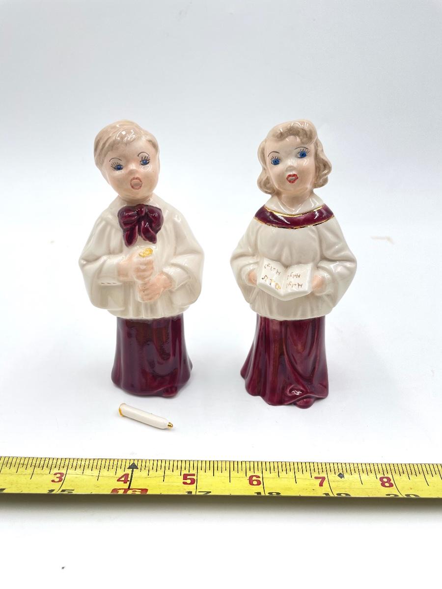 VINTAGE CHRISTMAS CHOIR CAROLER KIDS CERAMIC FIGURINES SET OF 2