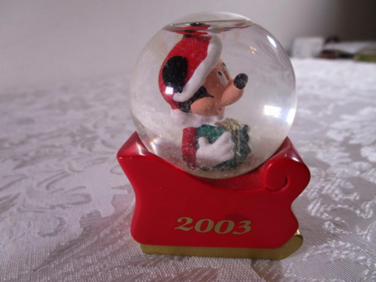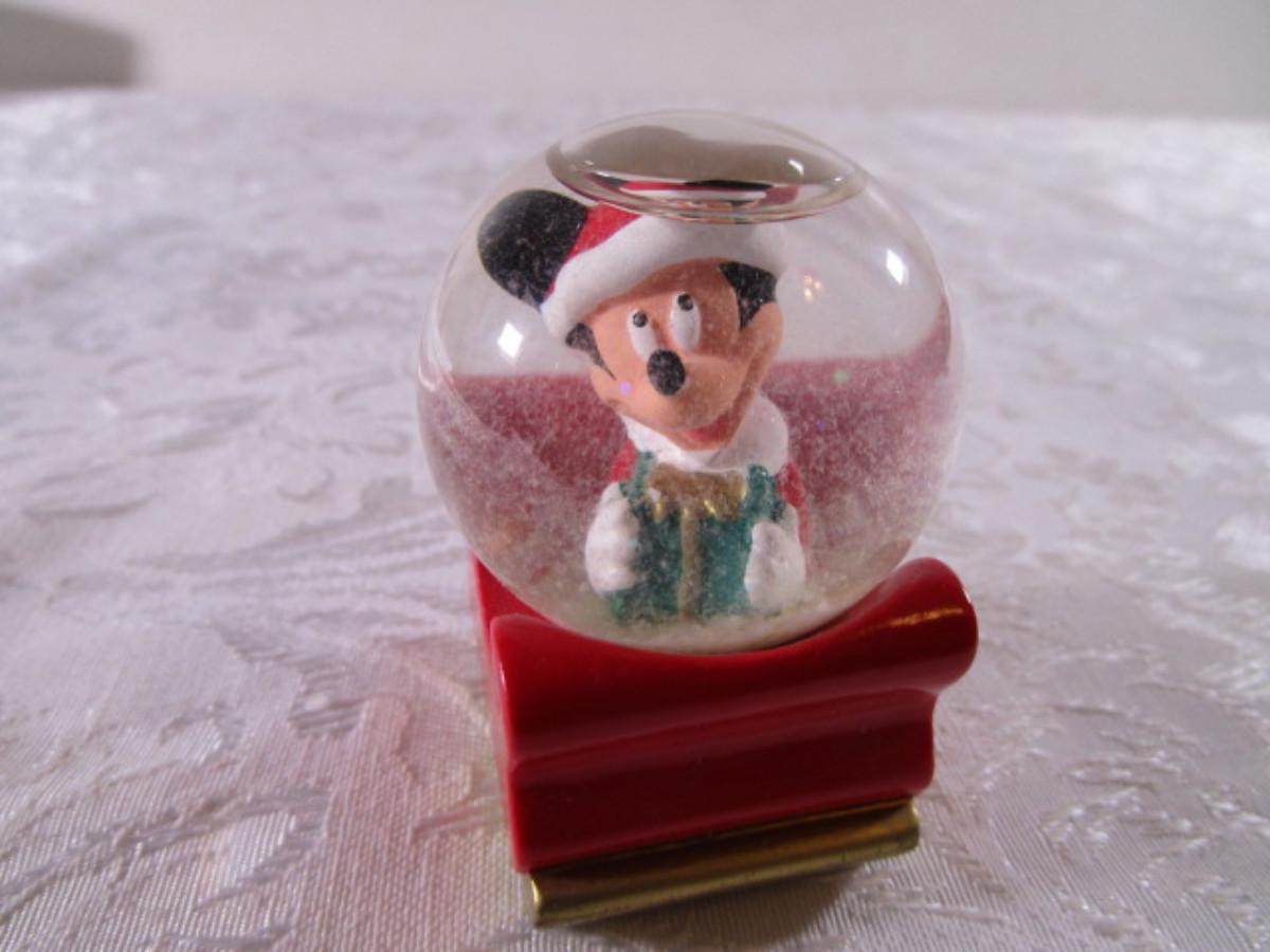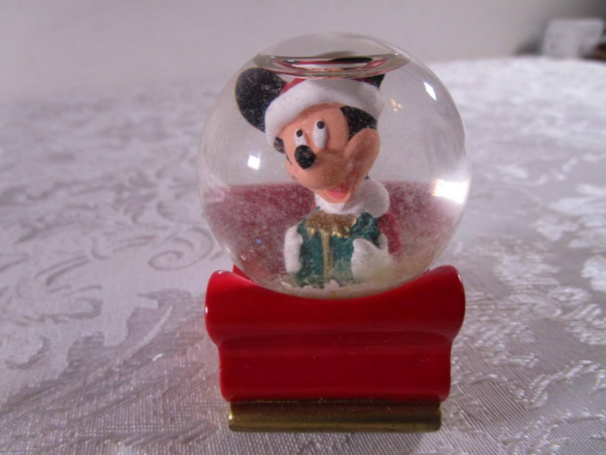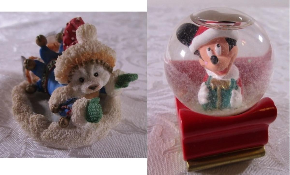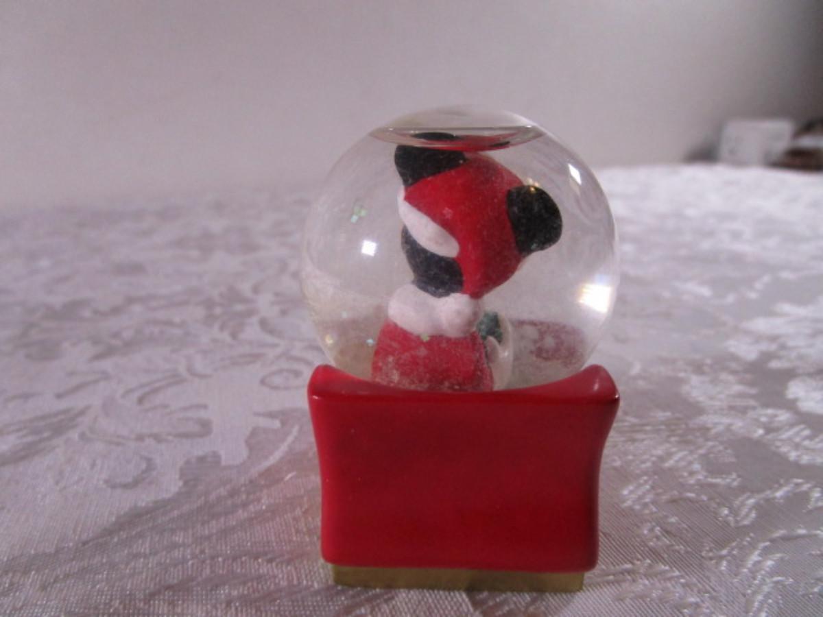 Polar Kins - "A Hug'll Help" from 1996 - 2-1/4"wide x 1-3/4" tall, Mickey Mouse snow globe from 2003 especially for J. C. Penney's 2-1/2" tall x 1-3/4 long x 1-1/2" wide