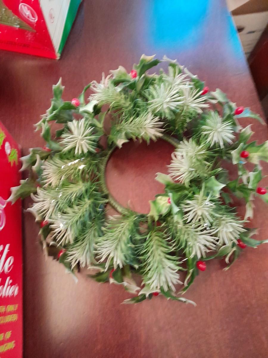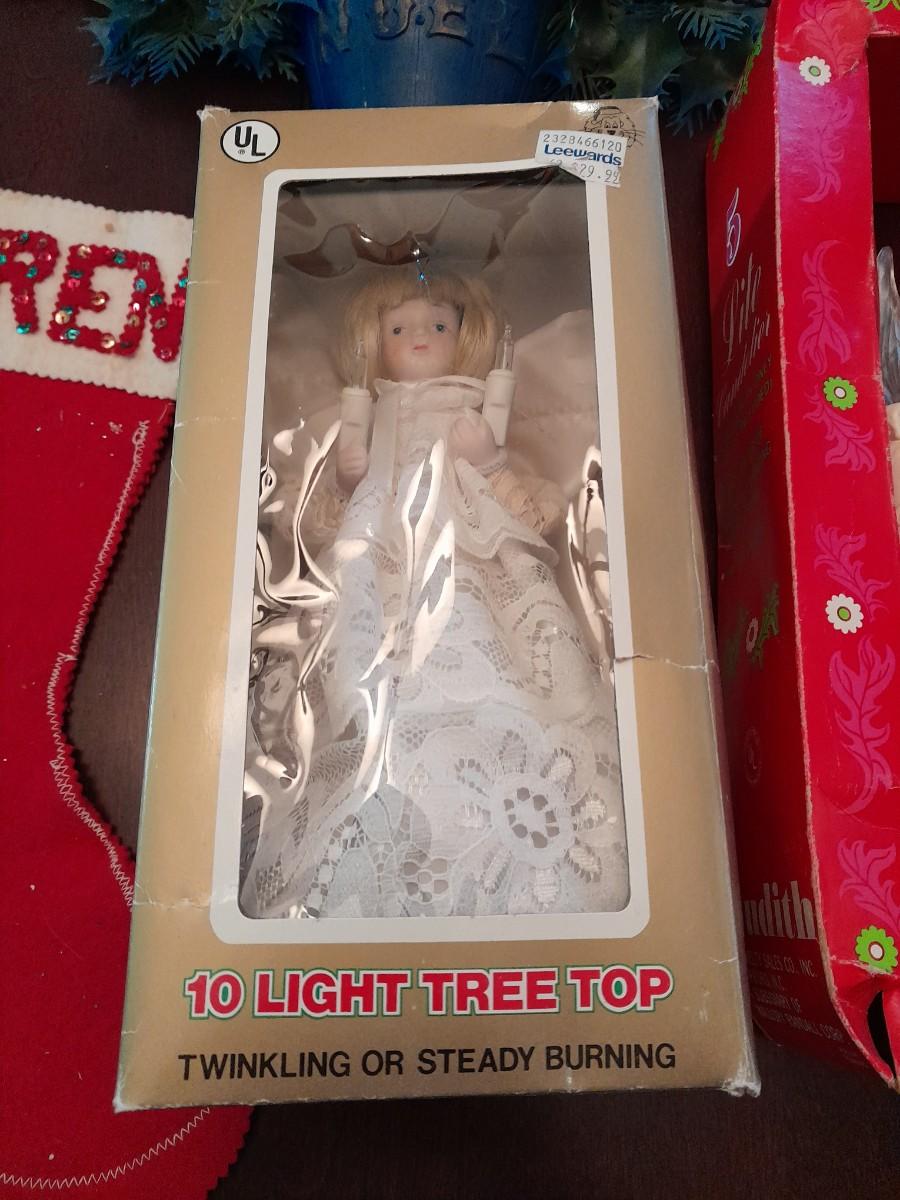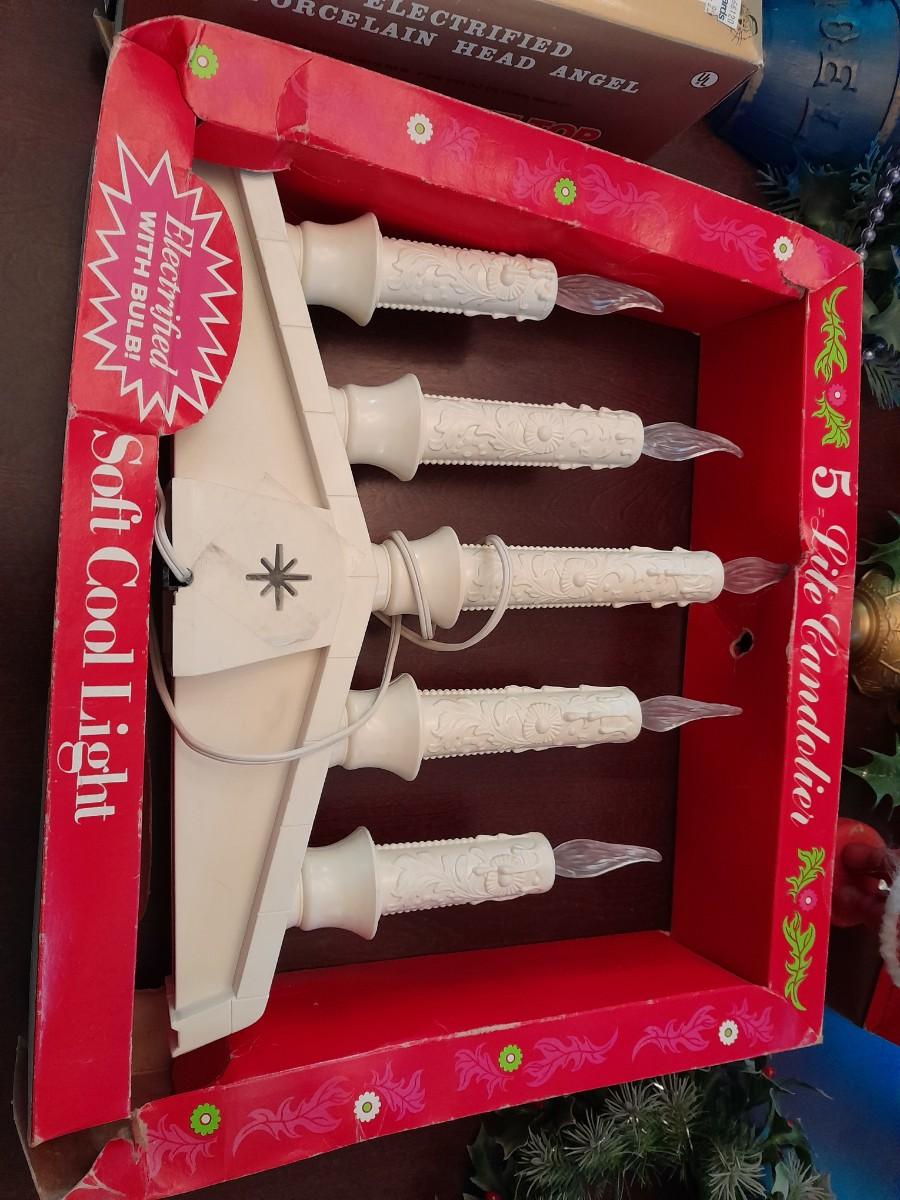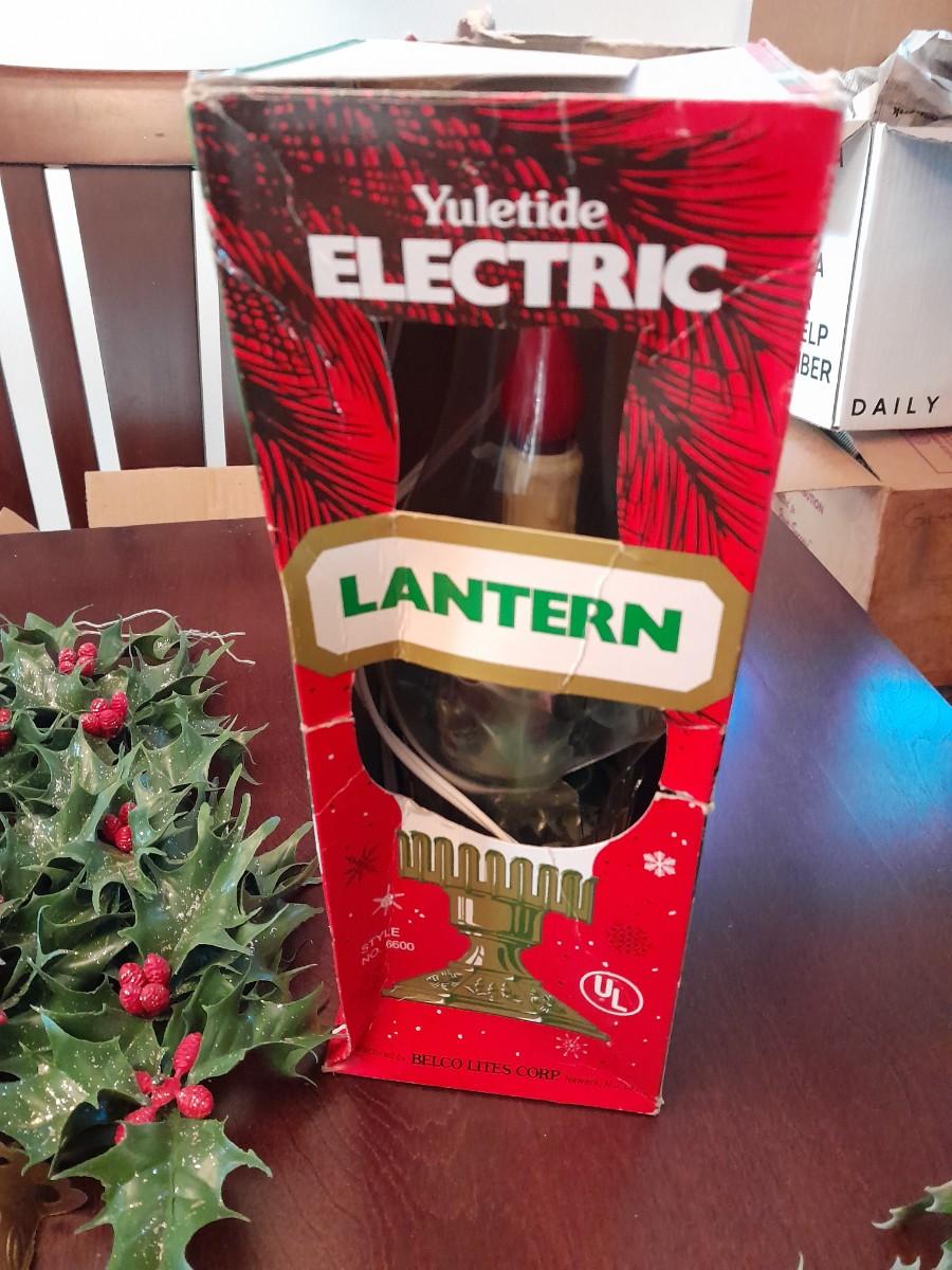 VINTAGE CHRISTMAS DECORATIONS, CANDLES, ELECTRIC LANTERN, SANTA FIGURE, FAUX WALLTREES AND MORE