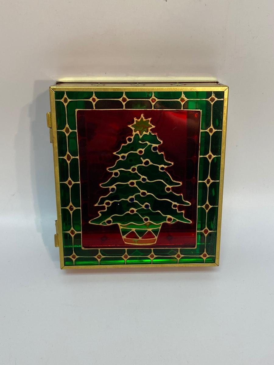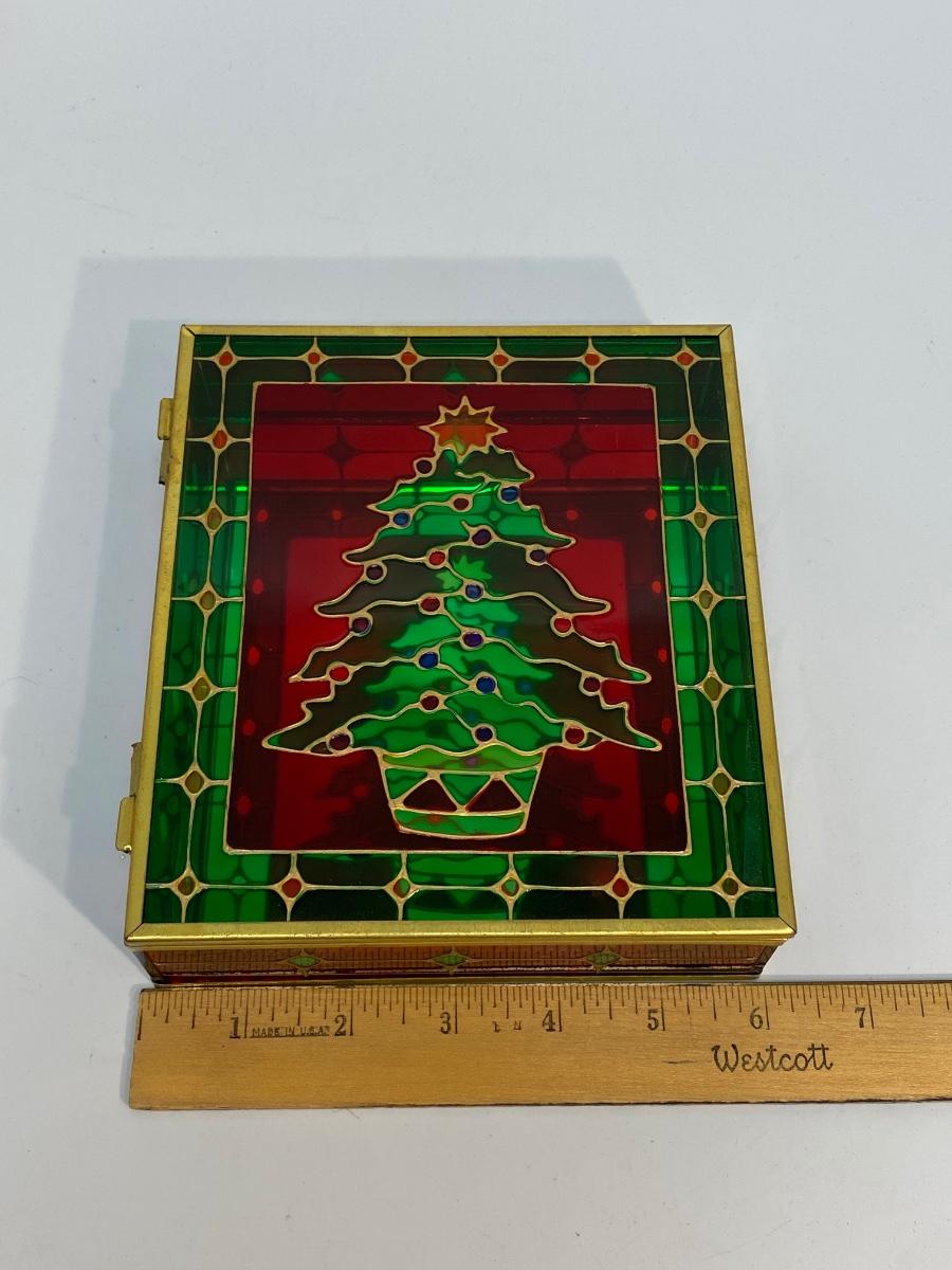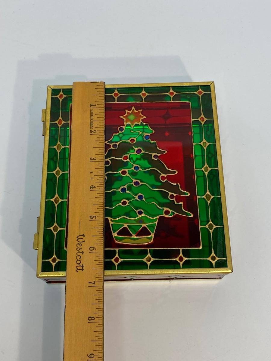Vintage Christmas Holiday Stained Glass Jewelry Trinket Box