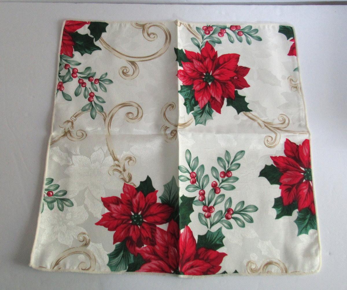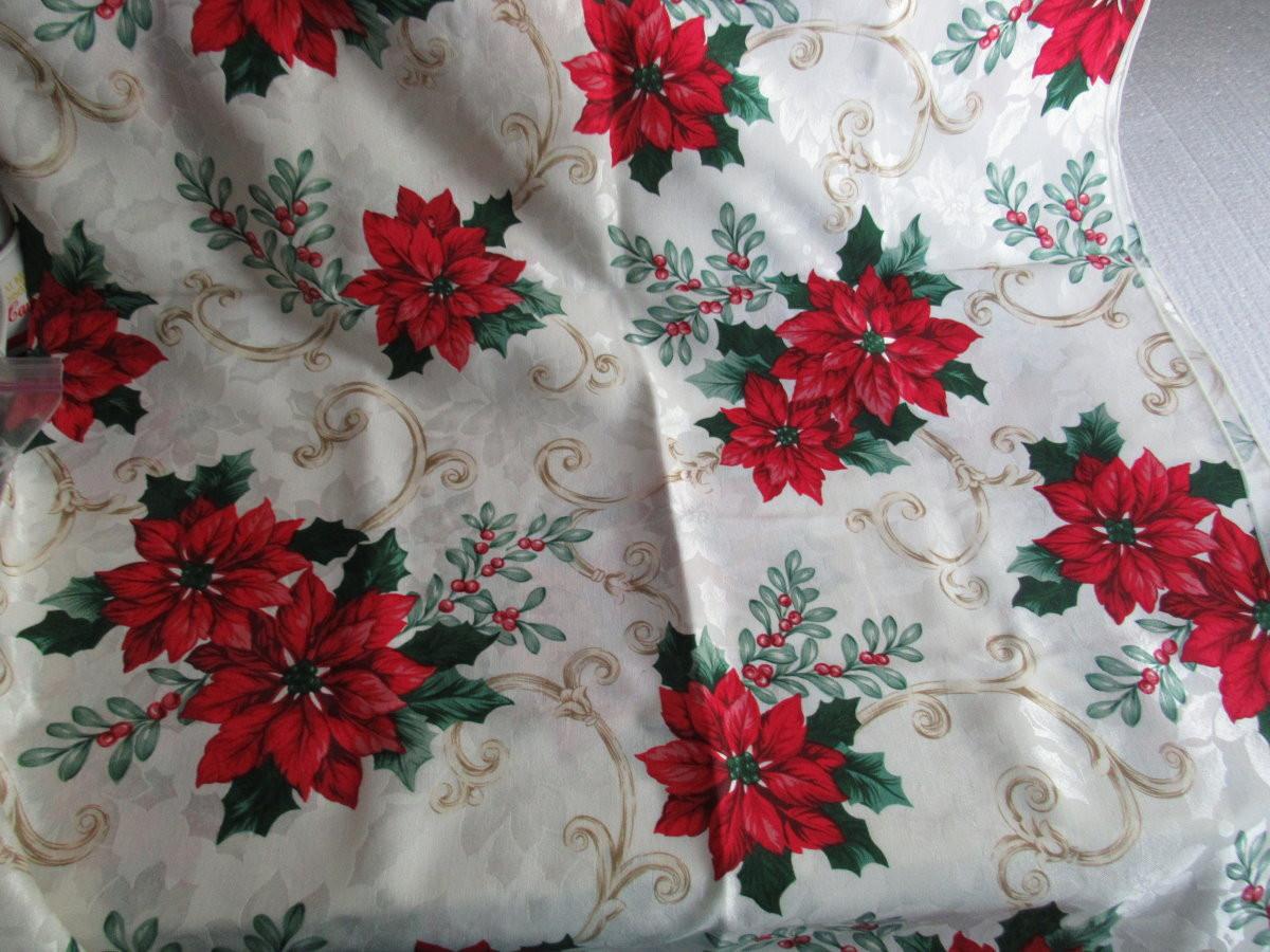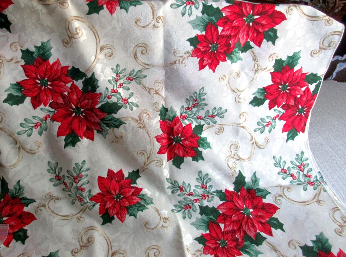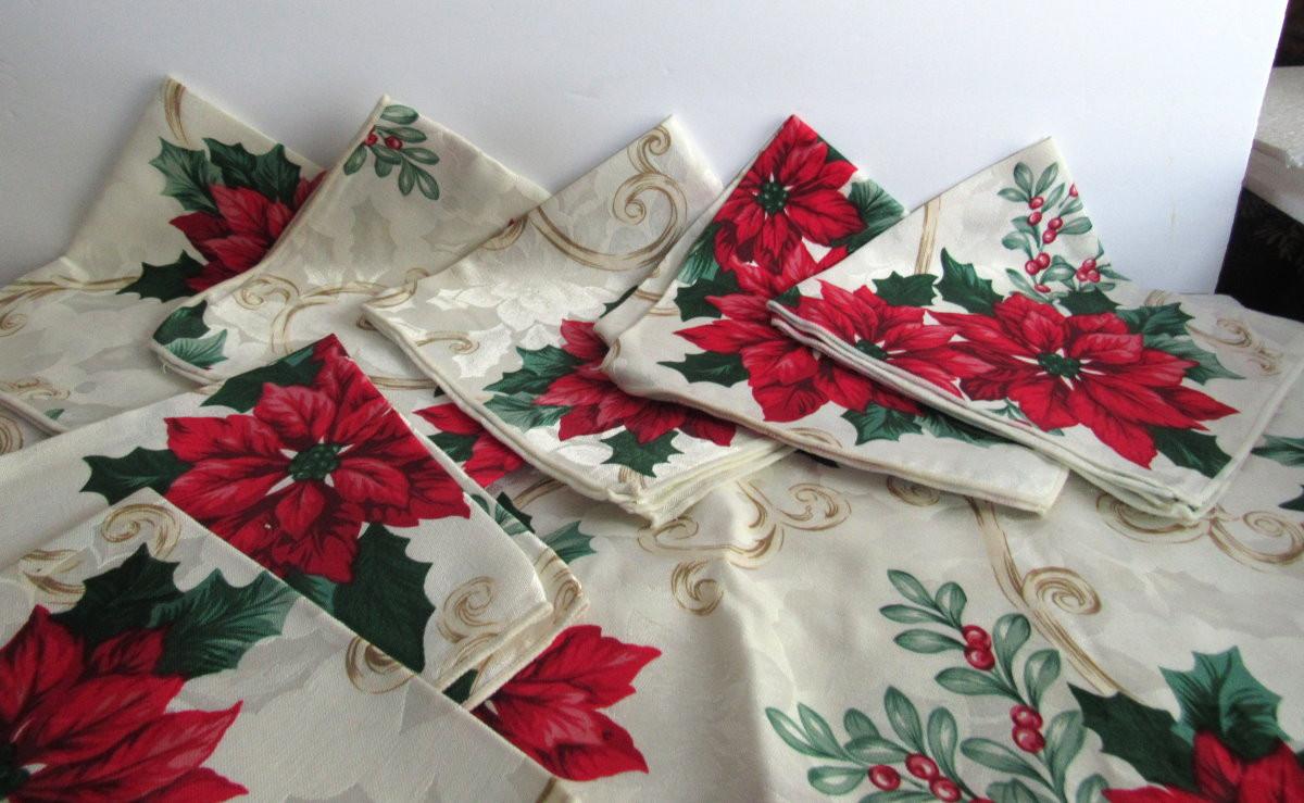 Vintage Christmas Large Fabric Tablecloth and 6 Napkins Set