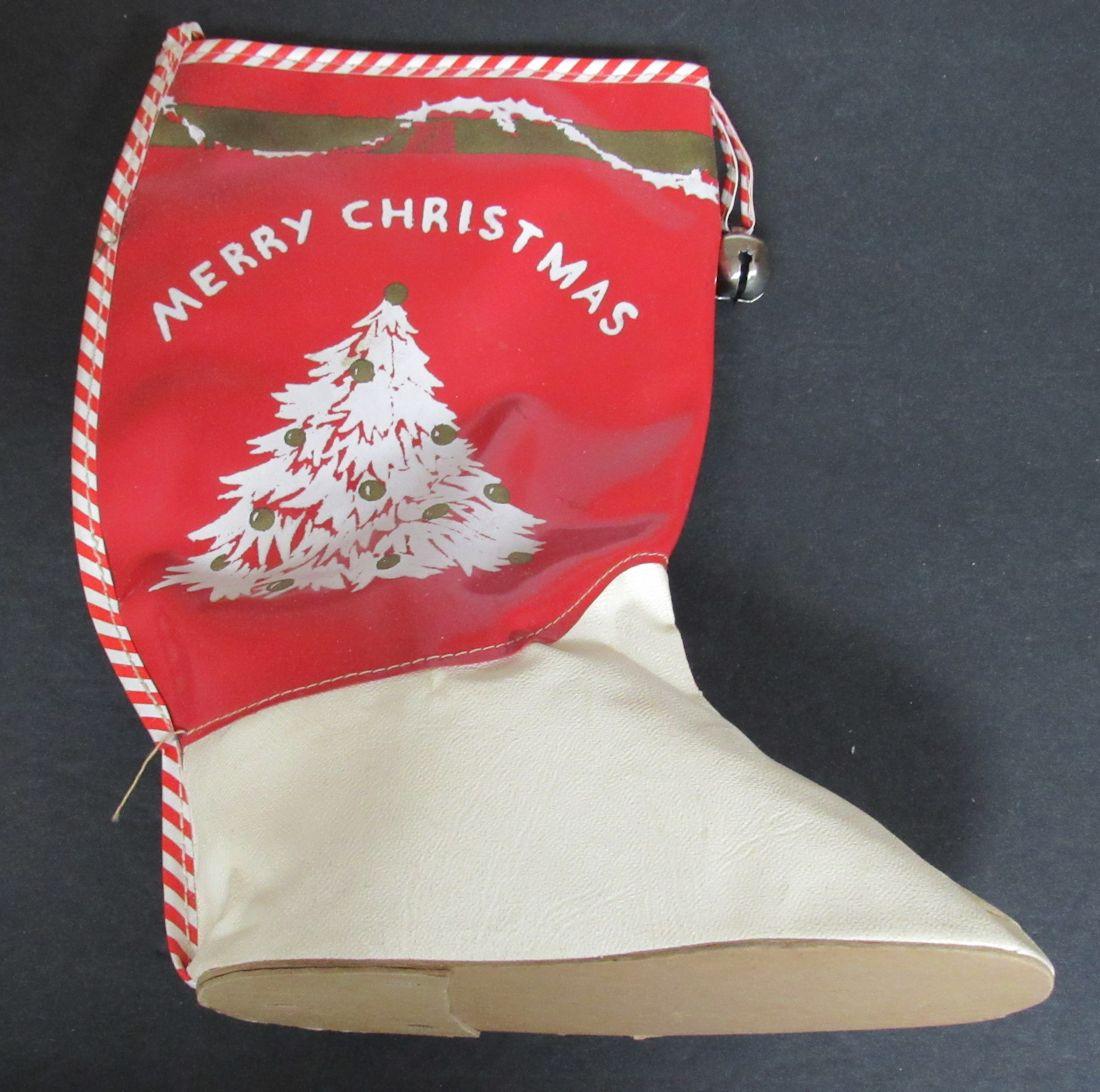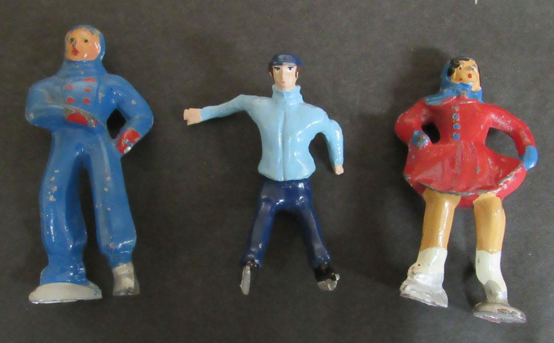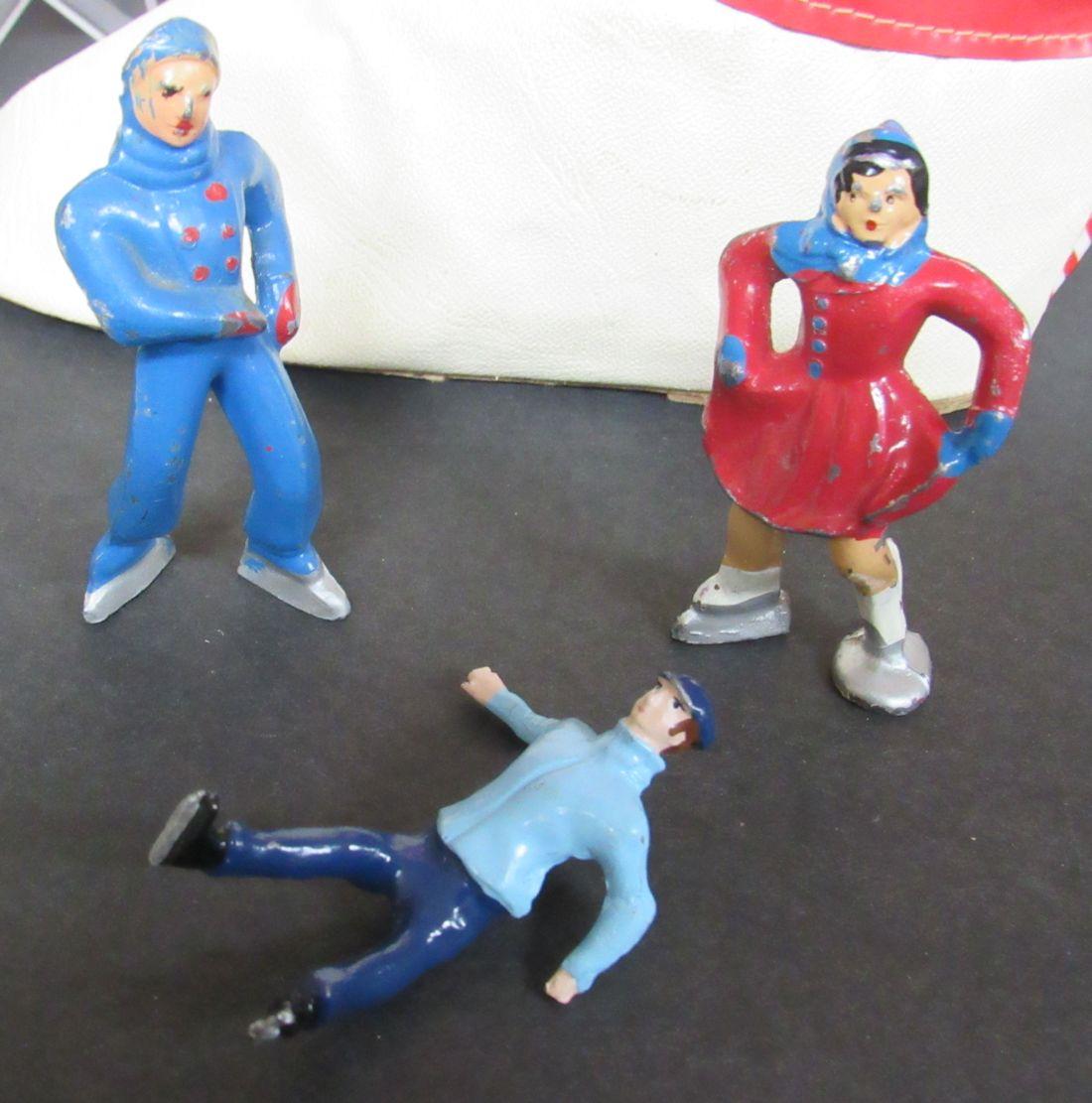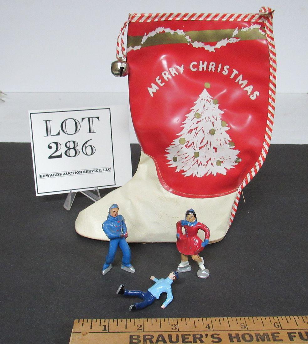 Vintage Christmas Lead Skating Figures and Vinyl Christmas Boot