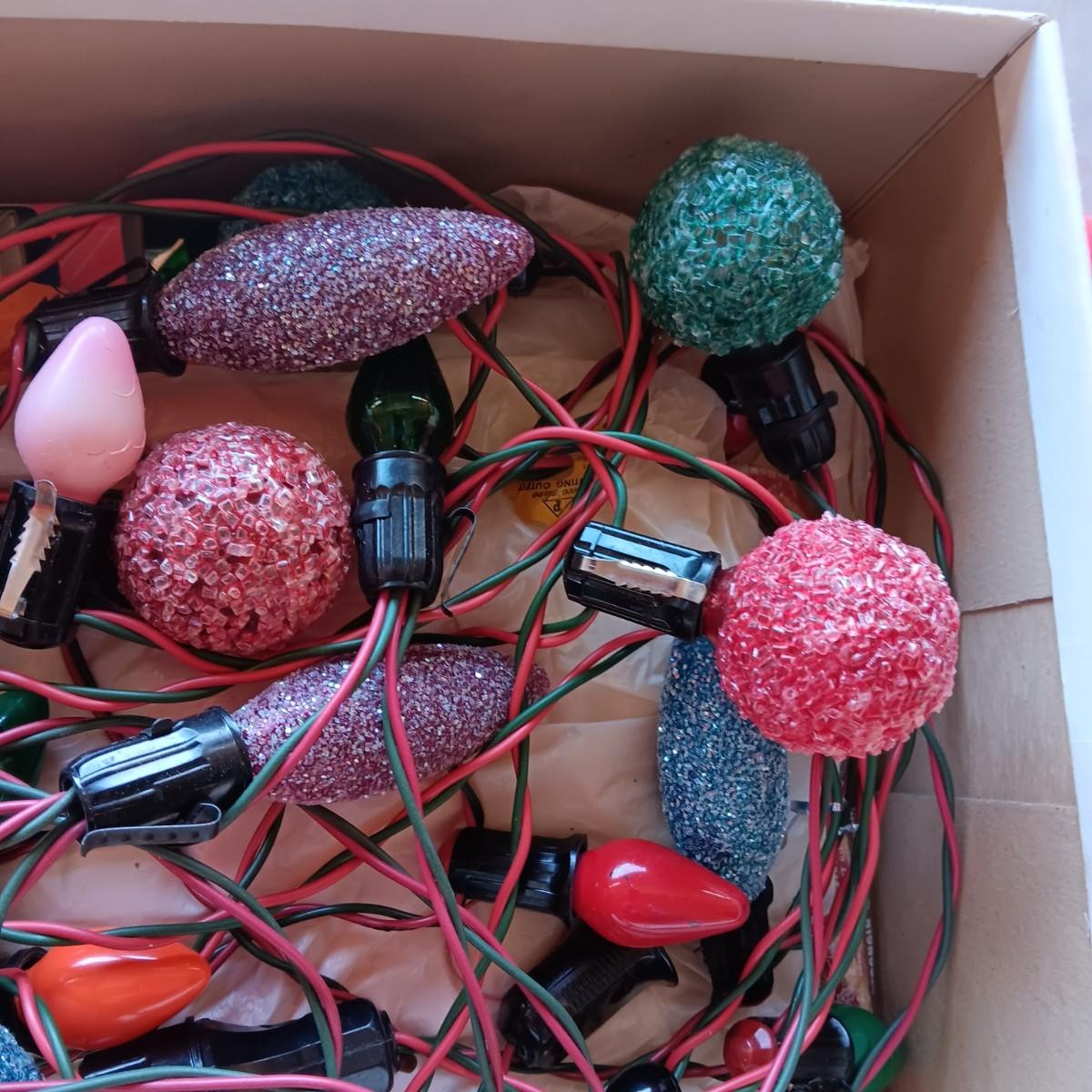 VINTAGE CHRISTMAS LIGHTS AND HALLMARK NATIVITY SCENE