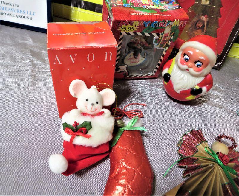 Vintage AVON MA Santa Christmas Ornament & Decorations LOT Roly Poly Santa